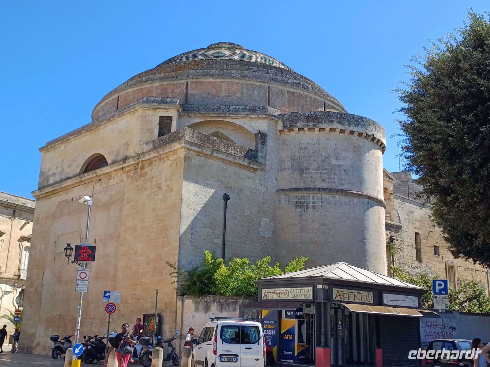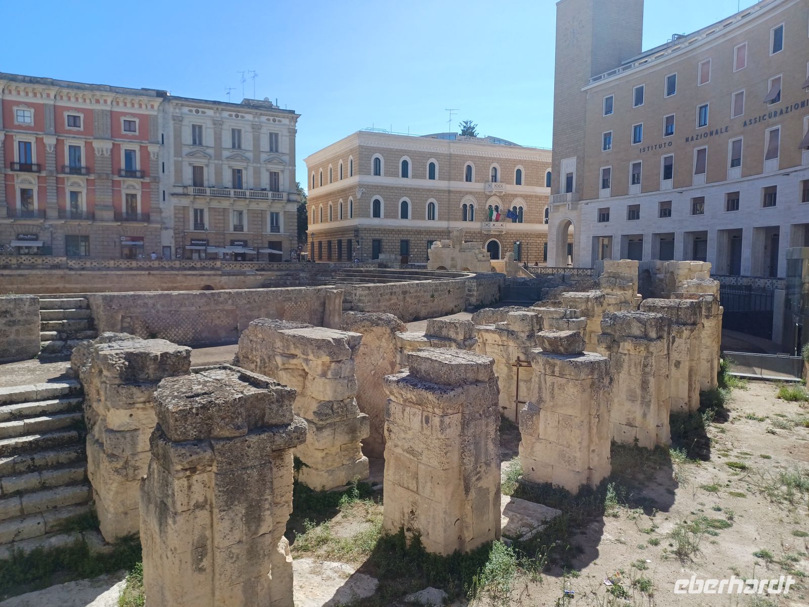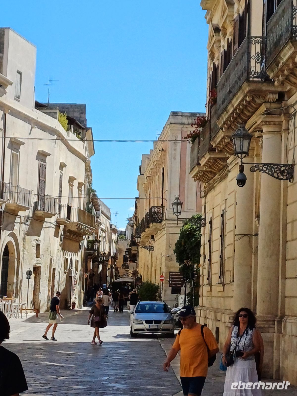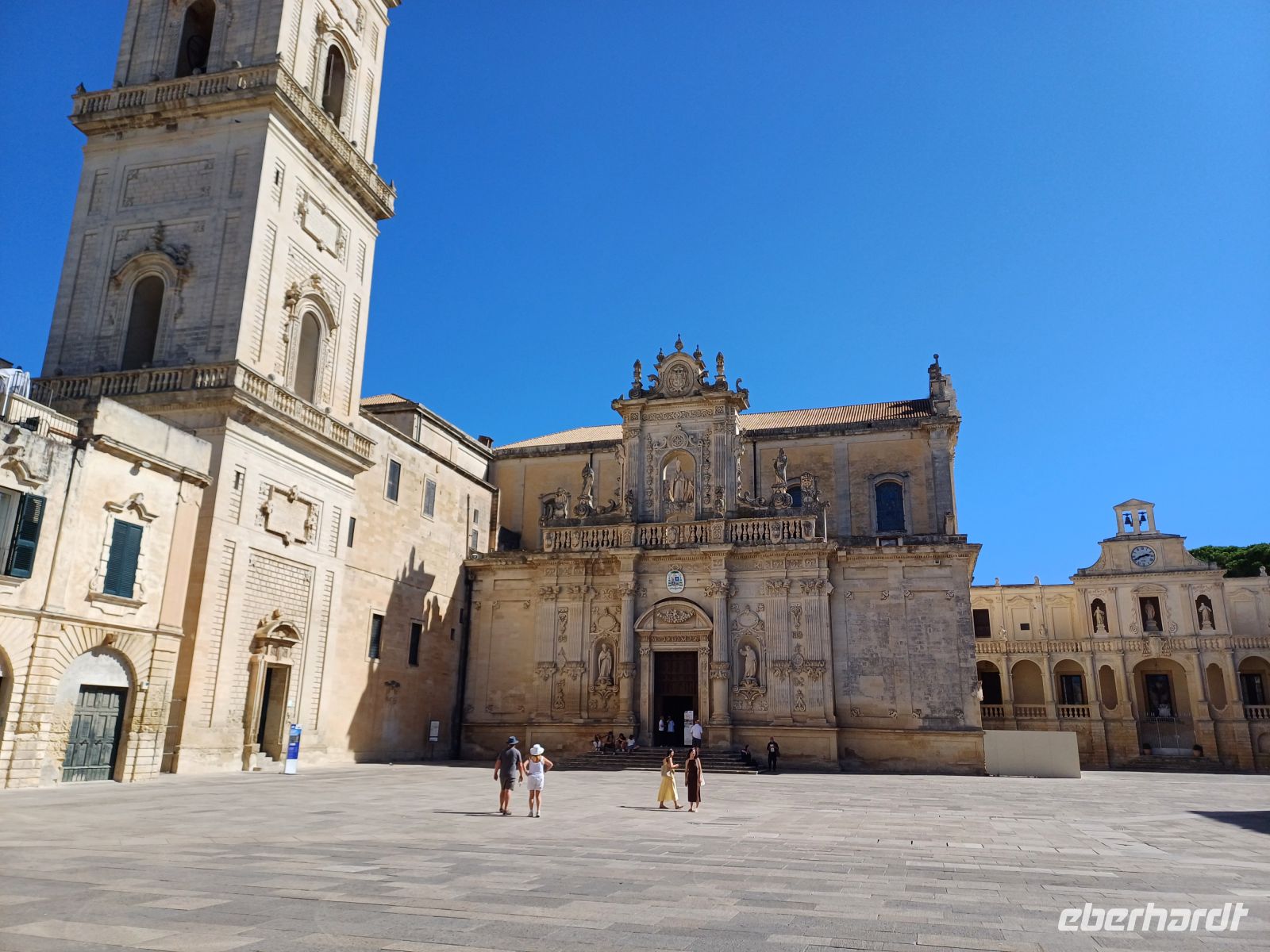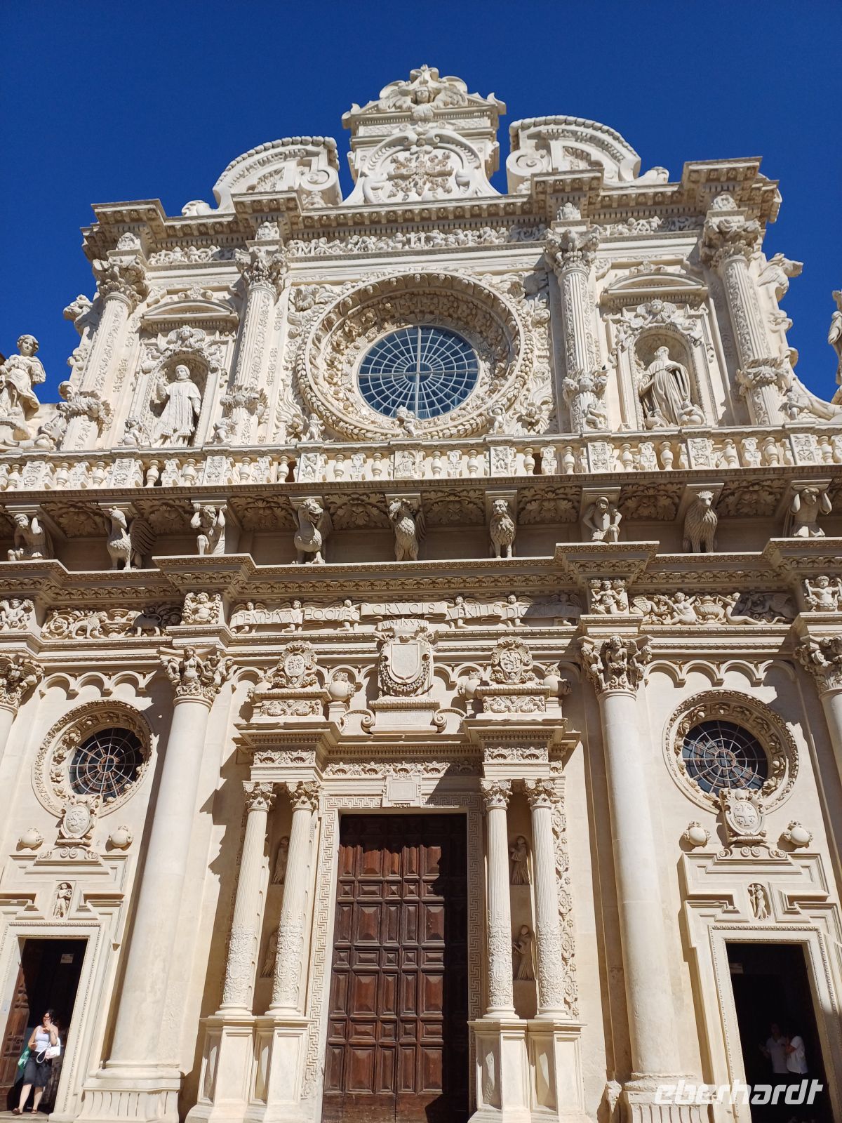 Weiter geht es für unsere Gruppe in den Süden von Apulien, nach Lecce. Lecce – das Florenz des Südens ist ein barockes Highlight auf der salentinischen Halbinsel. Die Sonnenstrahlen ziehen über die ockerfarbenen Häuser und die architektonischen Schönheiten der Stadt kommen zum Vorschein. Wir bummeln durch die Gassen, bestaunen die Basilika „Santa Croce“ mit dem barocken Ambiente, den Piazza del Duomo und vieles anderes mehr. Etwas individuelle Zeit bleibt zum Kaffee Leccese trinken, etwas ungewöhnlich, wird dieser doch kalt mit Eiswürfeln getrunken.