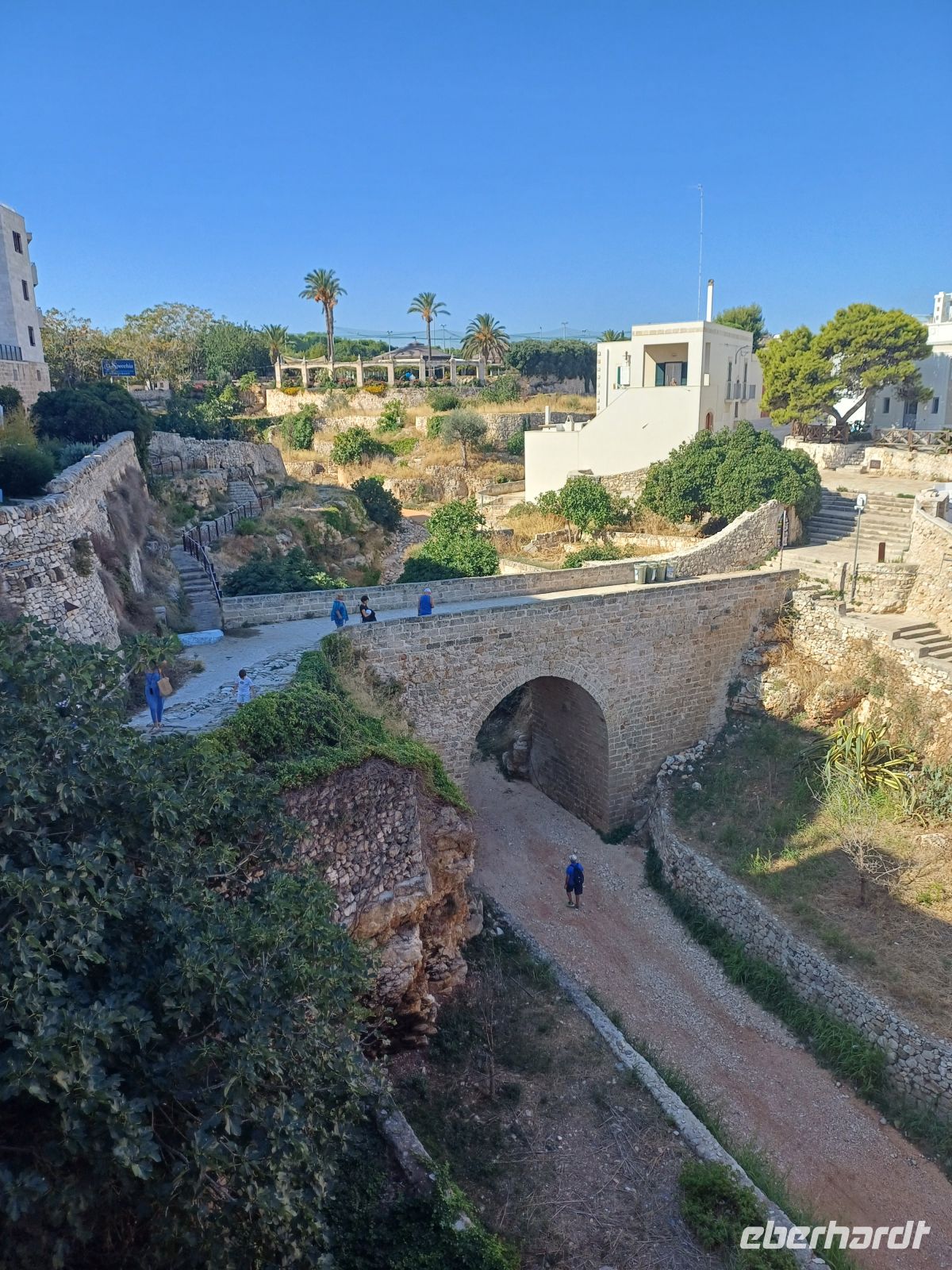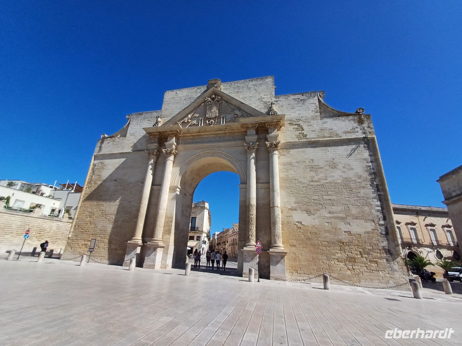 Der erste Stopp des Tages geht an den östlichen Punkt von Italien, in die Hafenstadt Otranto. Die Stadt liegt an der Adriaküste und beeindruckt mit schroffen Klippen und einen atemberaubenden Blick auf das Meer. Die mit einer mächtigen Stadtmauer umschlossenen Stadt lädt uns zum flanieren ein. Diese weiße Stadt zieht alle Gäste in ihren Bann.