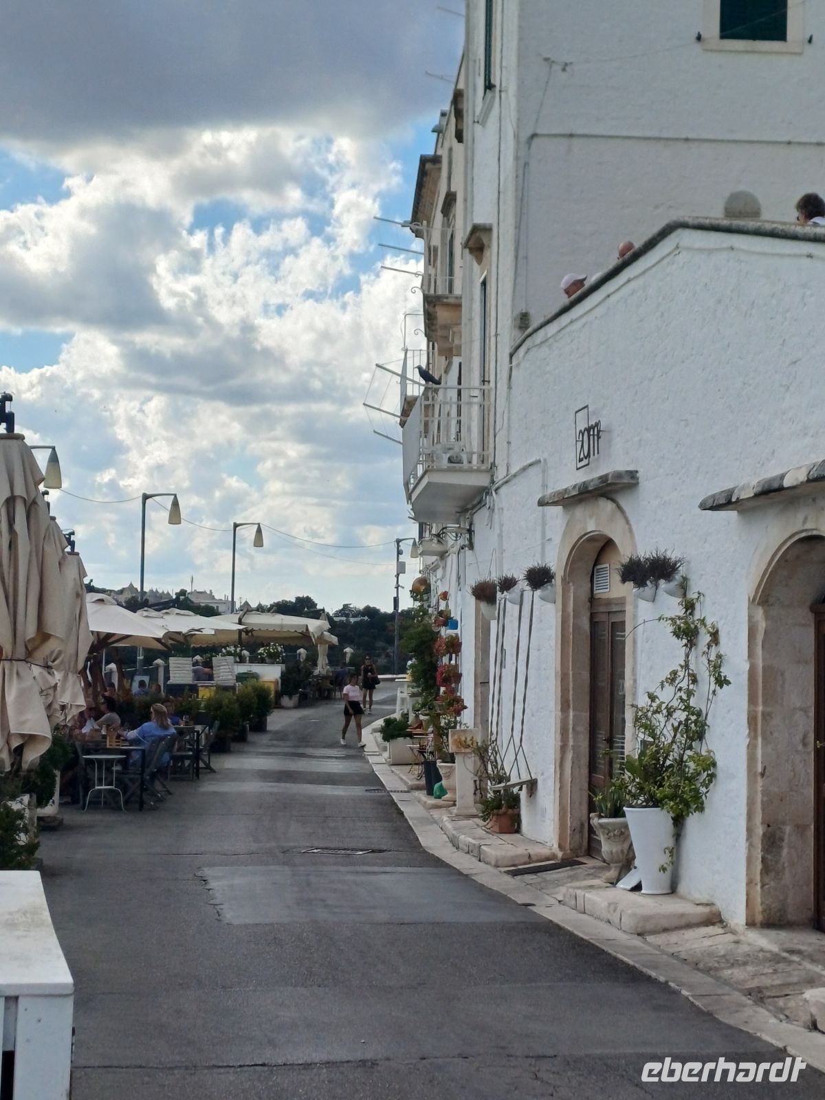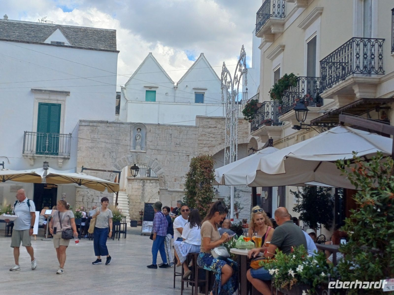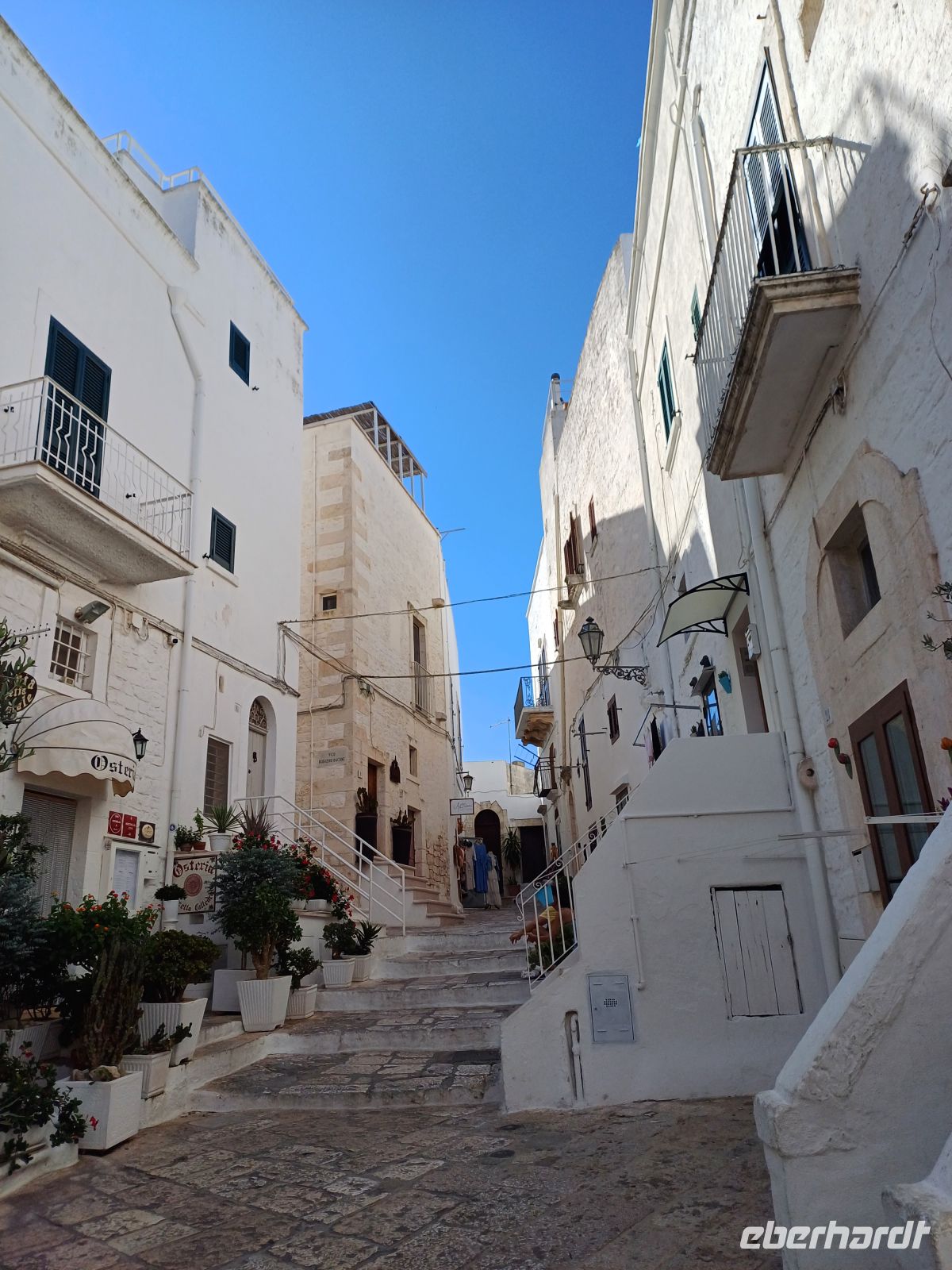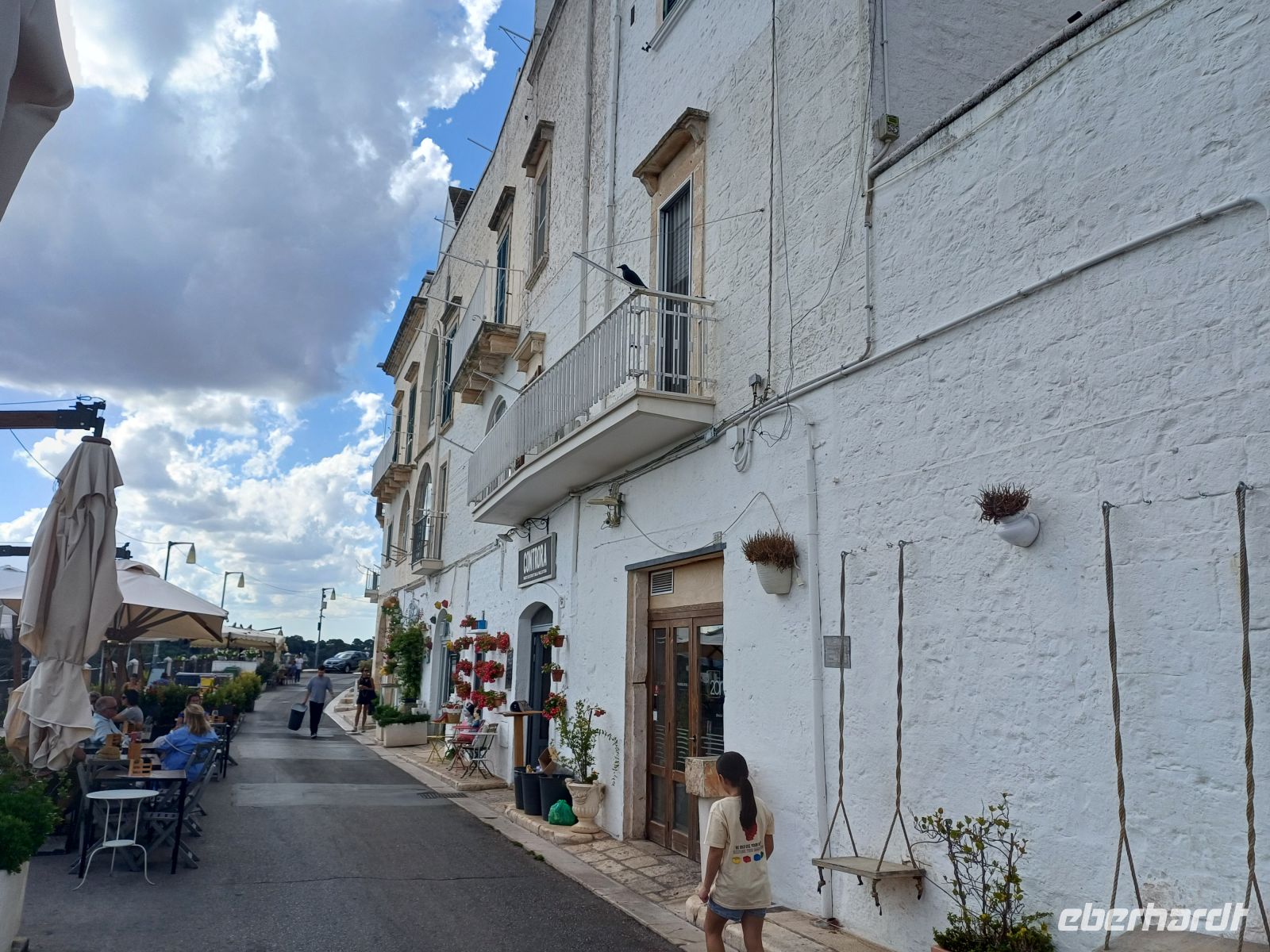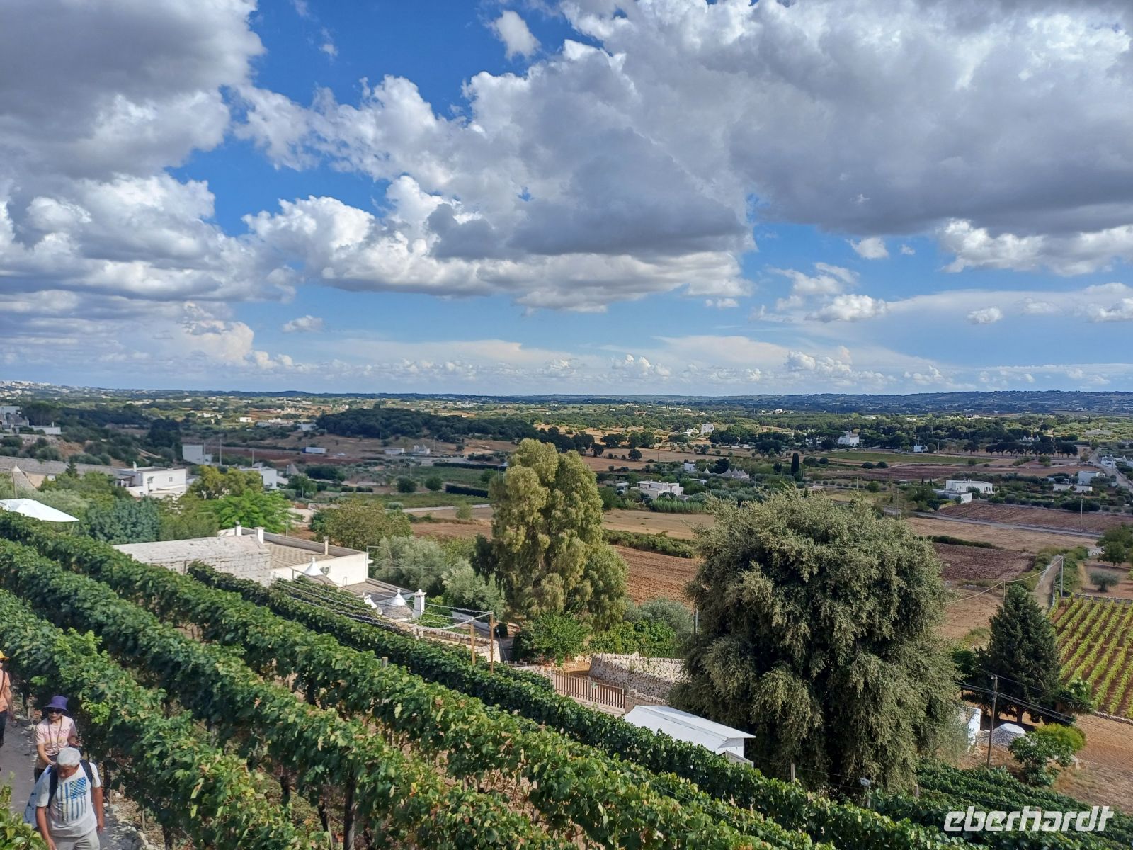 Gut gestärkt und vom leckeren Wein leicht benebelt geht es in das Städtchen Locorotondo. Der Aufstieg auf den Hügel kostet einige Mühe, aber dafür werden wir mit großartigen Ausblicken belohnt.
