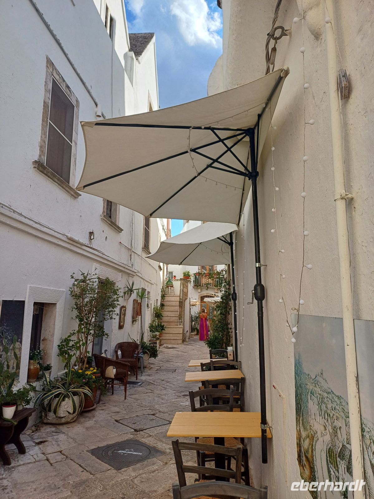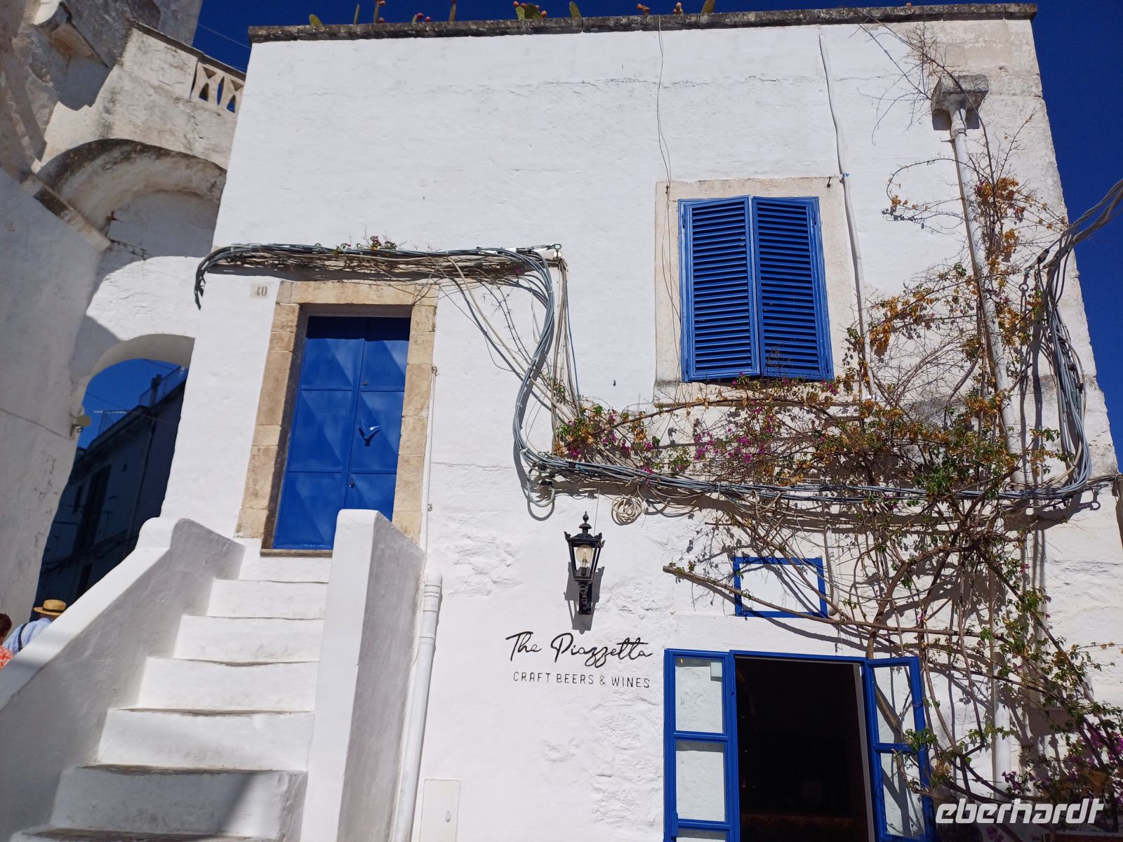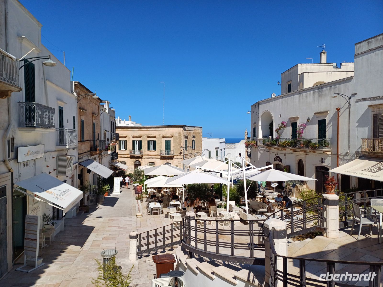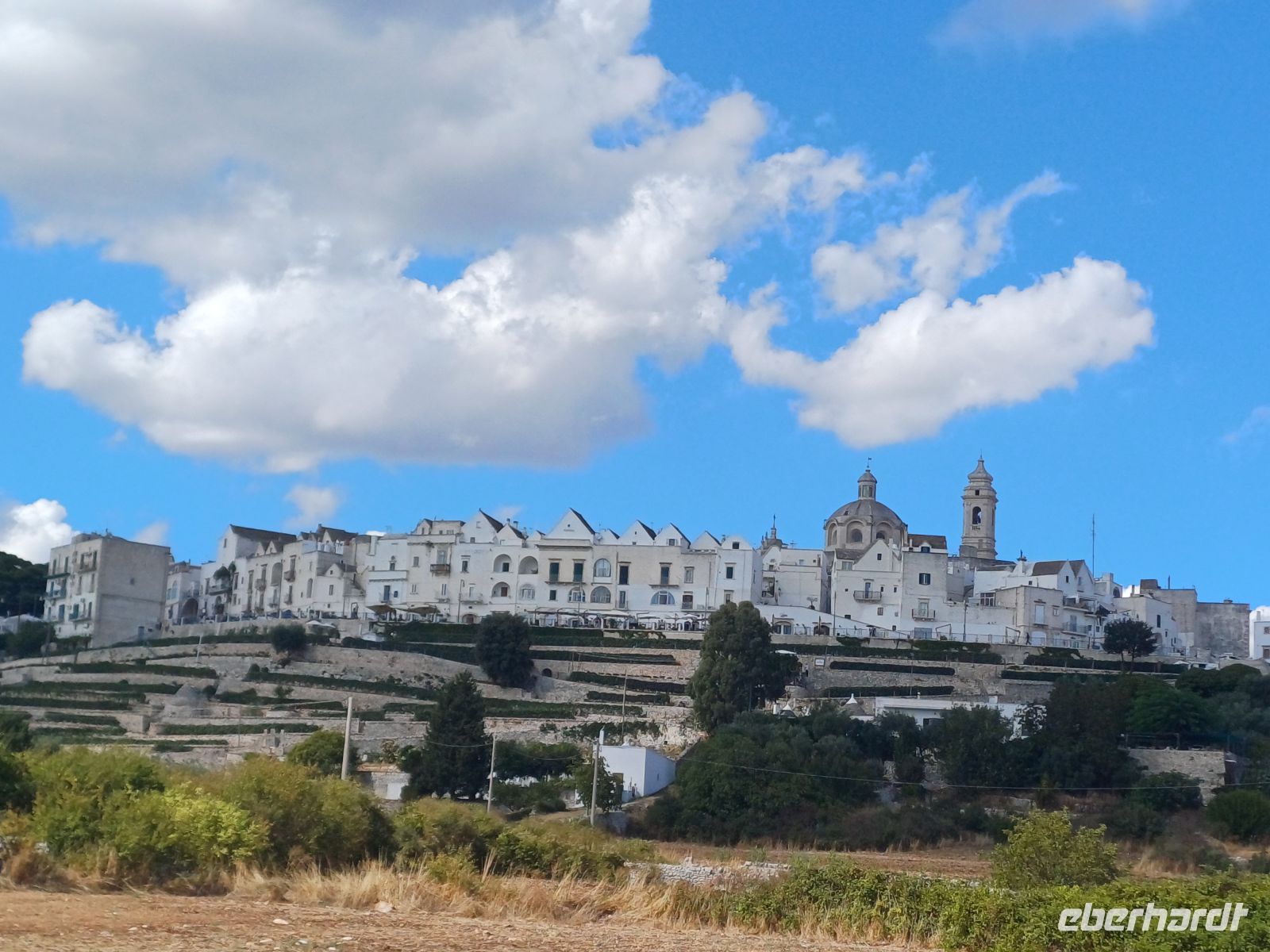 Gut gestärkt und vom leckeren Wein leicht benebelt geht es in das Städtchen Locorotondo. Der Aufstieg auf den Hügel kostet einige Mühe, aber dafür werden wir mit großartigen Ausblicken belohnt.