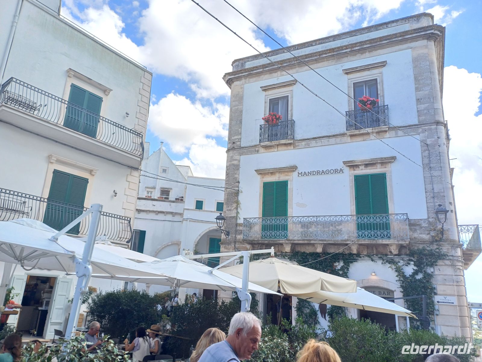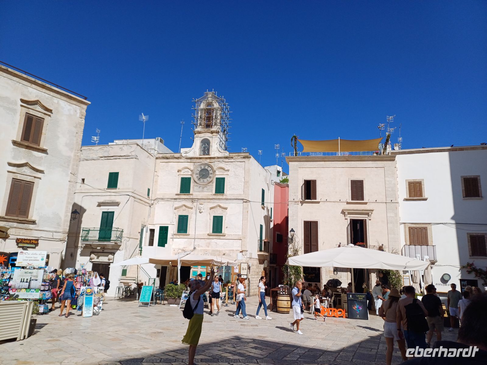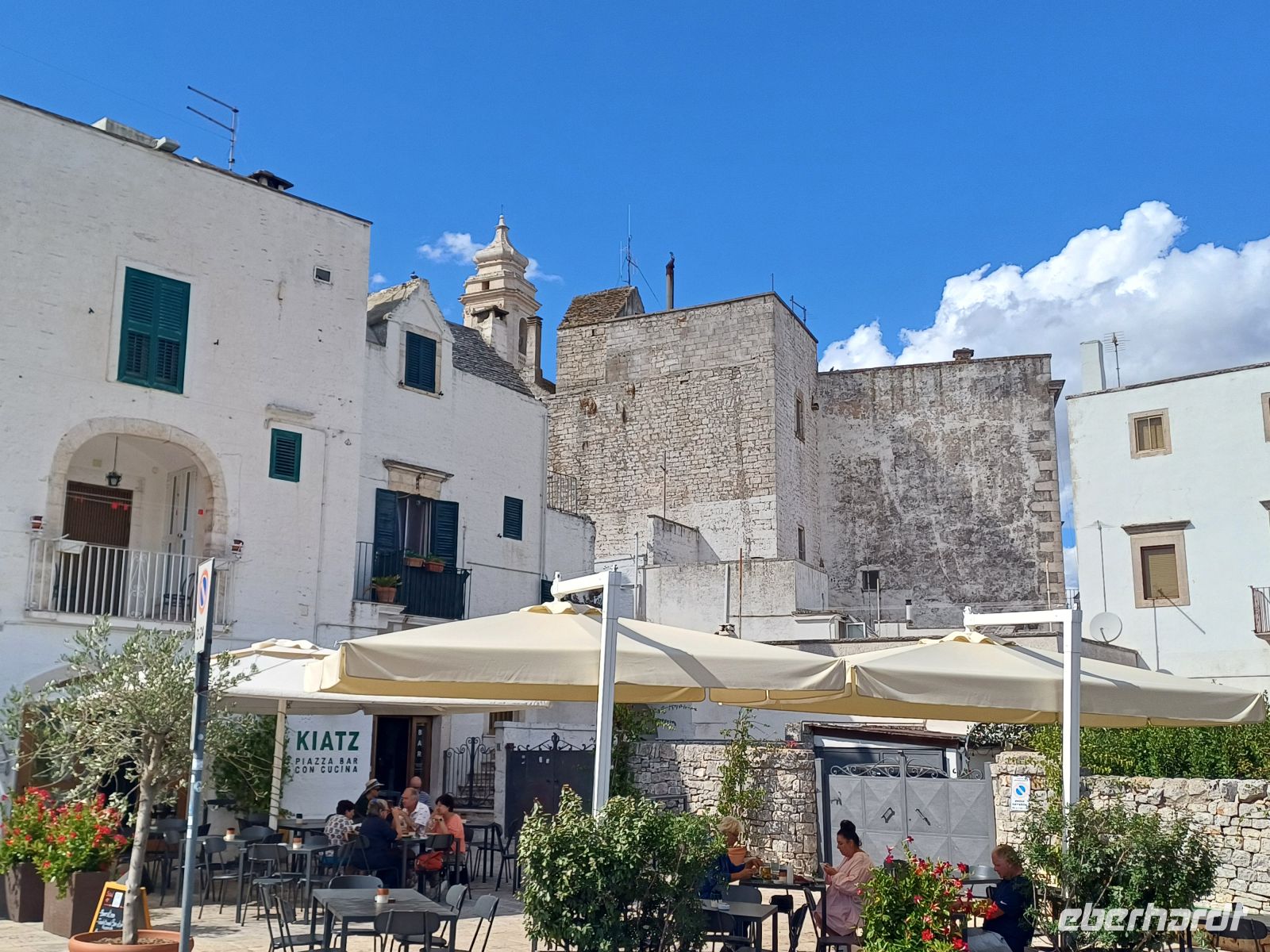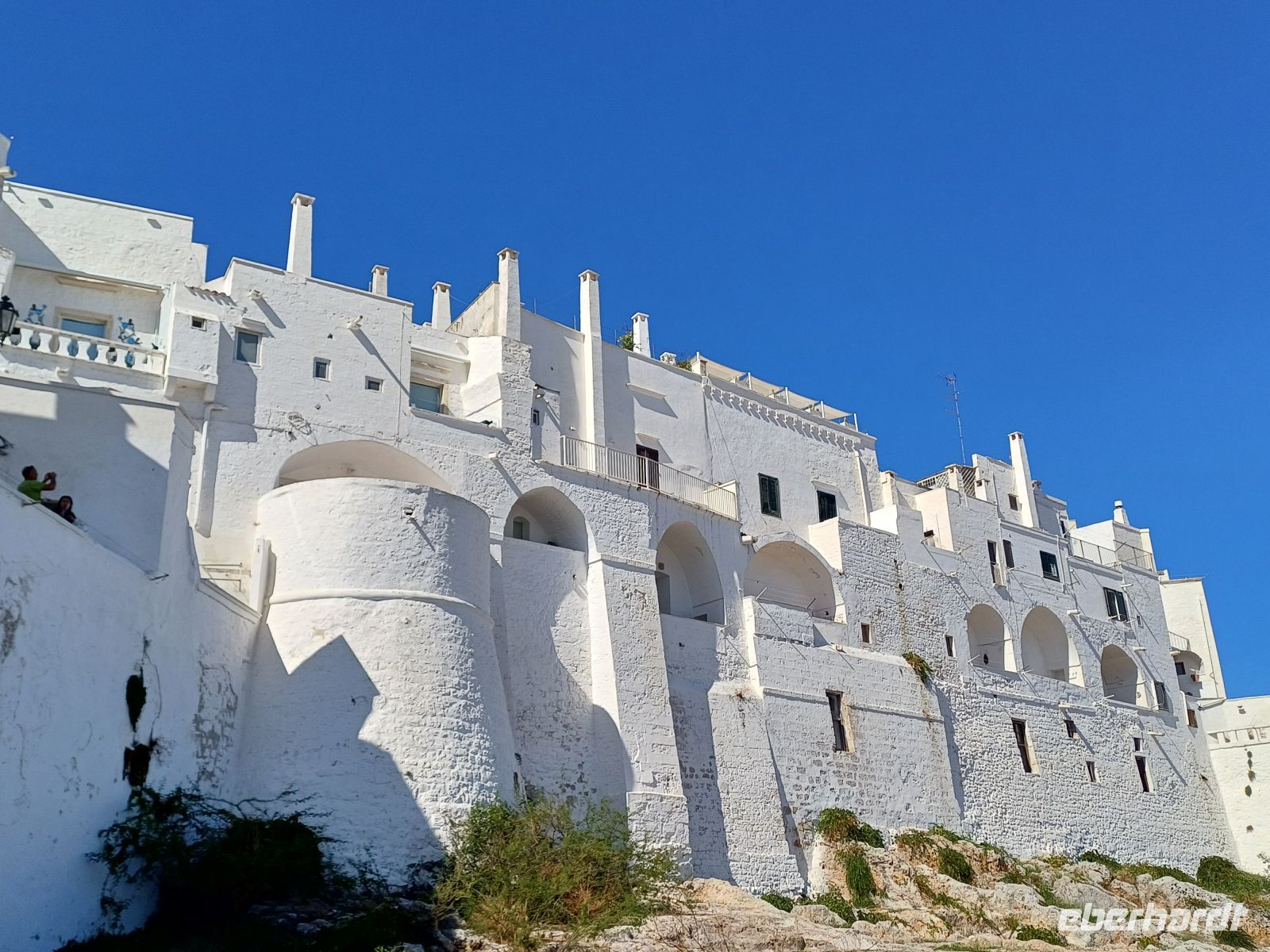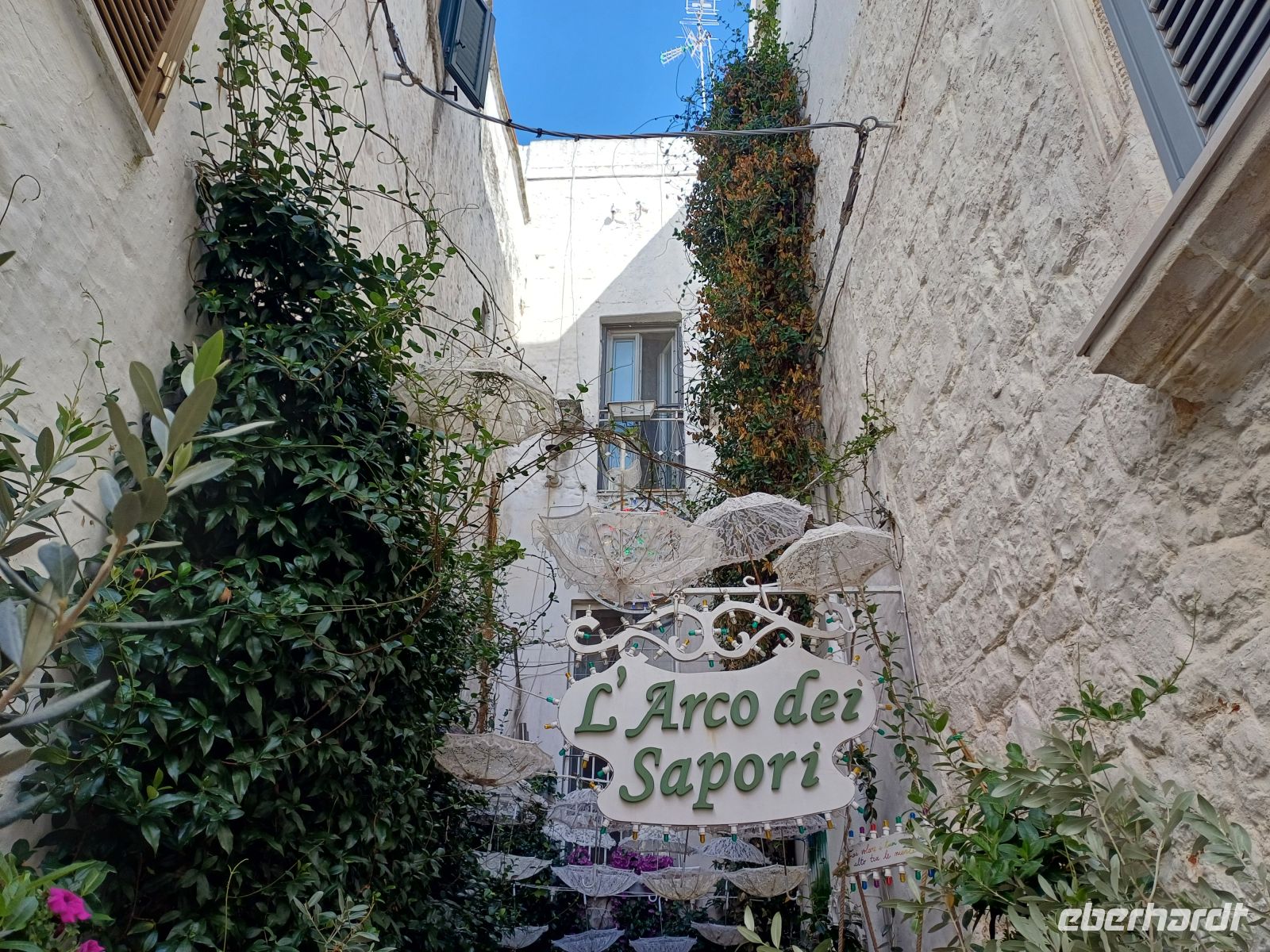 Gut gestärkt und vom leckeren Wein leicht benebelt geht es in das Städtchen Locorotondo. Der Aufstieg auf den Hügel kostet einige Mühe, aber dafür werden wir mit großartigen Ausblicken belohnt.