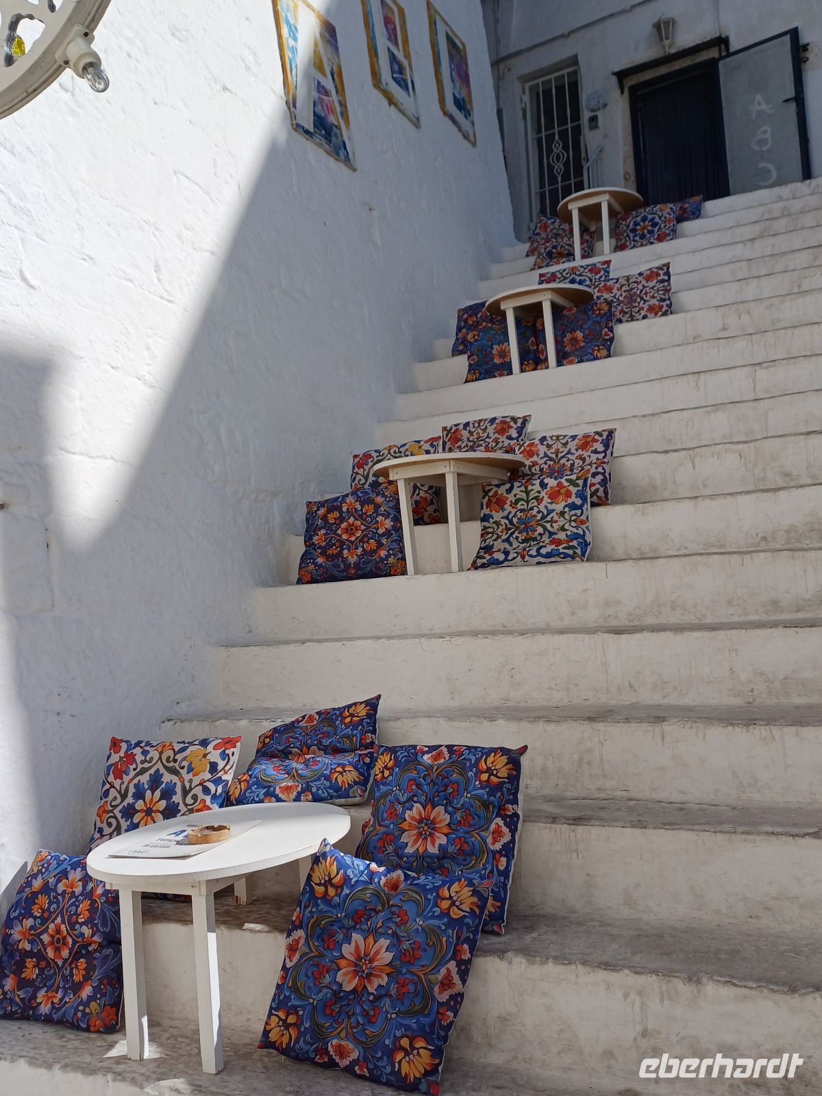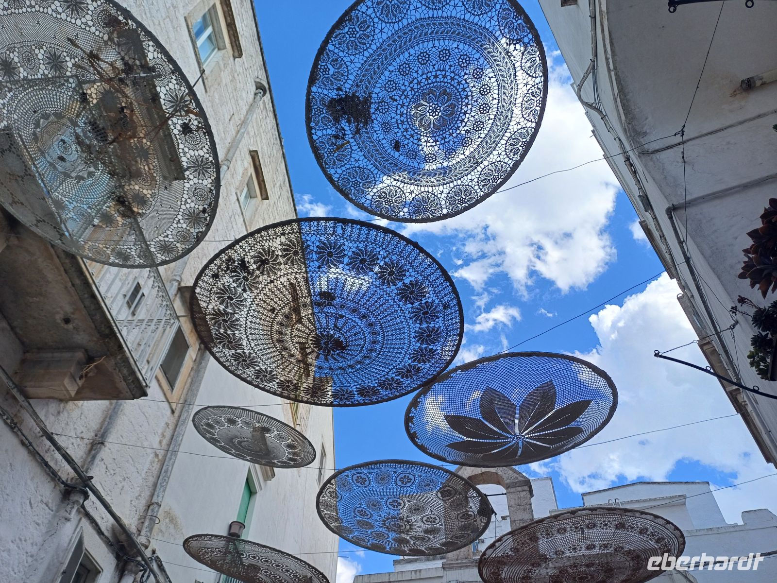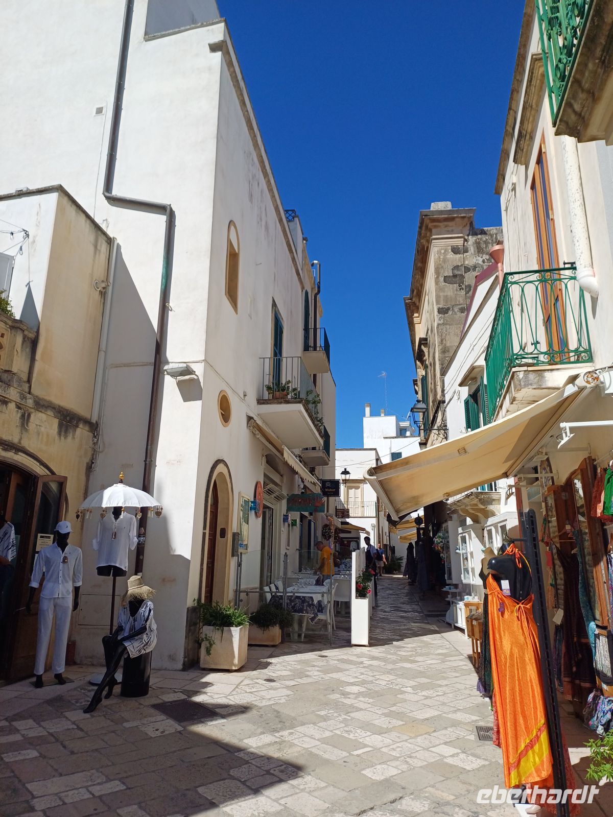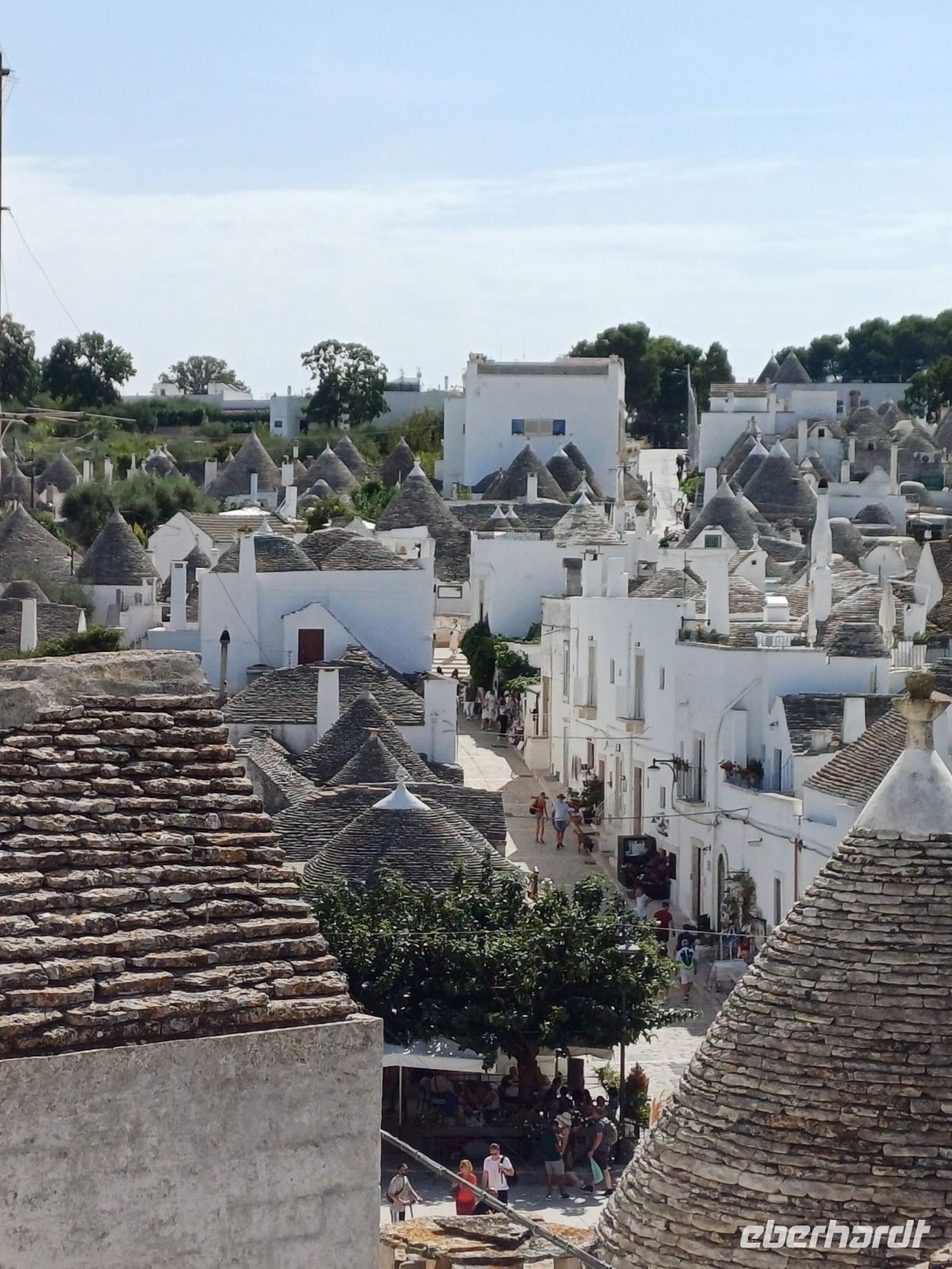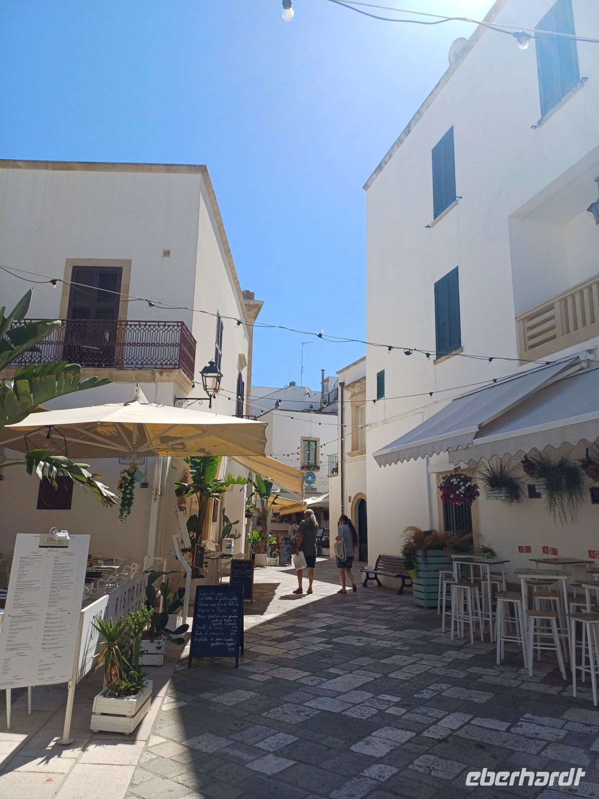 Gut gestärkt und vom leckeren Wein leicht benebelt geht es in das Städtchen Locorotondo. Der Aufstieg auf den Hügel kostet einige Mühe, aber dafür werden wir mit großartigen Ausblicken belohnt.