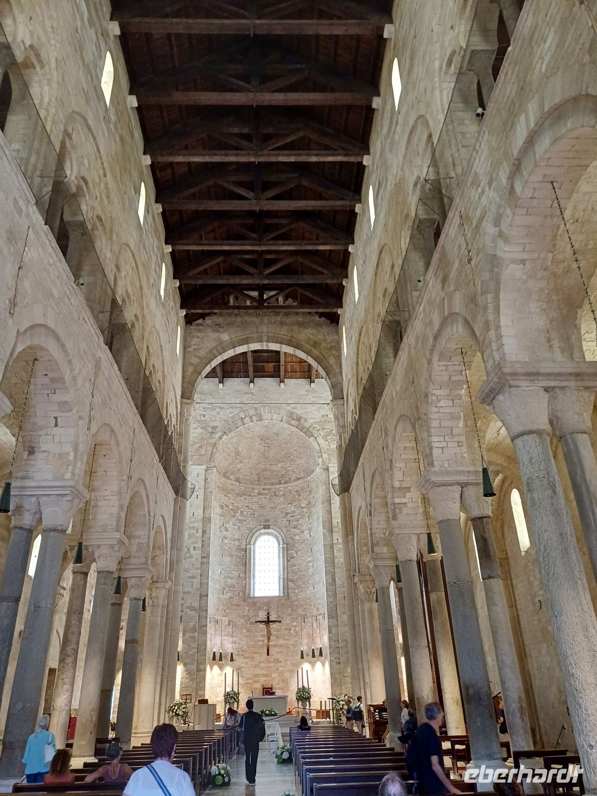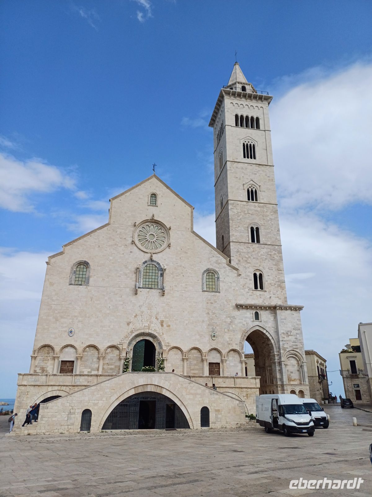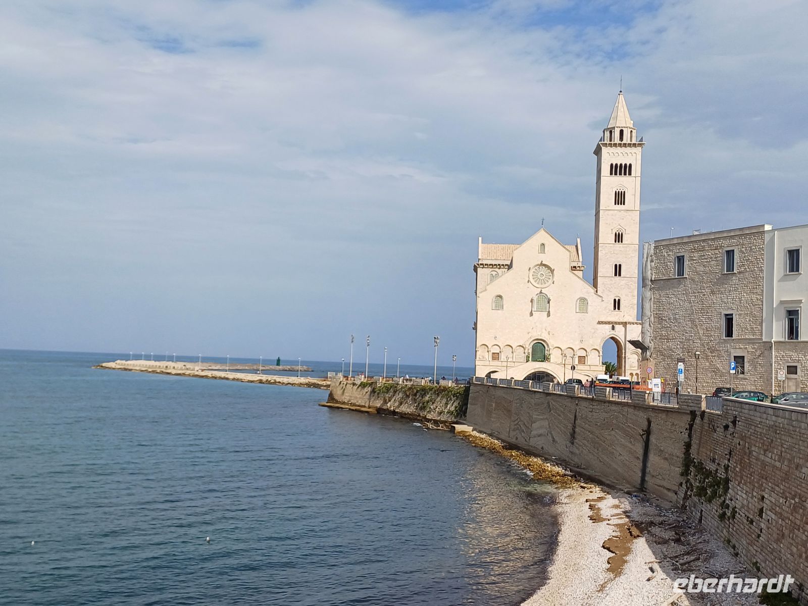 Der nächste Stopp ist die luxuriöse Hafenstadt Trani, diese liegt direkt am Meer und besticht mit einem mittelalterlichen Stadtkern. Die Gebäude sind weiß gekalkt und ziehen viele Touristen an. Wir besuchen die romanische Kathedrale San Nicola Pellegrino, diese fungiert auch als Wallfahrtskirche. Als Belohnung gibt es am Hafen von Trani für alle Gäste ein leckeres Eis.