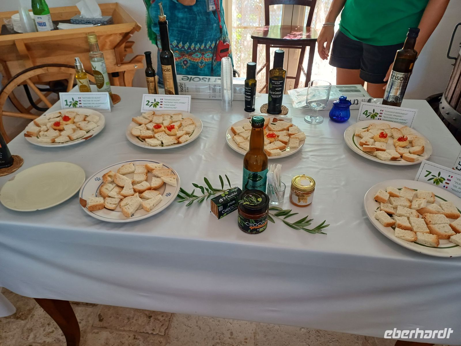 Am Nachmittag besuchen wir eine Ölmühle, wir sind positiv erstaunt über die Modernität der Anlage. Die Erntezeit beginnt im Oktober, es scheint ein gutes Jahr zu werden. Wir erfahren viel über die manuelle Ernte, die Verarbeitung und die Kriterien für ein gutes Ergebnis des Öles. Fast alle Gäste decken sich mit den verschiedensten Ölsorten für zu Hause ein, den Geschmäckern wird keine Grenze gesetzt.