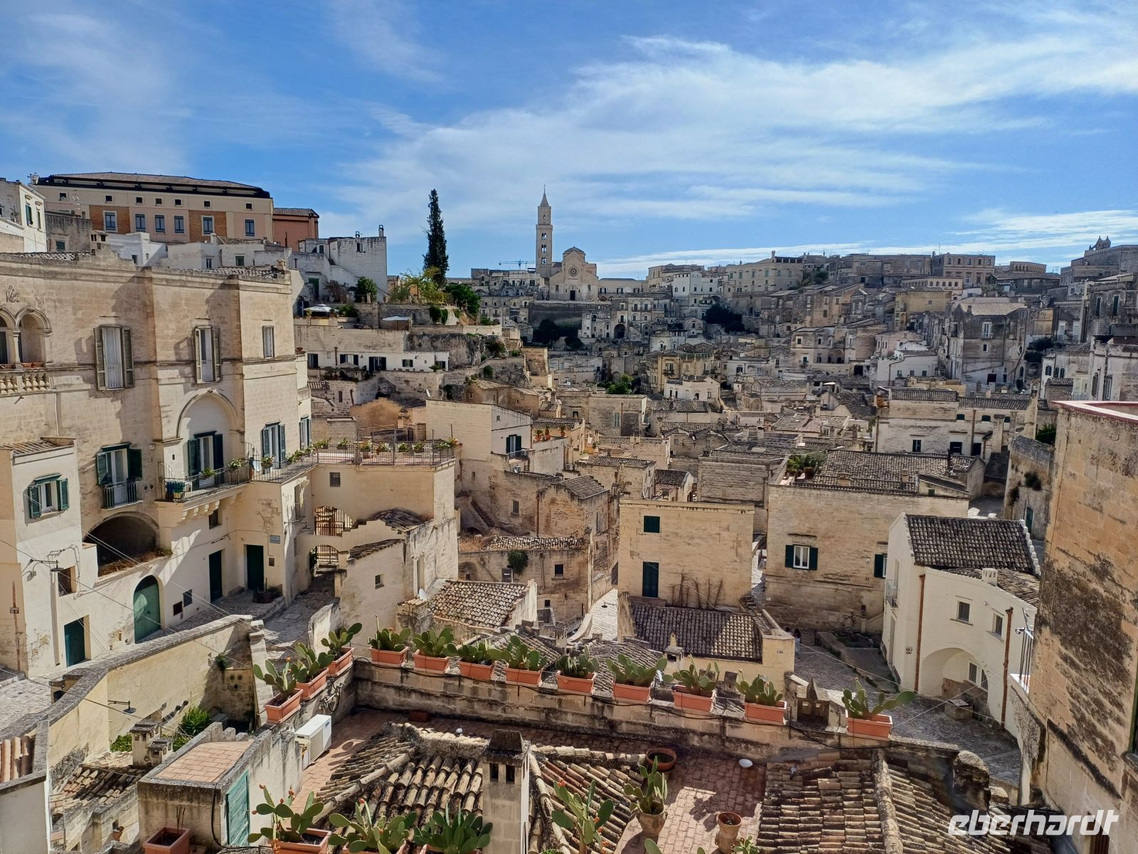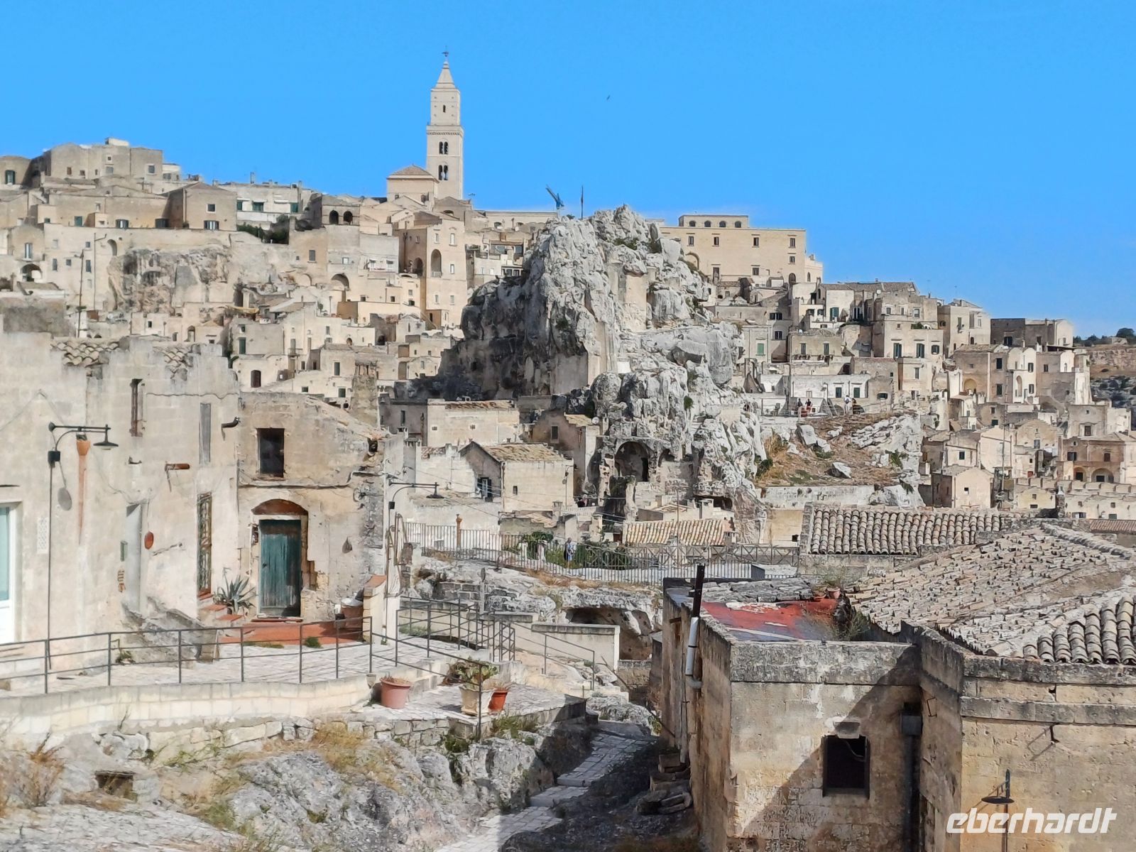 Im Laufe der Jahrhunderte ist ein ganzes System von übereinanderliegenden, oft miteinander verbundenen Höhlenwohnungen in die Felsen gegraben worden. Zusammen mit Jericho in Israel und dem syrischen Aleppo gilt Matera als älteste Stadt der Welt.