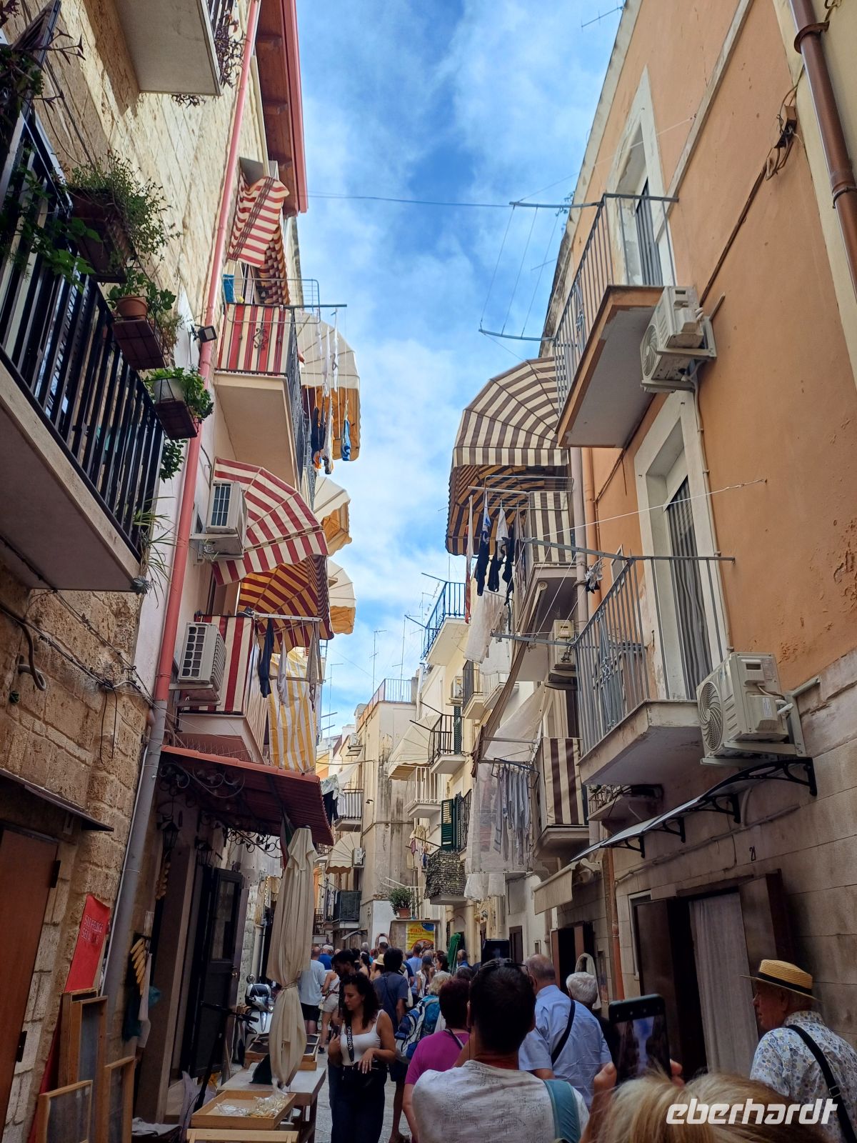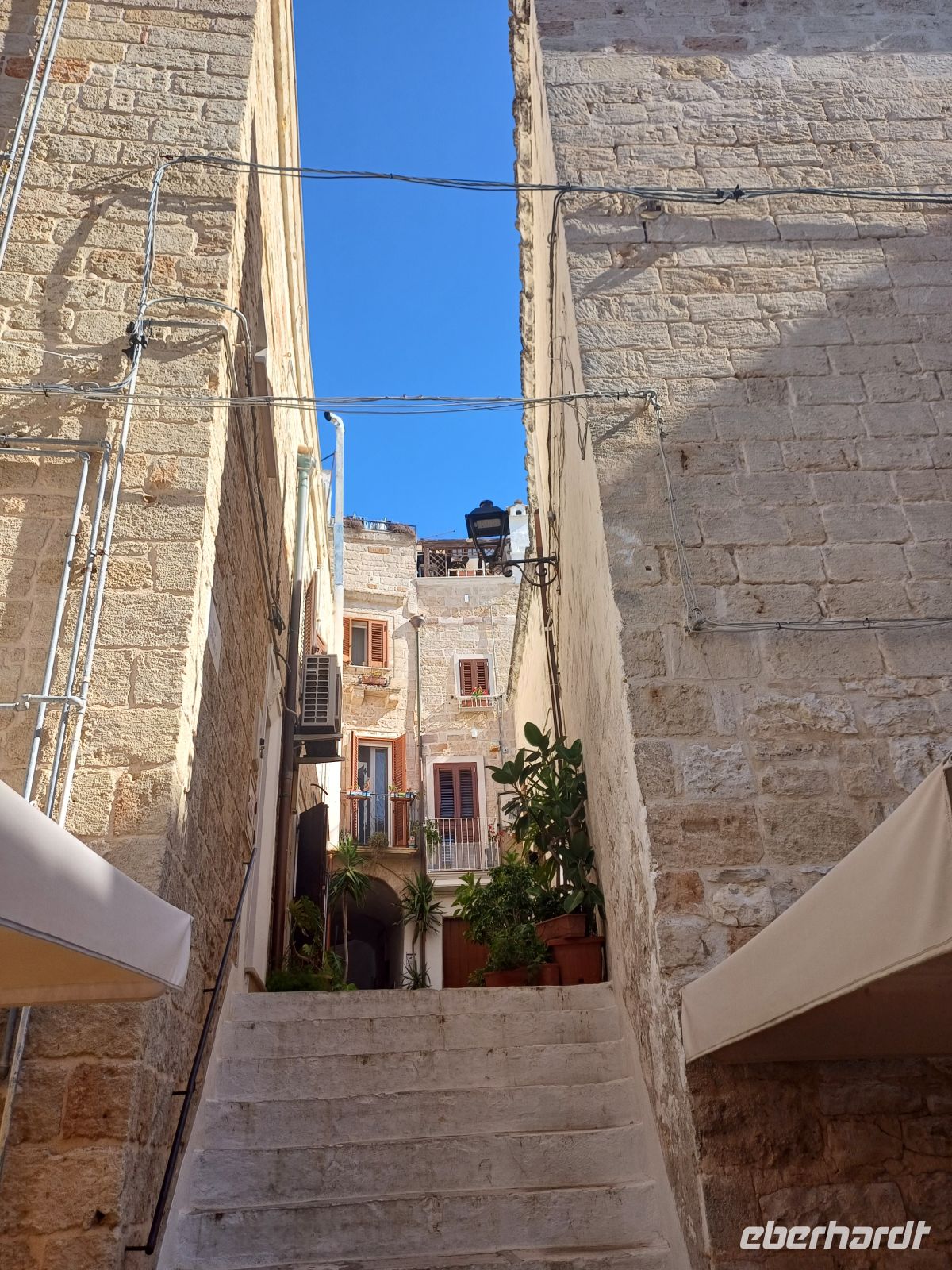 Reizüberflutet geht es am Nachmittag ans Meer, nach Bari. Bari ist die Stadt mit vielen Gesichtern, sonnenbeschienen und umweht von einer sanften Meeresbrise. Nicht zu vergessen die längste Seepromenade Europas. Diese lebendige Stadt mit mediterranem Flair hat viele historische Stätten, z.B. die Basilika di San Nicola, die Burg Bari und die Nudelgasse. Wir werden in den verwinkelten Gassen der Altstadt angesteckt mit echter italienischer Lebensfreude, das Wetter spielt auch mit, was will man mehr.
