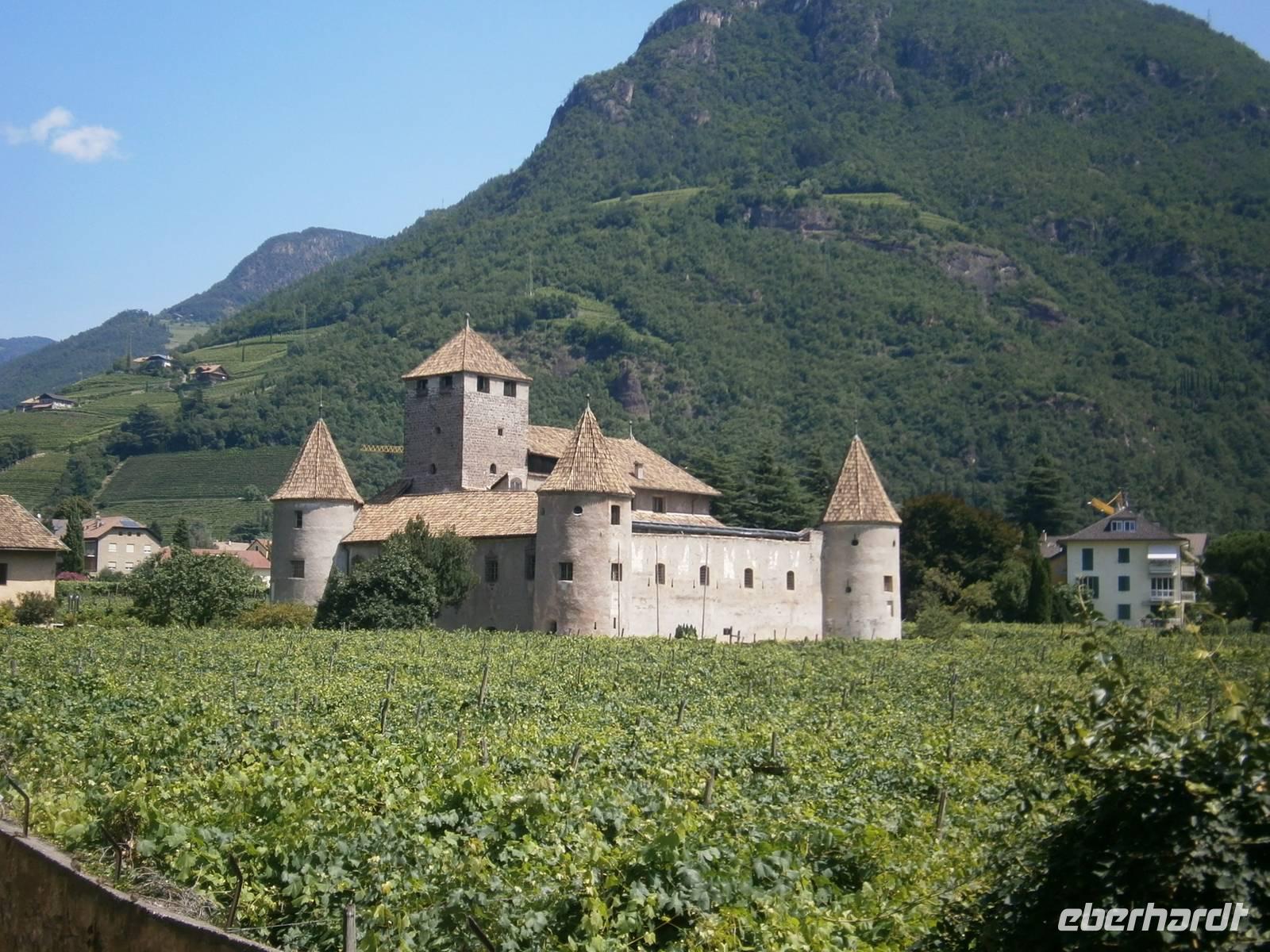 Neumarkt ist ein mittelalterlicher Marktfleck - schon die Römer ließen sich hier nieder - heute ist der Ort das kulturelle Zentrum im Südtiroler Unterland. Kurting, die kleinste Gemeinde an der Weinstraße - liegt mitten im Etschtal. Ausgedehnte Äpfel - und Weinanbauflächen bestimmen hier das Landschaftsbild. Tramin ist berühmt für die Rebsorte des Gewürztraminer. Der Weinanbau ist neben dem Obstanbau der wichtigste Wirtschaftszweig, wird er doch seit dem 18. Jahrhundert im sogenannten „Traminer Moos" betrieben. Überragt wird der Ort, mit seinem historischen Ortskern, vom höchsten gemauerten Kirchturm in Südtirol. Einer der wohl bekanntesten Ort ist Kaltern mit seinem gleichnamigen See. Das Klima ist hier besonders mild und so fügen sich Zypressen, Lorbeer- und Olivenbäume sanft in die Landschaft ein. Der Kalterer See ist das größte erhaltene Feuchtgebiet zwischen der Adria und der Poebene. In den Sommermonaten erreicht er eine Wassertemperatur von bis zu 28 Grad. Um den See gibt es verschiedene Wanderwege und auch die Wassersportler kommen hier auf ihre Kosten. In den umliegenden Weinanbaugebieten wird der Vernatsch - Wein kultiviert und ist nach dem See benannt. Den Wein „Kalterer See" verkosten wird dann auch in der Kellerei Brigl. Der Name Brigl steht für 700 Jahre Kellerkultur. Die Mitarbeiter legen höchsten wert auf die traditionellen Werte und die schonende Verarbeitung der Trauben mit modernster Kellertechnik. Die Kellerei liegt im Gemeindegebiet von Eppan. Hier befindet sich das größte Weinanbaugebiet Südtirols. Es erstreckt sich bis auf eine Höhe über 1500 Metern. Es umschließt mehrere Weindörfer und liegt eingebettet in einer weiten hügeligen Landschaft und zahlreiche Burgen prägen das Bild, das sich den Besuchern der Südtiroler Weinstraße bietet.