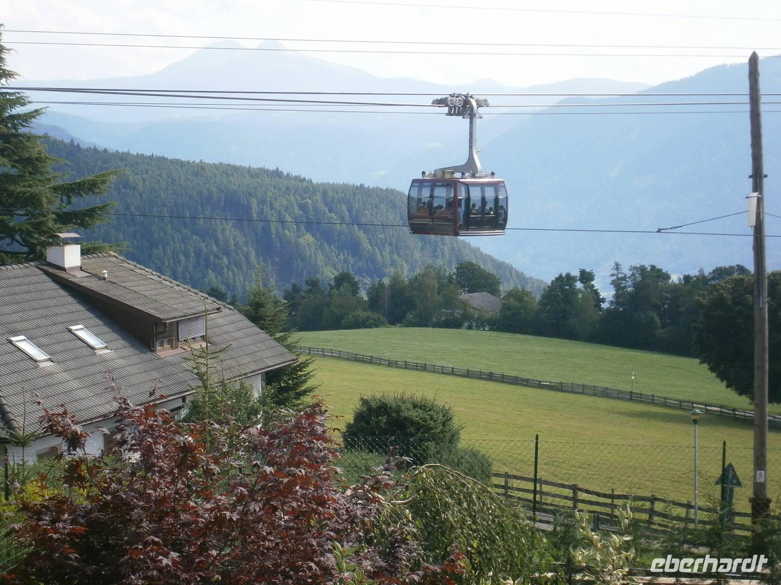 Für den Rückweg haben wir uns einen anderen Weg ausgesucht. Wir fahren mit der Schmalspurbahn von Klobenstein nach Oberbozen. Die Fahrt führt an Rappersbichl, Lichtenstern, Wolfsgruben und dem Wolfsgrubener See vorbei. In Oberbozen bleibt noch Zeit für einen Kaffee und ein Eis mit Früchten, bevor es dann mit der Finivia Renon bergab geht. Man fährt mit der Kabinenbahn von 1220 m Höhe hinab, um in Bozen auf 262 m Höhe anzukommen.