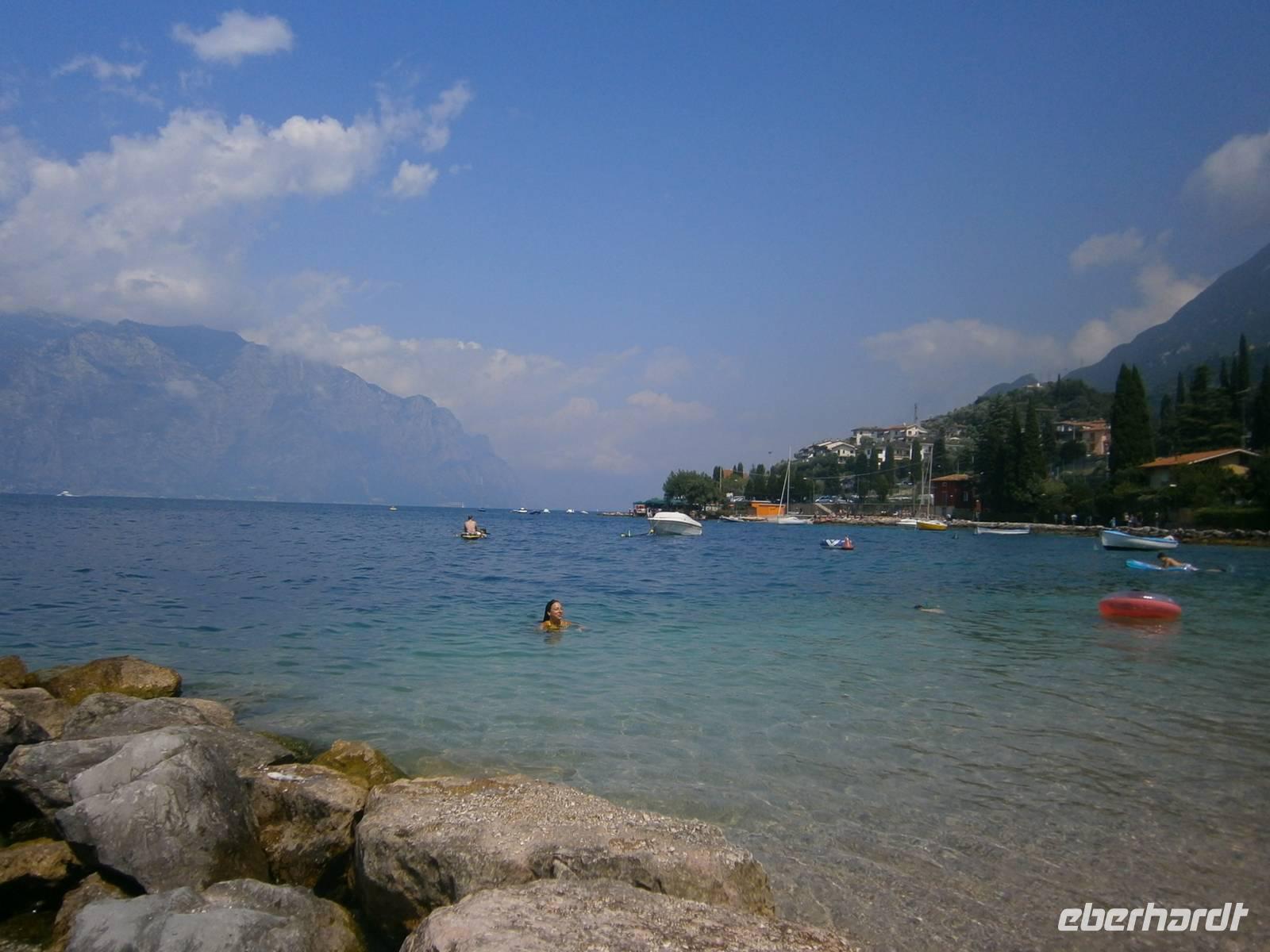 Der Gardasee, er ist der größte der Oberitalienischen Seen. Ihn erreicht man in knapp zwei Stunden. Mediterranes Klima, die einzigartige Naturkulisse, zahlreiche kleine Ortschaften mit einer wechselvollen Geschichte und nicht zu vergessen die üppige Vegetation prägen das Bild des „Lacus Benacus", wie ihn die Römer nannten. Von Riva aus fahren wir entlang der - Gardesana Orientale. Leider geht es an diesem Tag etwas langsam voran, denn auch in Italien ist Ferienzeit.. Das hochsommerliche Wetter tut sein übriges dazu, das viele Badelustige unterwegs sind. Wir durchfahren Torbole, am nördlichen Ufer um nach Malcesine zu gelangen. Der Ort liegt am Fuße des Monte Baldo. Während der Fahrt zum Gipfel drehen sich die Kabinen langsam, so dass man den Blick rund herum genießen kann. Hier gibt es gut angelegte Wanderwege und das Gipfelgebiet ist beliebt bei den Gleitschirmfliegern, die hier ihre Startbahn haben. Immer wieder ein beliebtes Fotomotiv ist das „Castello Scaligero", gelegen auf einem Felsen nördlich der Altstadt. Die Burg, eingegangen in die deutsche Literatur - J.W. Goethe weilte hier am 13. September 1786, ist heute als Museum eingerichtet und vom Turm aus hat man tolle Aussichten auf den See.