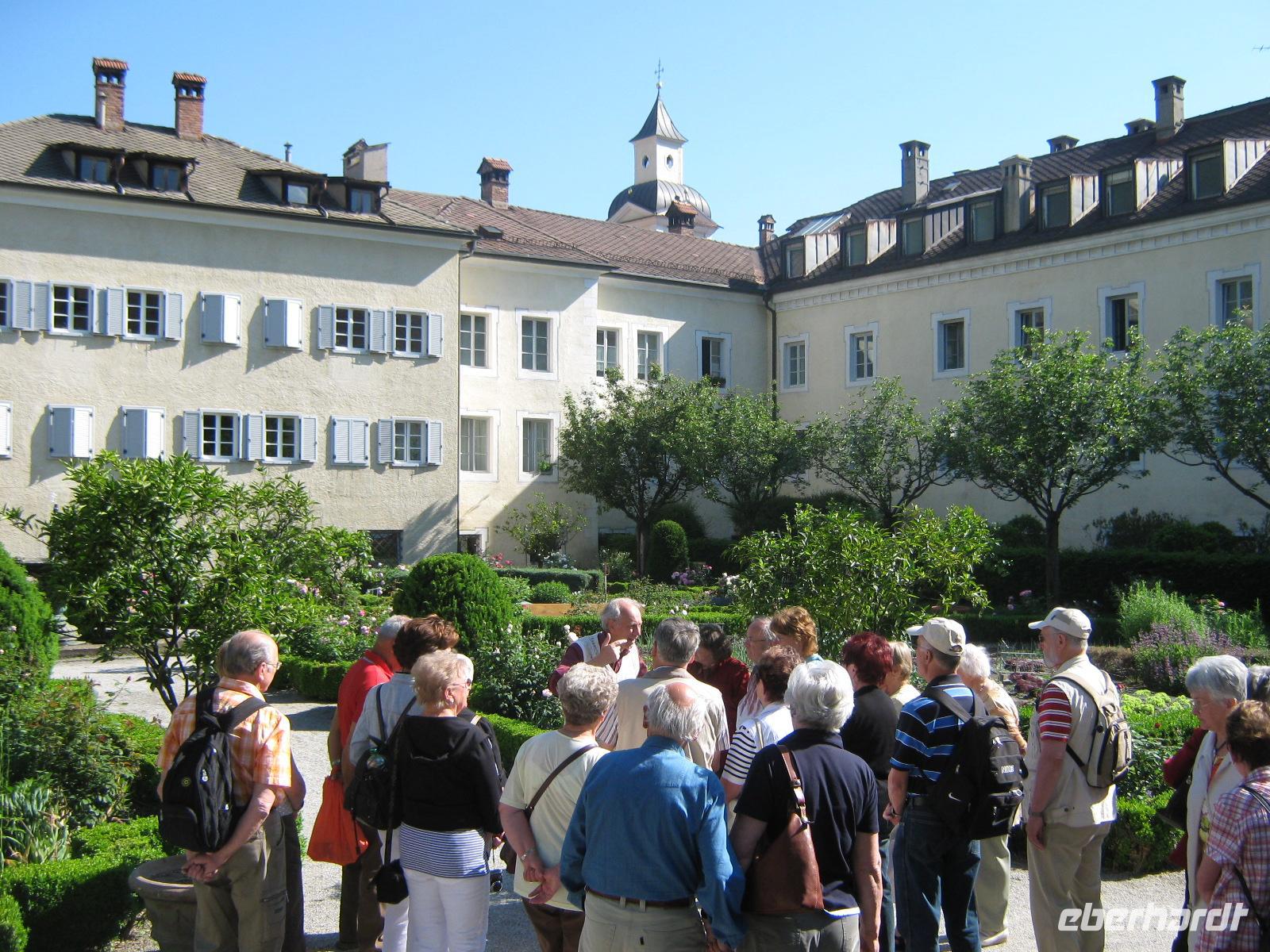 Richtung Brennerpass ging es durch Innsbruck und am Nachmittag erreichten wir unser Ziel, das Hotel "Lamm" in Sterzing. Check in war angesagt und die Zeit bis zum Abendessen wurde für erste Ortserkundungen genutzt. Ein schöner Tag ging geruhsam zu Ende und alle freuten sich auf den nächsten. Nach dem reichhaltigen Frühstücksbuffet starteten wir mit dem Bus Richtung Meran Vormittags war eine Führung durch den wunderschönen Schloßgarten am Schloß Trautmannsdorf geplant.