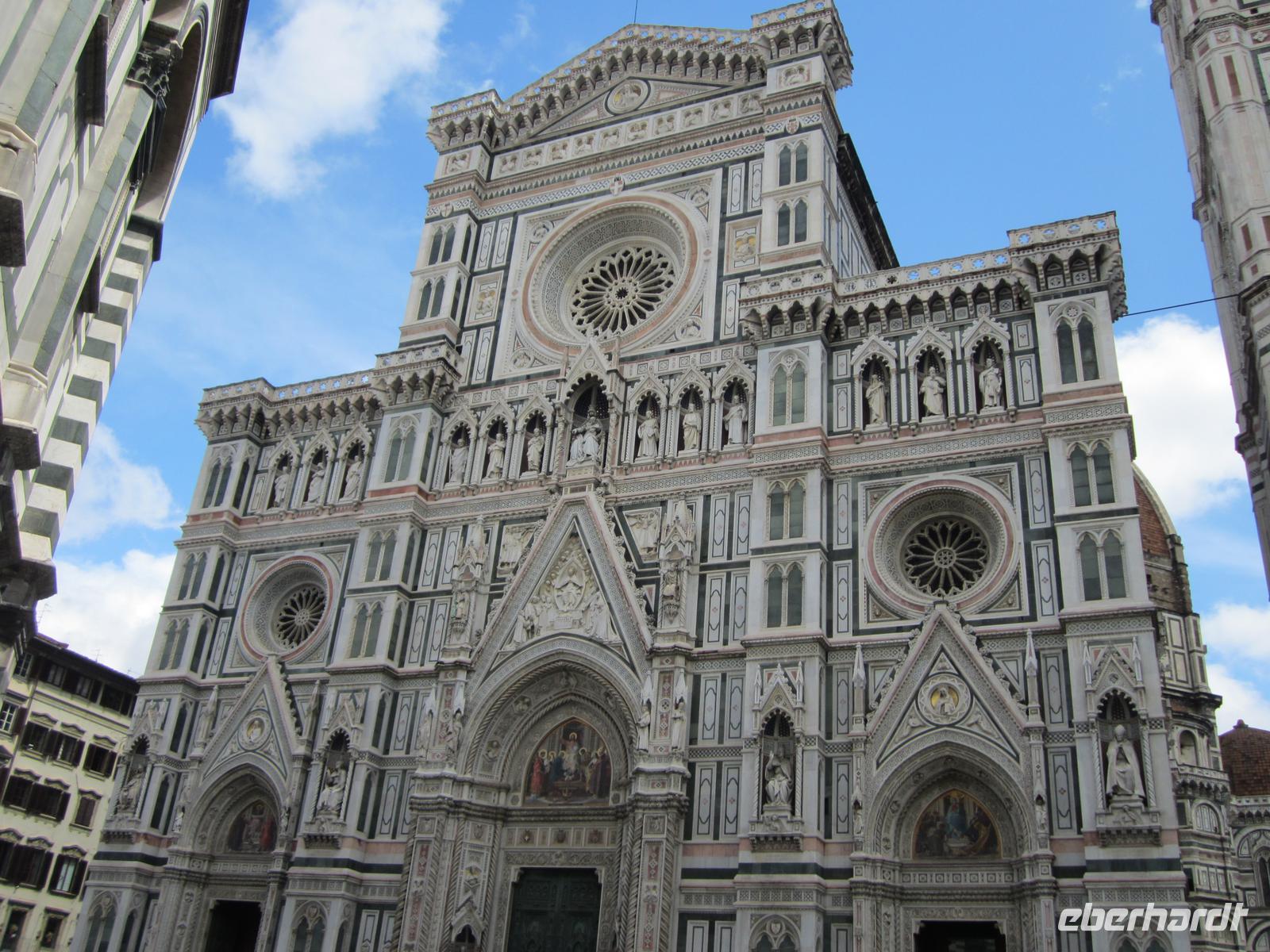 tiefenräumlicher Darstellung mit lebendiger Mimik und Gestik gezeigt.(Originale entstanden zwischen 1425-1452). Nach einem Blick auf das Battistero San Giovanni, den Dom Santa Maria Del Flore mit dem Campanile endet unsere Stadtführung nach 3 Stunden. Wir sind uns einig, es erfordert weitere Besuche um die Stadt in ihrer Schönheit aufnehmen zu können. Wir haben reichlich Freizeit für Florenz geplant und einige besuchen noch Museen oder auch die Kirche S.Croce in der man die Gräber bedeutender Persönlichkeiten sehen kann.z.B. Migelangelo, Galilei u.a. Sehr beeindruckend verlassen wir Florenz am Nachmittag.