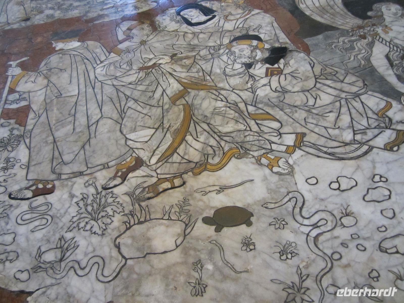 Heute heißt es die Koffer wieder im Bus zu verstauen und Abschied nehmen von Chianchiano Terme zu nehmen. Unser Ziel liegt heute an der Küste in S. Vincenco. Auf dem Weg dahin besuchen wir aber noch Siena. Eine der schönsten Städte, beschrieben oft als die schönste Stadt der Toskana,die Stadt die gleichzeitig das zweitgrößte Kunstzentrum der Toskana ist. Unsere Stadtführerin wartet am Check Point auf uns. Wir erleben eine Rallye in der Stadt und viel Publikum. Mittelpunkt und Herz der Stadt ist der Piazza des Campo und wir konnten bildlich nachvollziehen, wie es aussieht wenn am 2. Juli und 16. August die Pferderennen stattfinden. Ausprobiert wird natürlich auch, wie es sich anfühlt, auf dem Boden des Platzes zu sitzen. Ein besonderes Erlebnis ist in Siena der Duomo Santa Maria Assuanta, den besuchen wir am Ende der Stadtführung und haben für die Gäste, die den Dom im Inneren sehen wollen, eine Führung dabei. Dabei kommt dem Marmorfußboden mit seinen insgesamt 56 Bildern und auch der Bibliothek eine besondere Bedeutung zu. Gegen 14.00 Uhr treffen wir uns auf dem Piazza del Campo und laufen gemeinsam zur Fortezza an der der Bus auf uns wartet. Umfang (56 Bilder). Entlang der E 78/E 80 fahren wir zum Hotel Lo Scoglietto nach San Vincenzo. Vor dem Abendessen bleibt noch Zeit eine kleine Strandwanderung zu unternehmen und die Wassertemperaturen zu fühlen.