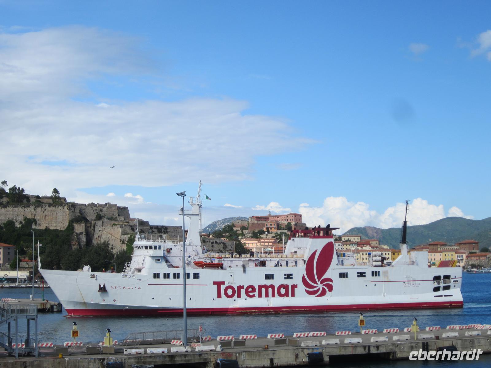 Wir fahren nach Piombino zum Fahrhafen. Einige von uns haben bedenken, wie hoch werden die Wellen sein, verläuft die Fahrt ruhig? Im Nachhinein können wir sagen das Meer war ruhig und wir konnten die Überfahrt auf der Fähre Moby bei schönem Wetter genießen. 10.30 Uhr treffen wir unsere örtliche Reiseleiterin Heide