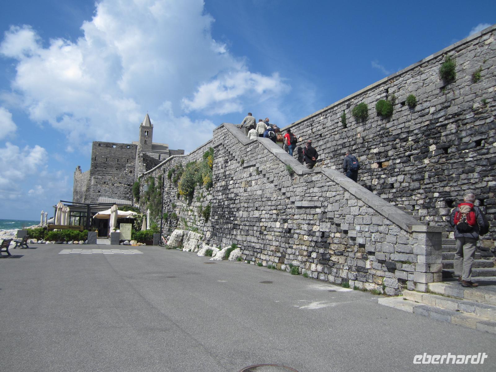 Heute beginnt unsere Rückreise und wir haben noch einen besonderen Programmpunkt. Die Cinque Terre, die 5 Orte, die zum Weltkulturerbe gehören, wollen wir vom Schiff aus sehen. Unsere Fahrt mit dem Bus geht deshalb bis La Spezia. Bis dahin fahren wir eine entlang der Via Aurelia und haben dabei die Gelegenheit einen Blick auf Pisa werden zu können. Wir fahren aber auch an den Marmorsteinbrüchen von Carrara vorbei. Auf dem Weg nach La Spezia werden wir informiert, dass die Schifffahrt annulliert ist. Wir haben zu starken Wind. Nun heißt es zu handeln. In La Spezia wartet auf uns eine örtl. Reiseleiterin und wir planen mit dem Bus bis oberhalb von Pontevenere zu fahren. Mit dem Shuttlebus geht es in den Ort. Wir spazieren bis zum Wellen umtosenden Kap mit der Kirche S.Pietro. Mit dem Bus geht es zurück nach La Spezia. Wir fahren mit dem Zug nach Monterosse. Nach einer kurzen Führung planen wir die Mittagspause im Letzten der Fünf Orte der Chince Terre ein. Weiter geht es danach mit dem Zug nach Levante, wo Roy auf uns wartet. Weiter führt uns unsere Fahrt an Parma vorbei, Richtung Mailand, dann zum Gardasee an Brescia vorbei wieder nach Torbole zum Hotel Villa Rosa. Es schließt sich der Kreis und erlebnisreiche Tage in der Toskana und Umbien gehen zu Ende. Den Abend lassen wir nun schon in einer gewohnten Umgebung mit Blick auf den Monte Baldo und den Briscaner Alpen ausklingen.