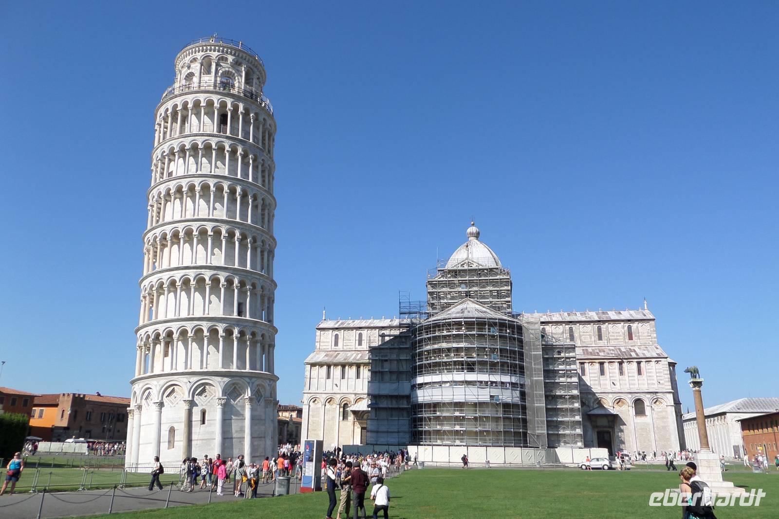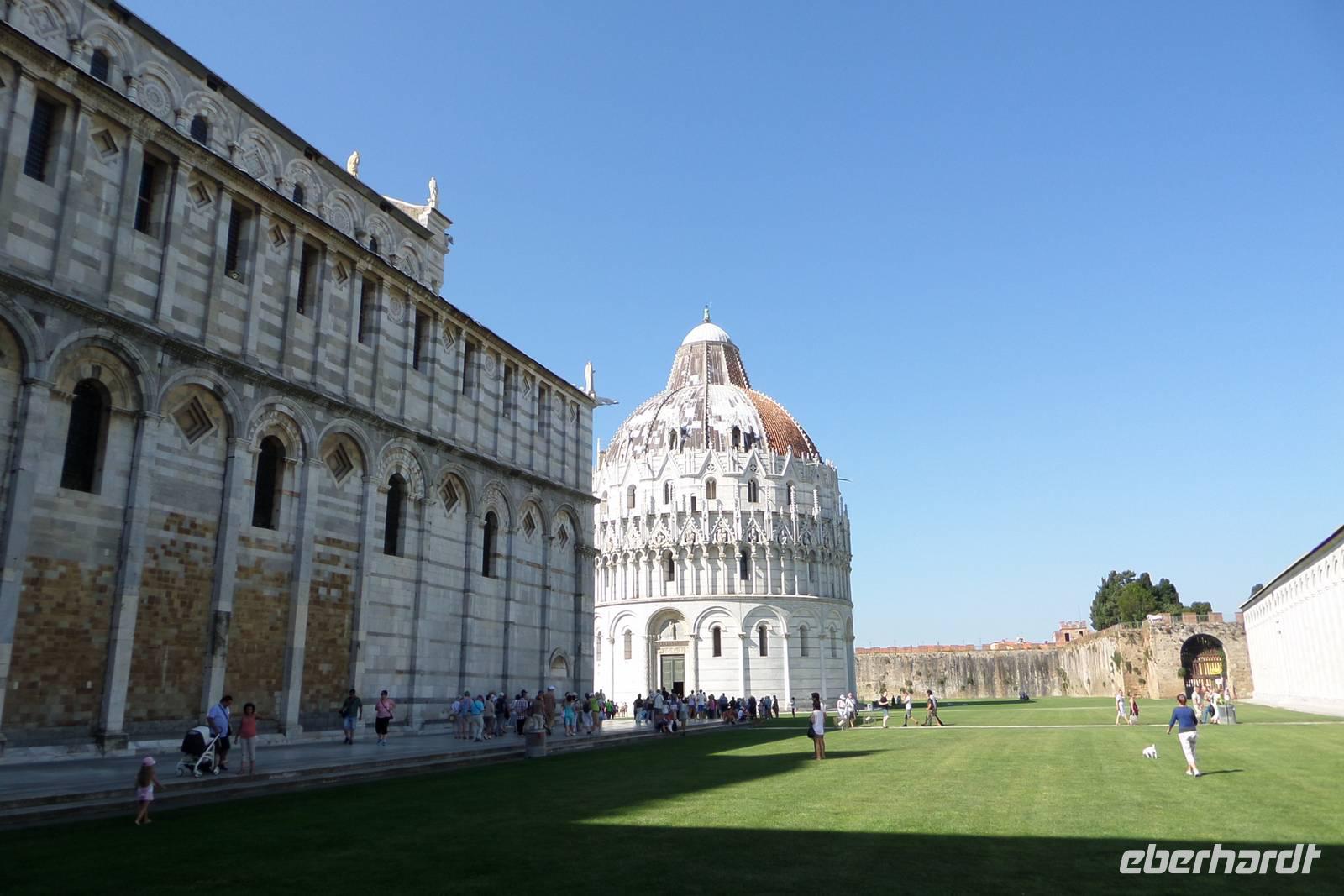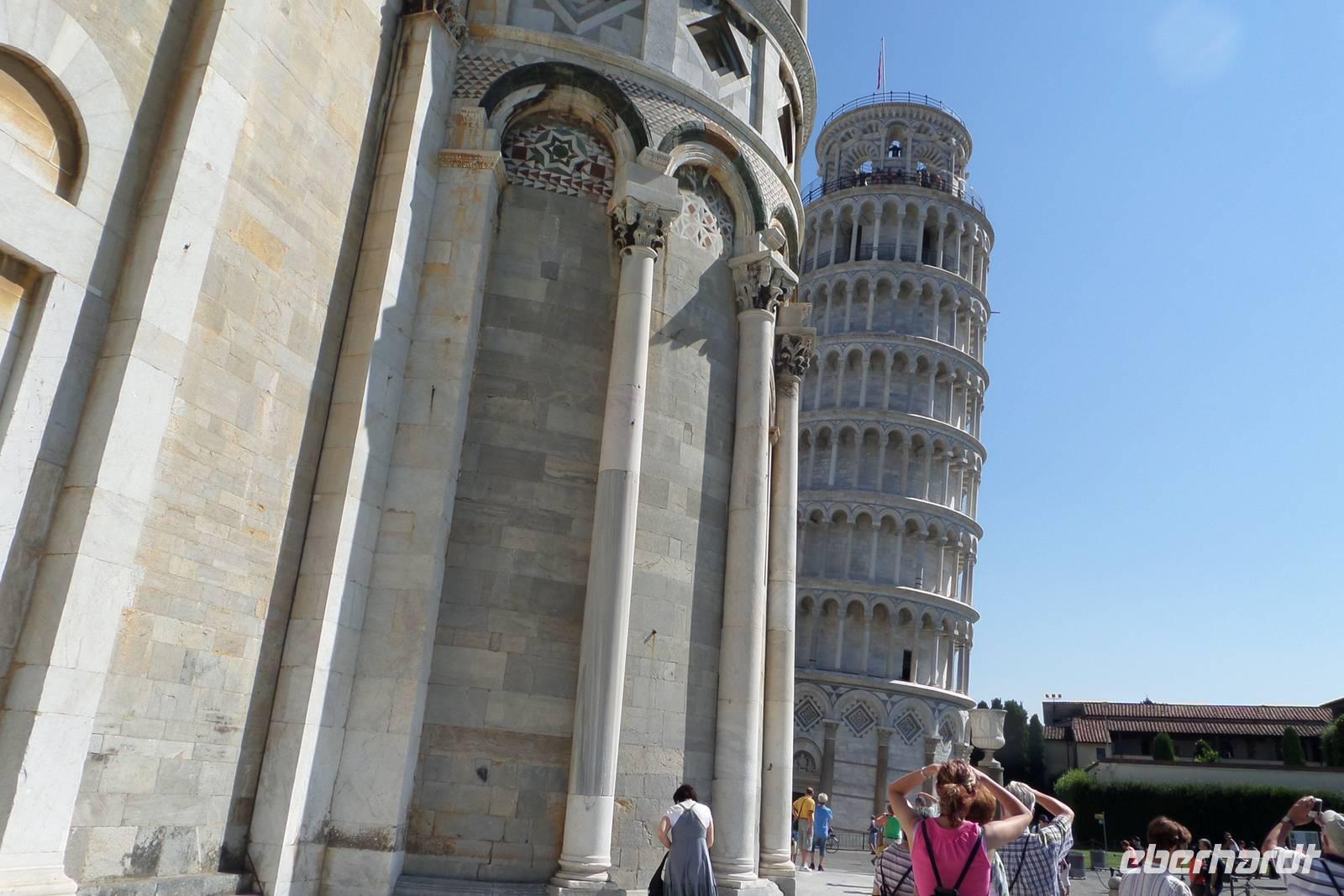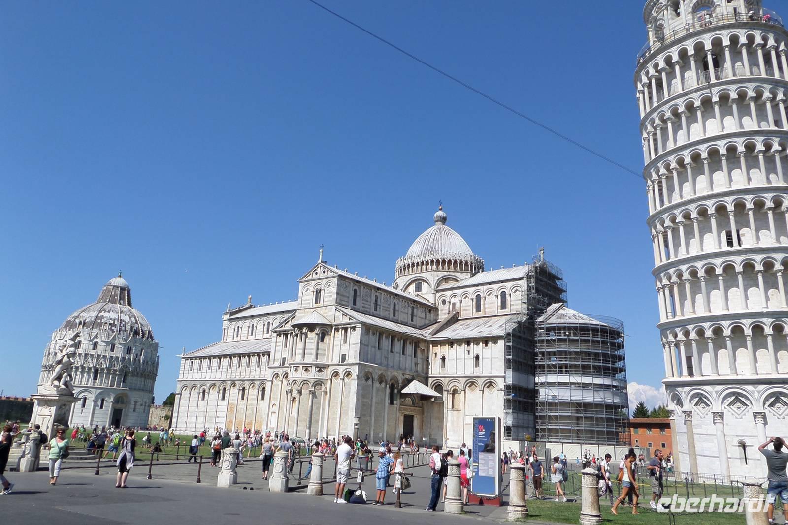 Zuerst betrachten wir den weltbekannte Schiefen Turm und lassen uns seine Geschichte von Anna erzählen. Später werden wir ihn besteigen, Eberhardt-Travel hat Karten für uns reserviert! Ein tolles Erlebnis! Vorher besichtigen wir noch den eindrucksvollen Dom Santa Maria Assunta, doch für das Baptisterium bleibt leider keine Zeit, es sei denn in der Mittagspause.
