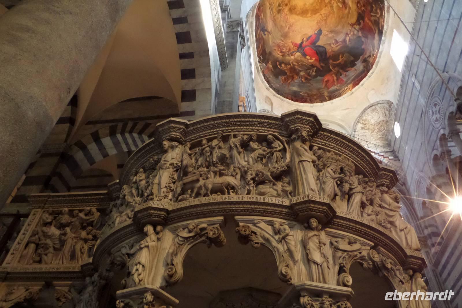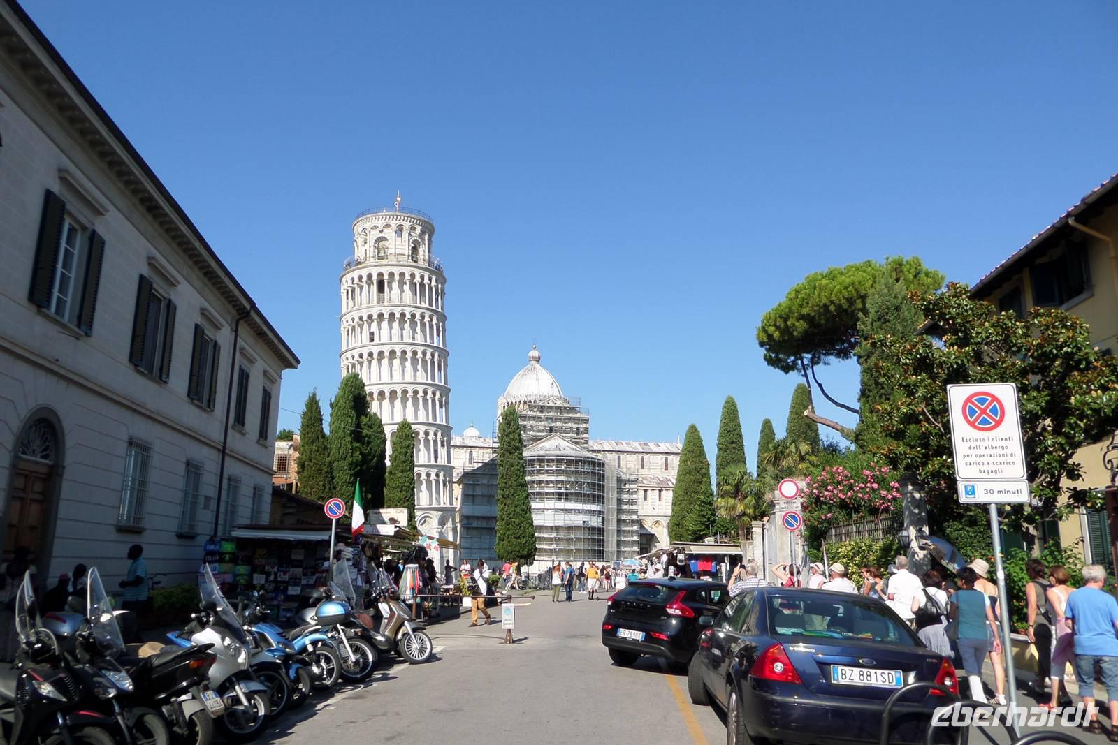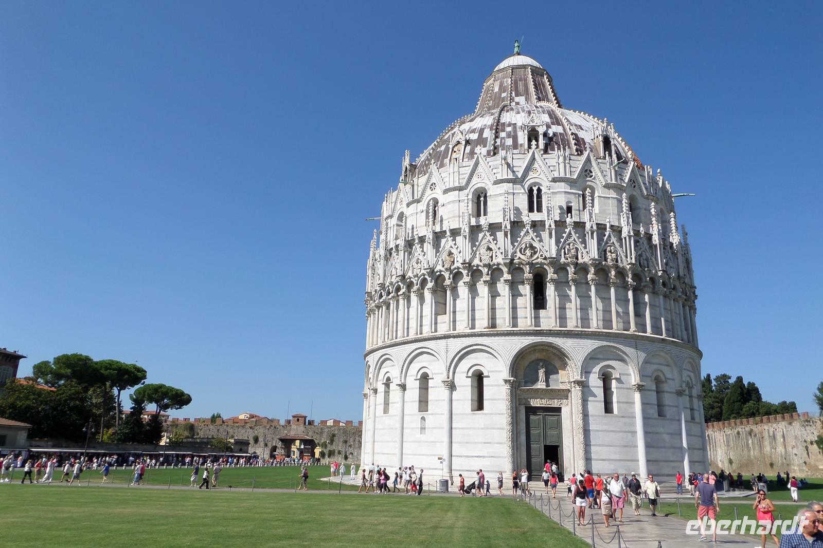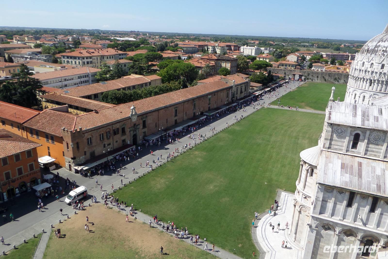Zuerst betrachten wir den weltbekannte Schiefen Turm und lassen uns seine Geschichte von Anna erzählen. Später werden wir ihn besteigen, Eberhardt-Travel hat Karten für uns reserviert! Ein tolles Erlebnis! Vorher besichtigen wir noch den eindrucksvollen Dom Santa Maria Assunta, doch für das Baptisterium bleibt leider keine Zeit, es sei denn in der Mittagspause.