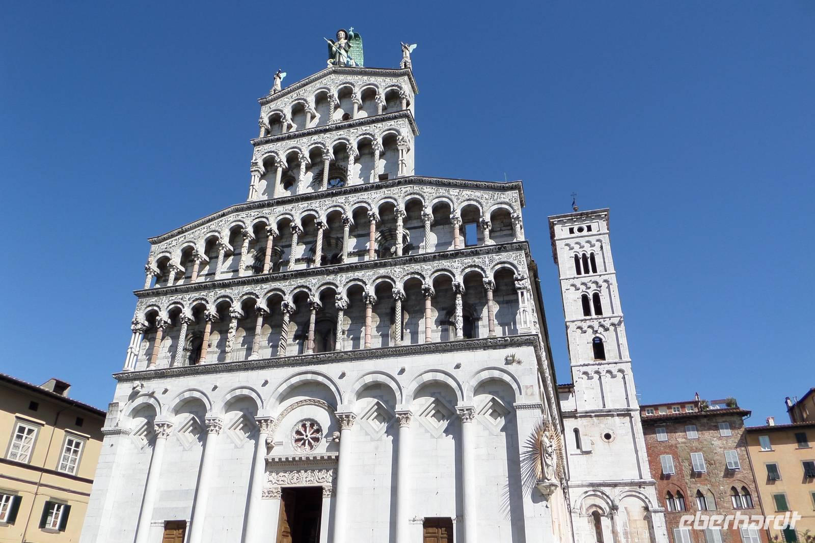 Am frühen Nachmittag bringt uns unser Bus weiter nach Lucca. Wir haben Freizeit. Mancher möchte noch etwas besichtigen, andere möchten die Atmosphäre bei einem Cappuccino oder Gelato genießen. Petra läuft mit uns ins Zentrum, zu dem Platz, wo früher das alte Amphitheater stand, zeigt uns den Uhrturm und den Weg zum Guinigiturm, San Michele in Foro, das Puccini-Museum, den Weg zum Dom... So kann jeder seinen eigenen Interessen nachgehen.