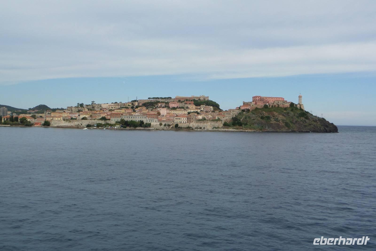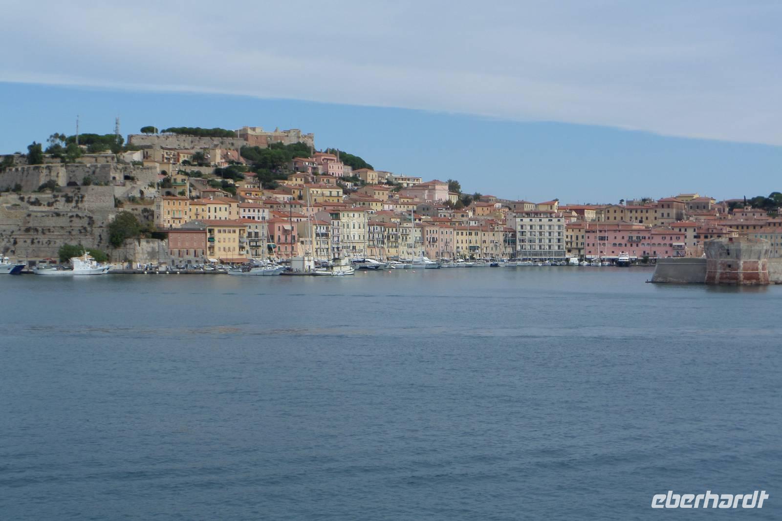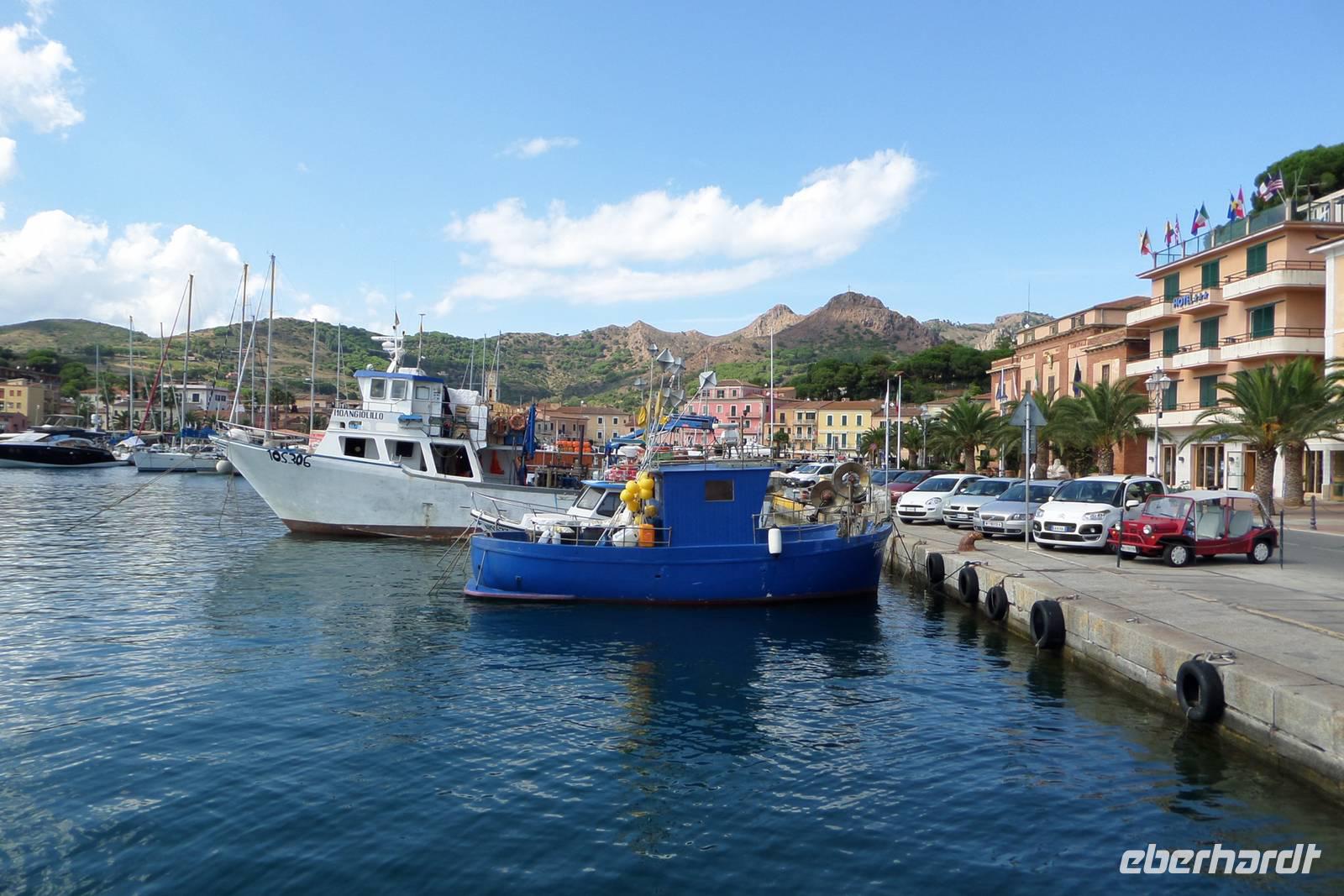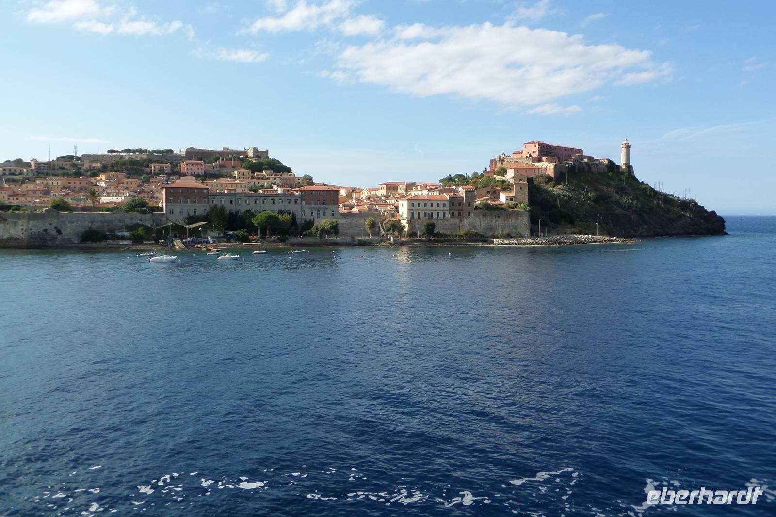 In mehr als einer Stunde sind wir am Fährhafen in Piombino. Eine weitere Stunde vergeht, ehe wir auf der Insel Elba, die zum Toskanischen Archipel gehört, die Fähre in Portoferraio verlassen. Führerin Irene zeigt uns die Insel von Ihrer schönsten Seite und gibt uns viele interessante Informationen über die Geschichte. Da montags das Napoleonmuseum ge-schlossen ist, führt Irene uns nach Marciana Marina, wo wir landestypische Weine verkosten können. In unserer Mittagspause in Marina de Campo nehmen wir nach dem Essen auch noch ein herrliches Bad  und kühlen uns ab.