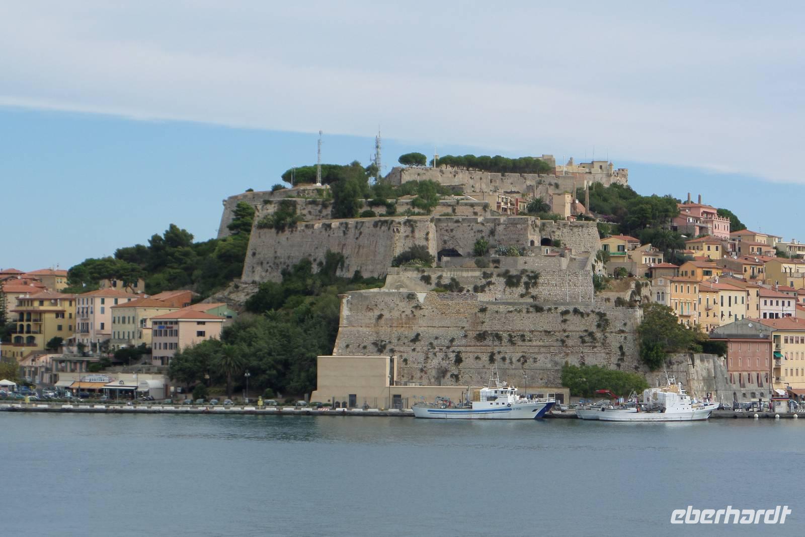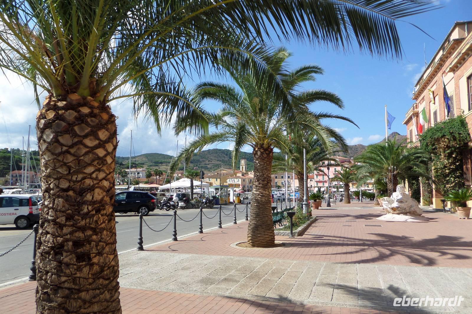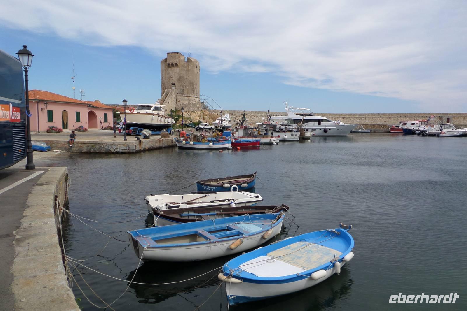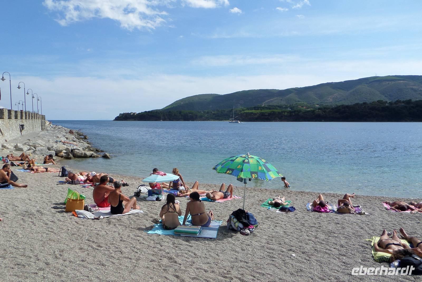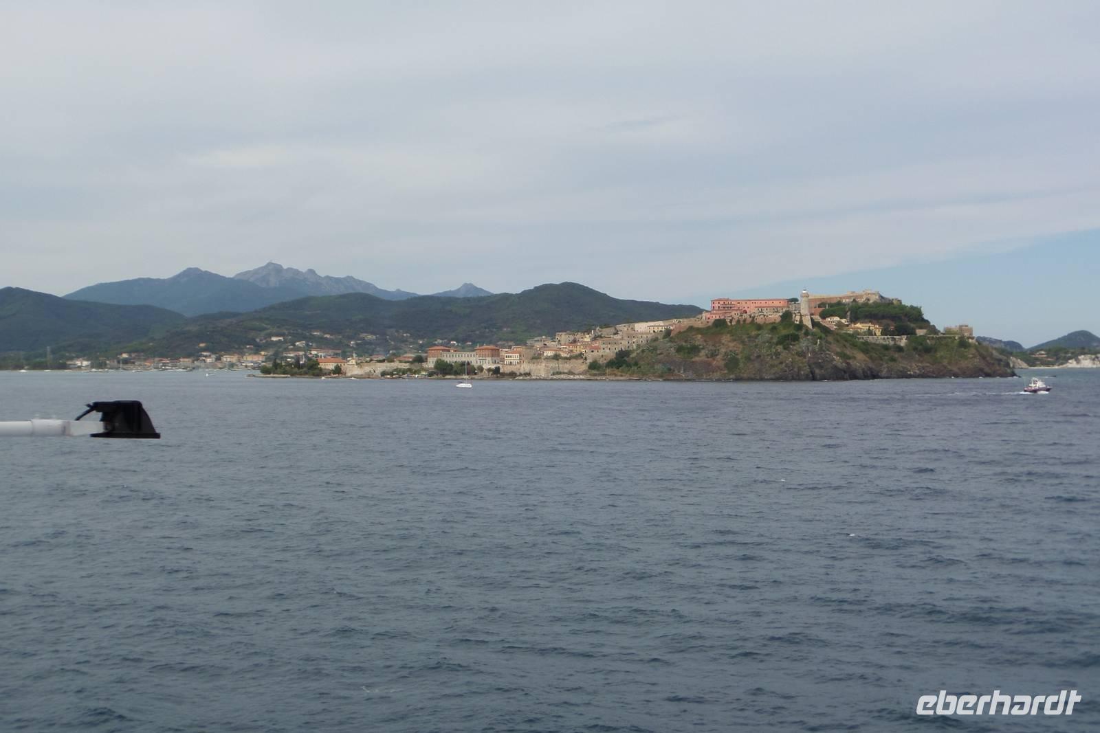 In mehr als einer Stunde sind wir am Fährhafen in Piombino. Eine weitere Stunde vergeht, ehe wir auf der Insel Elba, die zum Toskanischen Archipel gehört, die Fähre in Portoferraio verlassen. Führerin Irene zeigt uns die Insel von Ihrer schönsten Seite und gibt uns viele interessante Informationen über die Geschichte. Da montags das Napoleonmuseum ge-schlossen ist, führt Irene uns nach Marciana Marina, wo wir landestypische Weine verkosten können. In unserer Mittagspause in Marina de Campo nehmen wir nach dem Essen auch noch ein herrliches Bad  und kühlen uns ab.