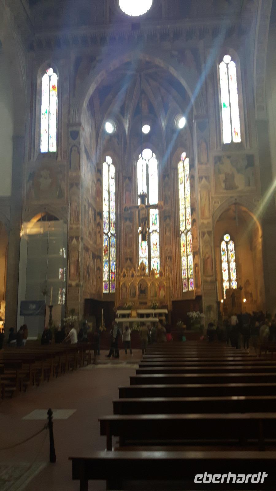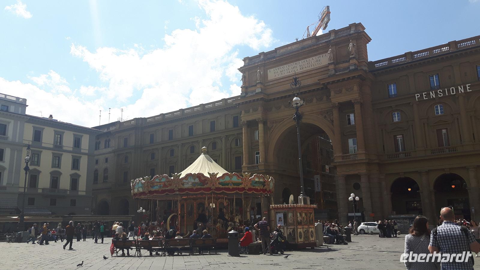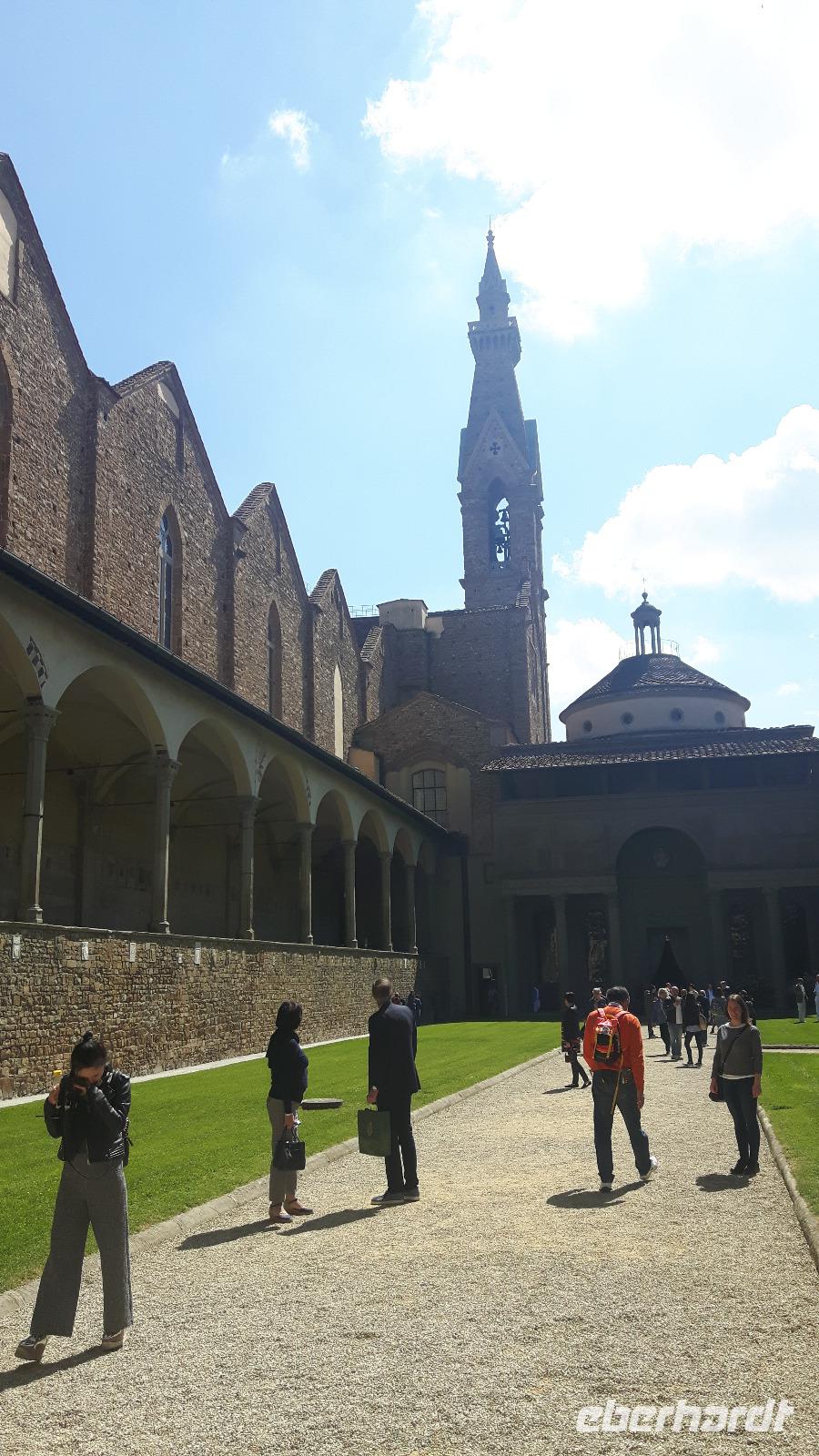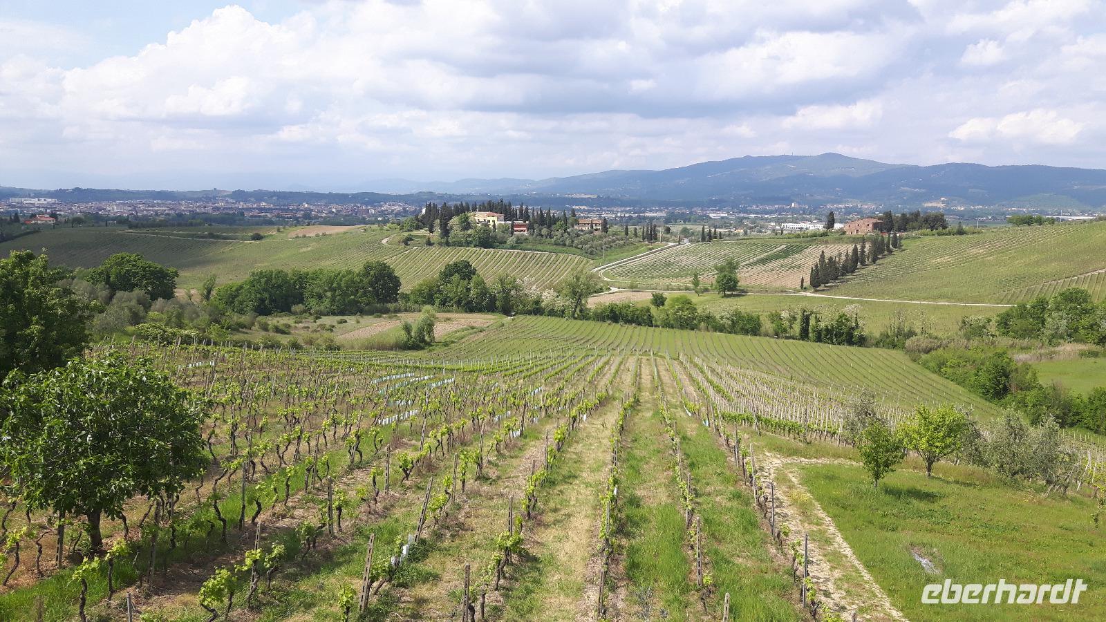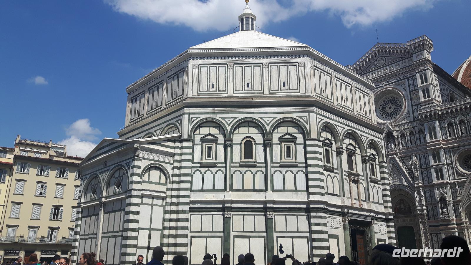 Für viele unserer Gäste stand heute ein großer Höhepunkt der Reise auf dem Tagesprogramm - es ging in die Hauptstadt der Toskana, nach Florenz. Unsere kompetente Stadtführerin Angela nahmen wir am zentralen Münzturm auf und zusammen fuhren wir direkt weiter hinauf zur Piazza Michelangelo. Hier erlebten wir einen imposanten Ausblick auf die wichtigsten Sehenswürdigkeiten der Stadt - wer sich einen ersten Überblick über Florenz schaffen möchte, sollte übrigens unbedingt hierher kommen! Am Torre della Zecca (Münzturm) stiegen wir schließlich aus dem Bus aus und von da an ging es zu Fuß weiter. Wir spazierten mit unserer netten Stadtführerin Angela zuerst zur Piazza Santa Croce, wo wir gemeinsam die Kirche Santa Croce (Kirche zum Heiligen Kreuz) besichtigten. Das gotische Kirchengebäude gehört zu den schönsten Gotteshäusern der Stadt und stammt aus dem 13. Jahrhundert. Neben ihrem sehenswerten Inneren ist sie vor allem wegen ihrer Grabmäler bekannt, unter anderem sahen wir das Grabmal von Michelangelo, Dante und Galilei und Machiavelli. Nach der ausführlichen Besichtigung flanierten wir bis zur Piazza della Signoria. Dieser wunderschöne Platz befindet sich im Zentrum der Altstadt und ist Mittelpunkt des florentinischen Stadtlebens. Weiter ging es vorbei an imposanten Plätzen und durch Straßen bzw. unzählige Gassen zur ältesten und berühmtesten Florentiner Arno-Brücke, der "Ponte Vecchio". Im Zweiten Weltkrieg wurde diese Brücke übrigens als einzige nicht gesprengt. Es gibt außerdem wohl weltweit kaum eine Brücke, die so überladen scheint wie die Ponte Vecchio. Früher befand sich an diesem Ort eine ganz einfache Holzbrücke, die jedoch immer wieder dem Hochwasser ausgesetzt war und einfach zu instabil wurde. Also baute man im 14. Jahrhundert die aktuelle Brücke, die den Fluss Arno überspannt und lediglich den Fußgängern ermöglicht, an das andere Ufer zu gelangen. Hier ist immer viel Trubel und wir schlenderten immer wieder vorbei an zahlreichen Juweliergeschäften, die immerhin an der Stelle von stinkenden Metzgereien eingerichtet worden. Eine Mittagspause legten wir an der Piazza della Repubblica ein, einem zentralen Platz, der erst im späten 19. Jahrhundert in seiner heutigen Größe anstelle des jüdischen Ghettos angelegt worden. Seine Bebauung entspricht den architektonischen Bestrebungen der Gründerzeit nach französischem Vorbild. Kulinarisch gestärkt spazierten wir zum Abschluss der Stadtführung zum Dom, den wir selbstverständlich auch von innen besichtigten. Der Dom Santa Maria del Fiore ist nach dem Petersdom in Rom und dem Mailänder Dom das drittgrößte Kirchenbauwerk Italiens und damit eines der größten Gotteshäuser der Welt. Er begeistert durch seine kunstvoll gestaltete Hauptfassade, die gigantische Kuppel, den Glockenturm und natürlich den hallenartigen Innenraum mit zahlreichen Kunstwerken. Der Innenraum wirkte im Vergleich zur Fassade auf uns allerdings eher sehr schlicht. Am Nachmittag hatten wir dann noch etwas Freizeit, um die Stadt individuell zu erkunden - Florenz ist eine faszinierende Stadt, für die man theoretisch einige Wochen benötigen würde! Aber zum Glück bietet Eberhardt TRAVEL auch Städtereisen nach Florenz an! Zurück in Montecatini Terme freuten wir uns heute auf ein Abendprogramm...! Wir spazierten nach dem Abendessen zur Funicolare-Talstation und dann ging es mit einer 1898 erbauten Standseilbahn nach Montecatini Alto hinauf. Dieses romantische kleine toskanische Bergdorf mit entzückenden kleinen Gassen liegt 260 Meter hoch und ist der alte Siedlungskern von Montecatini. Auf dem Hauptplatz machten es sich die meisten von uns bei einem oder auch zwei Gläschen Wein gemütlich und genossen einfach das abendliche Flair dieses bezaubernden kleinen Ortes!