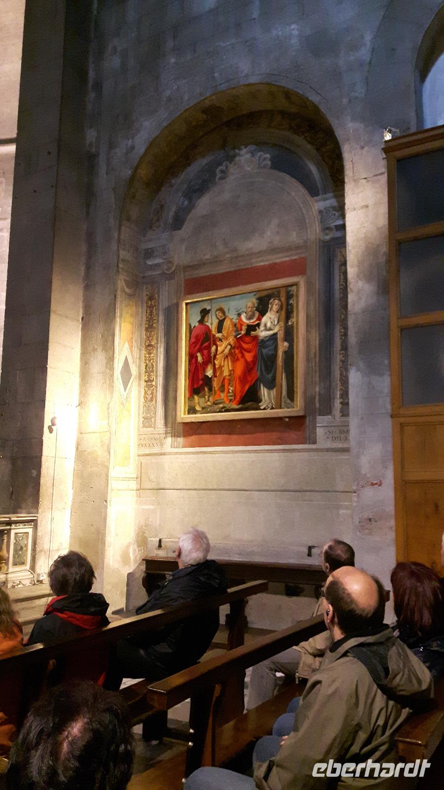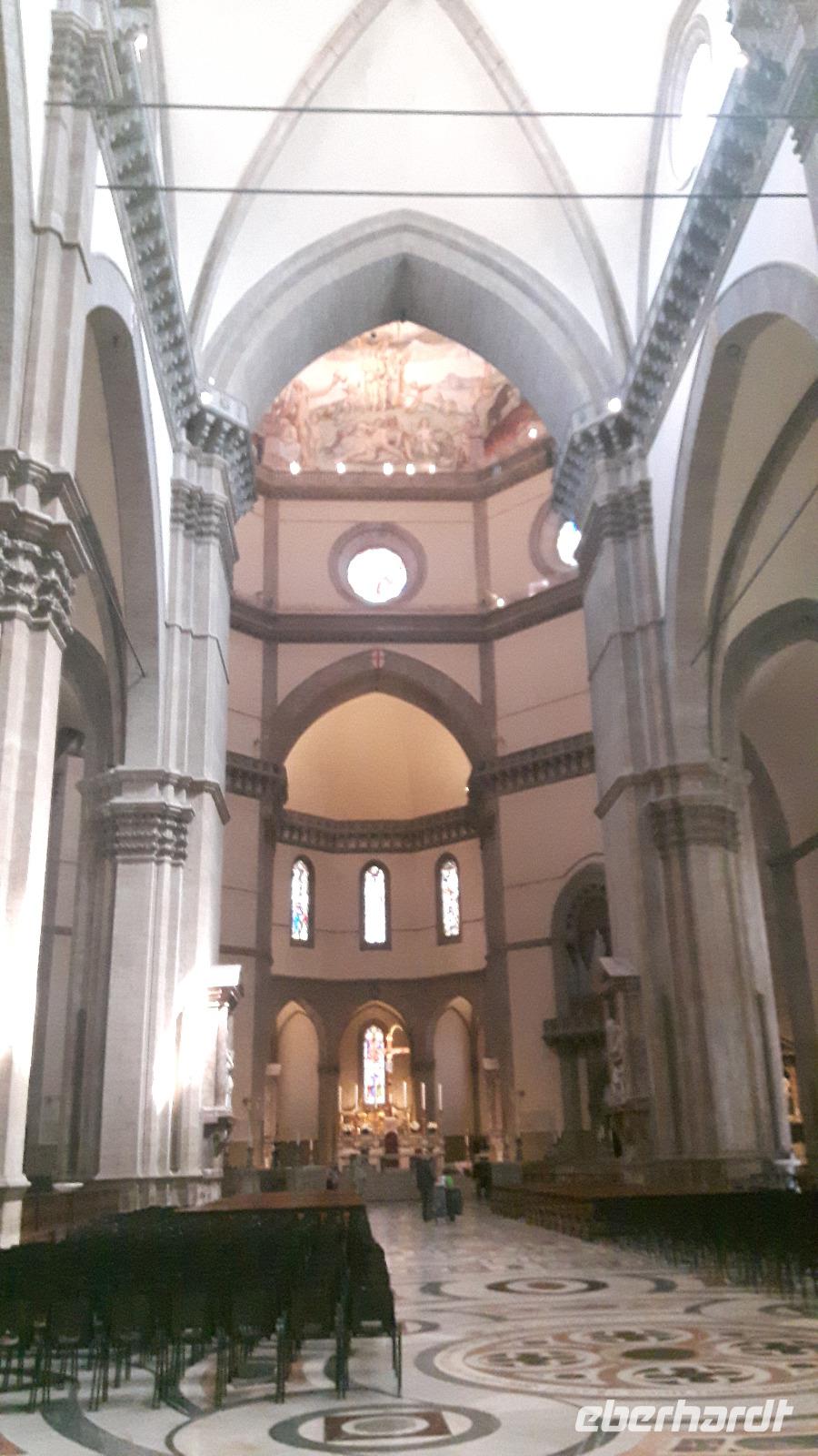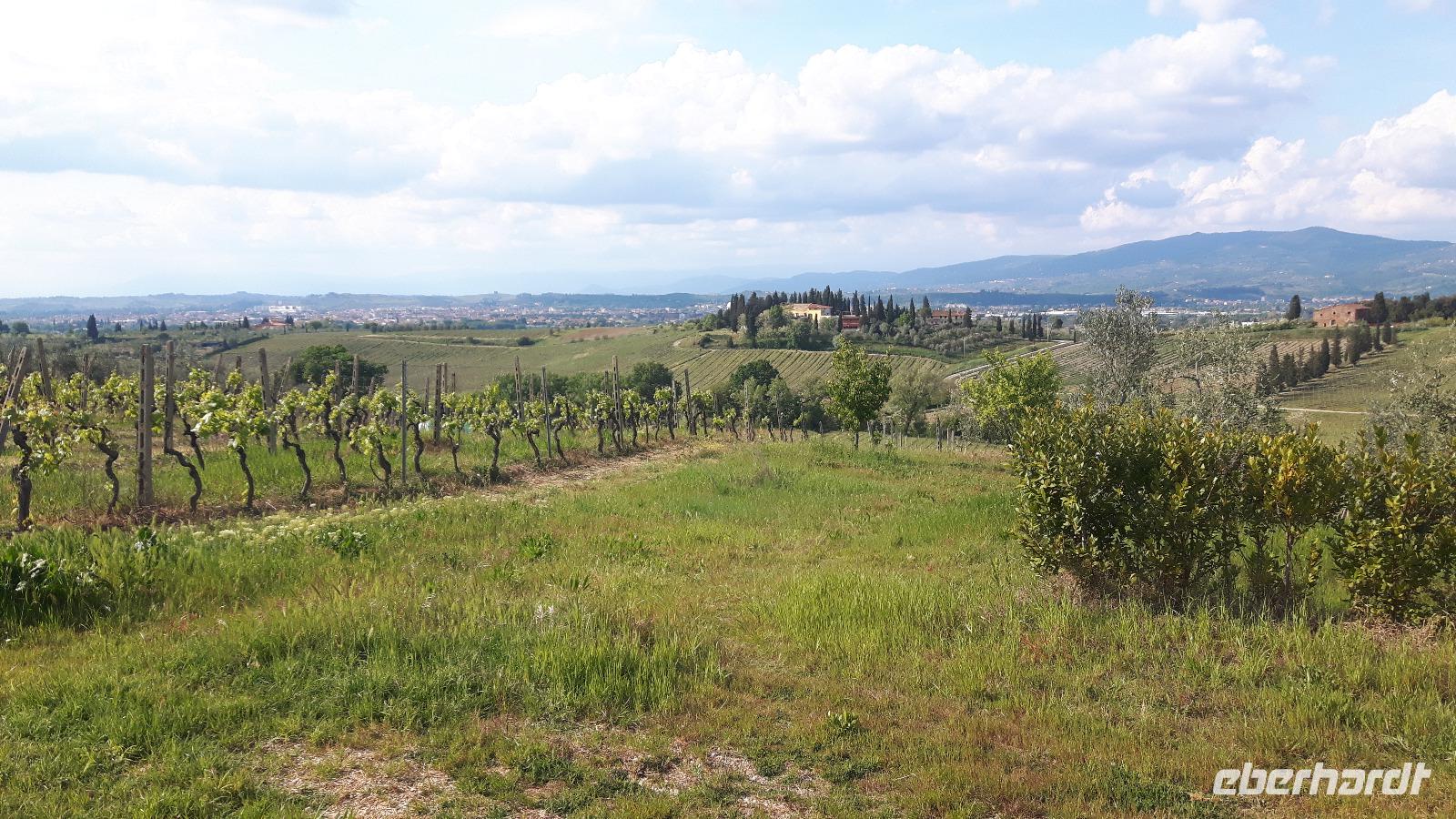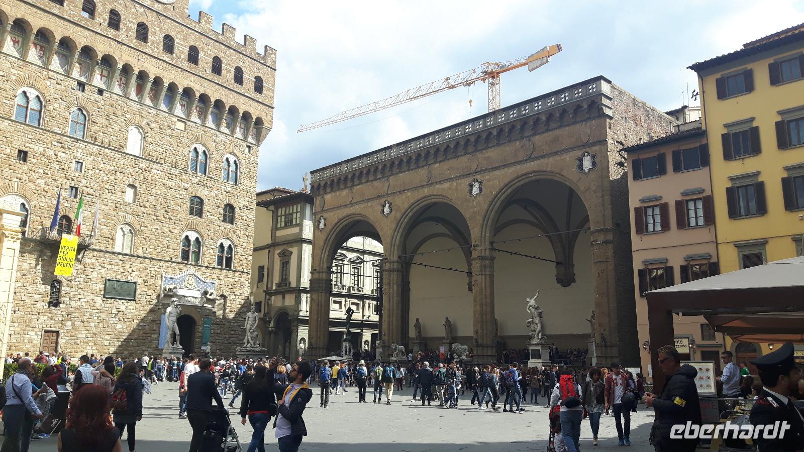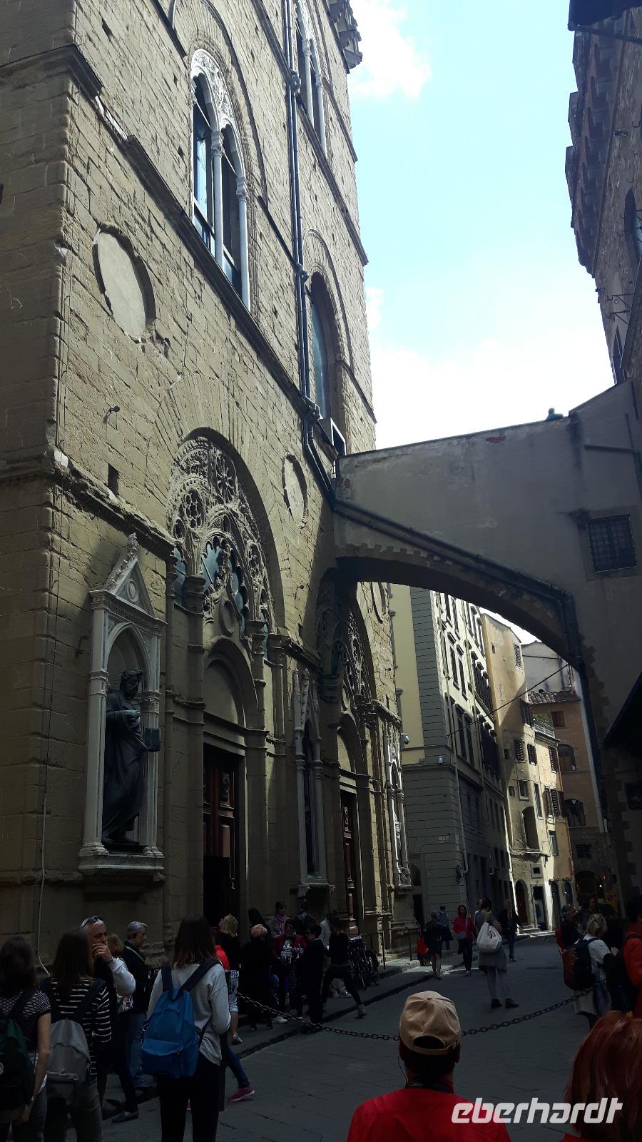 Für viele unserer Gäste stand heute ein großer Höhepunkt der Reise auf dem Tagesprogramm - es ging in die Hauptstadt der Toskana, nach Florenz. Unsere kompetente Stadtführerin Angela nahmen wir am zentralen Münzturm auf und zusammen fuhren wir direkt weiter hinauf zur Piazza Michelangelo. Hier erlebten wir einen imposanten Ausblick auf die wichtigsten Sehenswürdigkeiten der Stadt - wer sich einen ersten Überblick über Florenz schaffen möchte, sollte übrigens unbedingt hierher kommen! Am Torre della Zecca (Münzturm) stiegen wir schließlich aus dem Bus aus und von da an ging es zu Fuß weiter. Wir spazierten mit unserer netten Stadtführerin Angela zuerst zur Piazza Santa Croce, wo wir gemeinsam die Kirche Santa Croce (Kirche zum Heiligen Kreuz) besichtigten. Das gotische Kirchengebäude gehört zu den schönsten Gotteshäusern der Stadt und stammt aus dem 13. Jahrhundert. Neben ihrem sehenswerten Inneren ist sie vor allem wegen ihrer Grabmäler bekannt, unter anderem sahen wir das Grabmal von Michelangelo, Dante und Galilei und Machiavelli. Nach der ausführlichen Besichtigung flanierten wir bis zur Piazza della Signoria. Dieser wunderschöne Platz befindet sich im Zentrum der Altstadt und ist Mittelpunkt des florentinischen Stadtlebens. Weiter ging es vorbei an imposanten Plätzen und durch Straßen bzw. unzählige Gassen zur ältesten und berühmtesten Florentiner Arno-Brücke, der "Ponte Vecchio". Im Zweiten Weltkrieg wurde diese Brücke übrigens als einzige nicht gesprengt. Es gibt außerdem wohl weltweit kaum eine Brücke, die so überladen scheint wie die Ponte Vecchio. Früher befand sich an diesem Ort eine ganz einfache Holzbrücke, die jedoch immer wieder dem Hochwasser ausgesetzt war und einfach zu instabil wurde. Also baute man im 14. Jahrhundert die aktuelle Brücke, die den Fluss Arno überspannt und lediglich den Fußgängern ermöglicht, an das andere Ufer zu gelangen. Hier ist immer viel Trubel und wir schlenderten immer wieder vorbei an zahlreichen Juweliergeschäften, die immerhin an der Stelle von stinkenden Metzgereien eingerichtet worden. Eine Mittagspause legten wir an der Piazza della Repubblica ein, einem zentralen Platz, der erst im späten 19. Jahrhundert in seiner heutigen Größe anstelle des jüdischen Ghettos angelegt worden. Seine Bebauung entspricht den architektonischen Bestrebungen der Gründerzeit nach französischem Vorbild. Kulinarisch gestärkt spazierten wir zum Abschluss der Stadtführung zum Dom, den wir selbstverständlich auch von innen besichtigten. Der Dom Santa Maria del Fiore ist nach dem Petersdom in Rom und dem Mailänder Dom das drittgrößte Kirchenbauwerk Italiens und damit eines der größten Gotteshäuser der Welt. Er begeistert durch seine kunstvoll gestaltete Hauptfassade, die gigantische Kuppel, den Glockenturm und natürlich den hallenartigen Innenraum mit zahlreichen Kunstwerken. Der Innenraum wirkte im Vergleich zur Fassade auf uns allerdings eher sehr schlicht. Am Nachmittag hatten wir dann noch etwas Freizeit, um die Stadt individuell zu erkunden - Florenz ist eine faszinierende Stadt, für die man theoretisch einige Wochen benötigen würde! Aber zum Glück bietet Eberhardt TRAVEL auch Städtereisen nach Florenz an! Zurück in Montecatini Terme freuten wir uns heute auf ein Abendprogramm...! Wir spazierten nach dem Abendessen zur Funicolare-Talstation und dann ging es mit einer 1898 erbauten Standseilbahn nach Montecatini Alto hinauf. Dieses romantische kleine toskanische Bergdorf mit entzückenden kleinen Gassen liegt 260 Meter hoch und ist der alte Siedlungskern von Montecatini. Auf dem Hauptplatz machten es sich die meisten von uns bei einem oder auch zwei Gläschen Wein gemütlich und genossen einfach das abendliche Flair dieses bezaubernden kleinen Ortes!