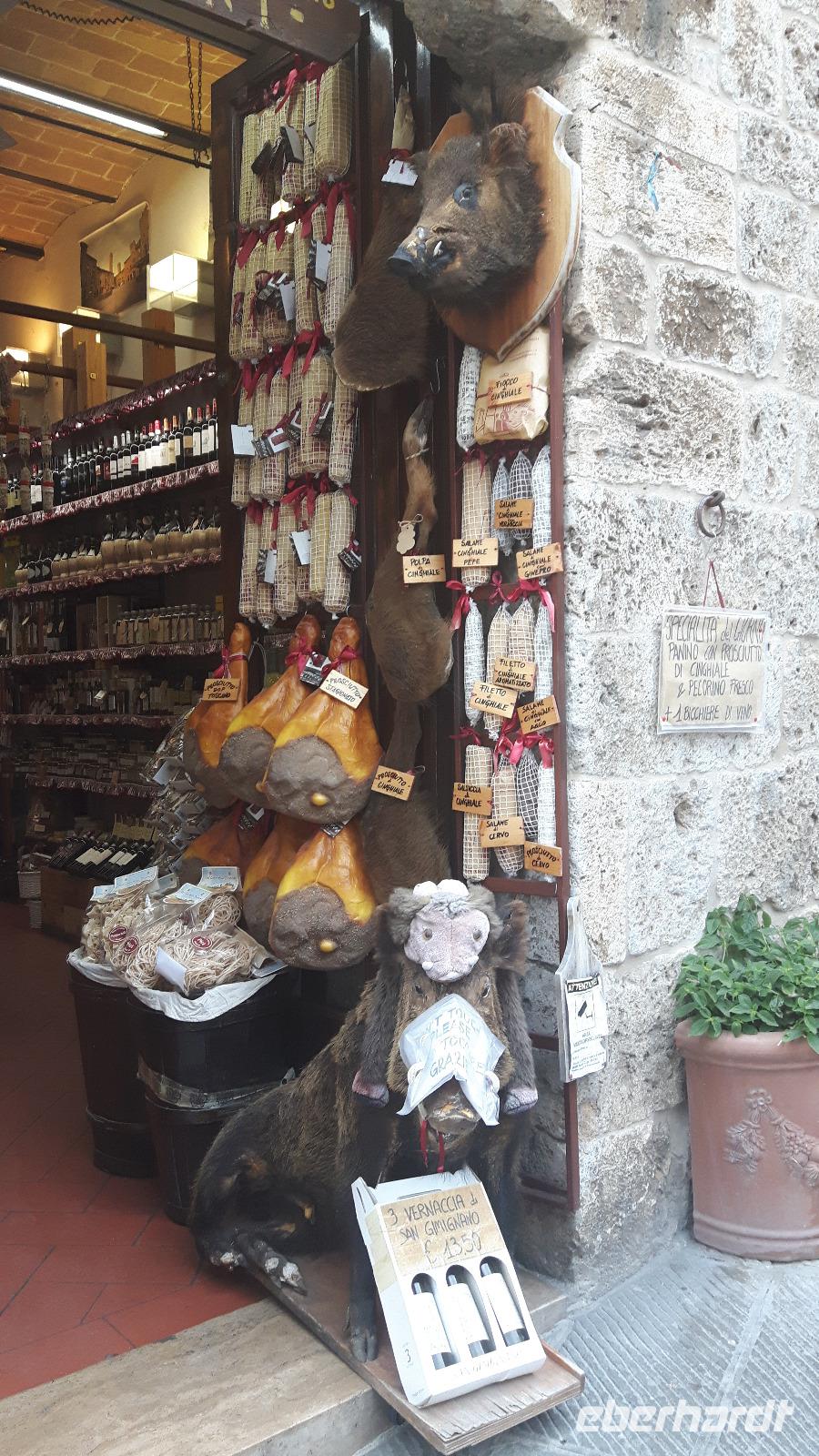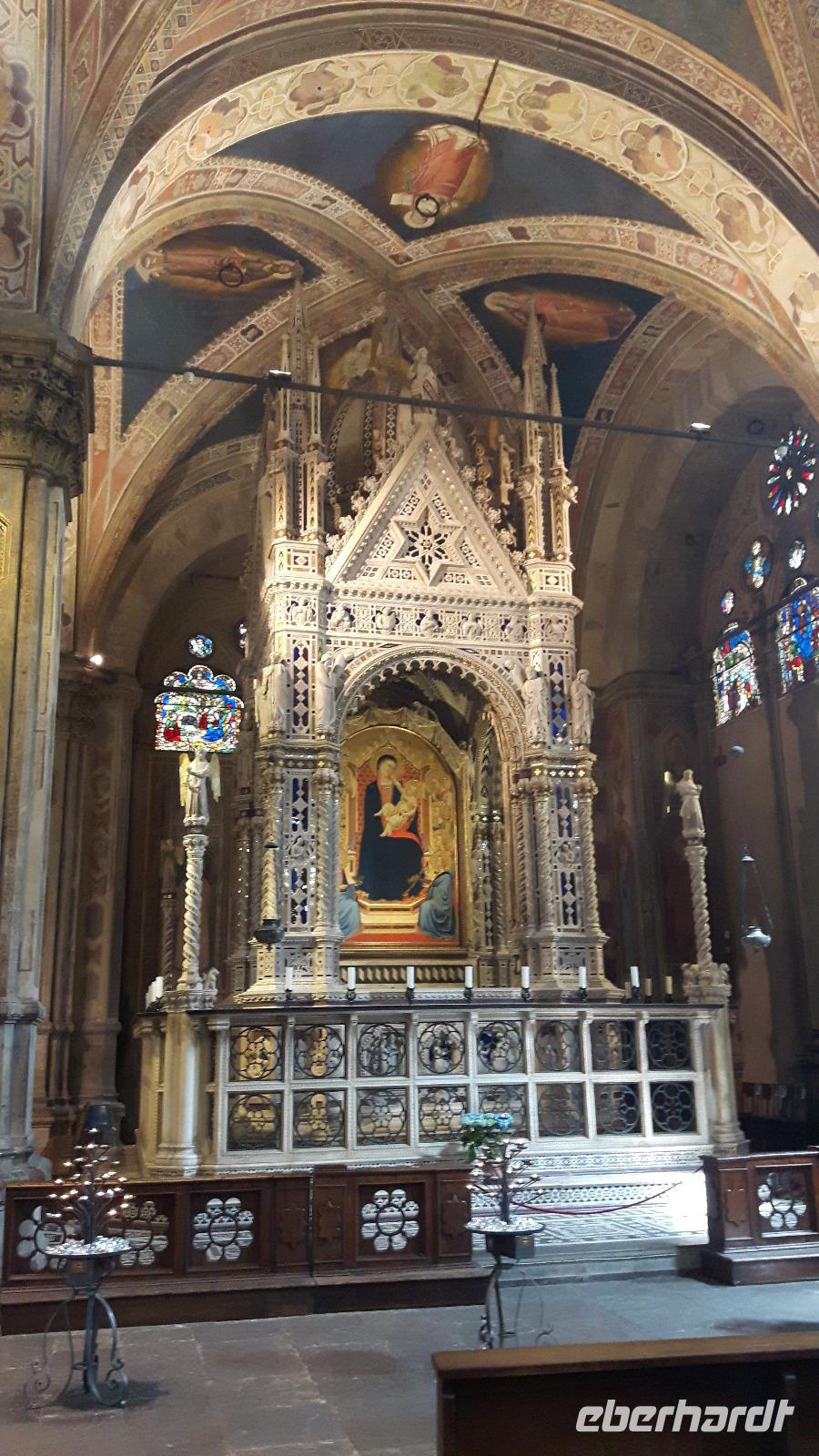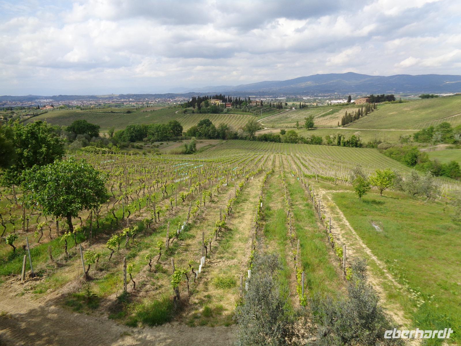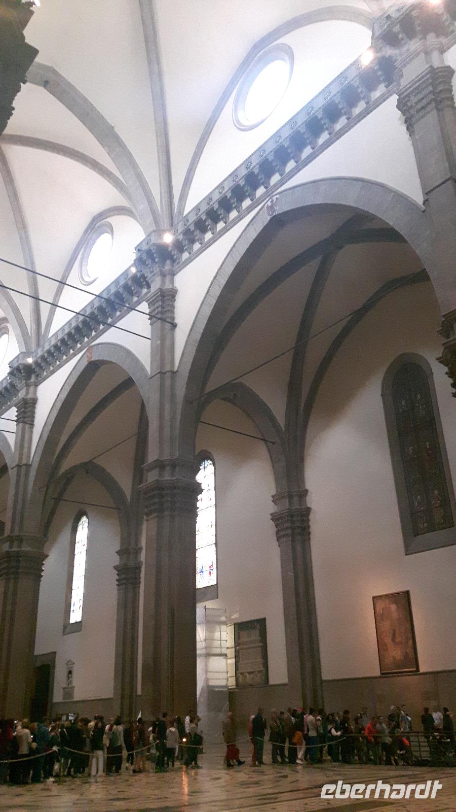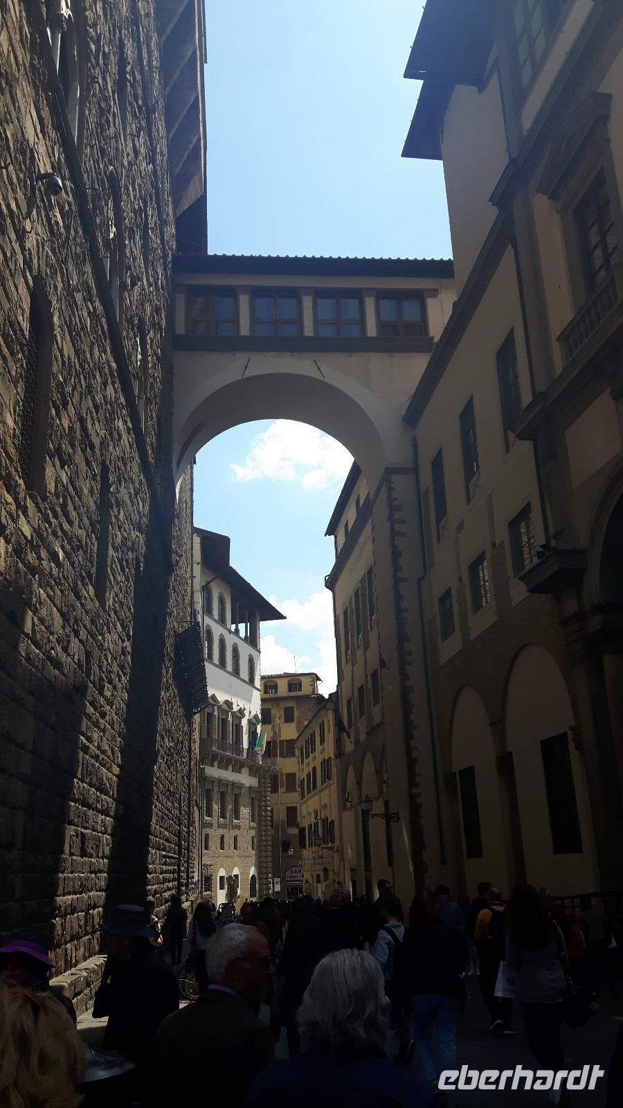 Für viele unserer Gäste stand heute ein großer Höhepunkt der Reise auf dem Tagesprogramm - es ging in die Hauptstadt der Toskana, nach Florenz. Unsere kompetente Stadtführerin Angela nahmen wir am zentralen Münzturm auf und zusammen fuhren wir direkt weiter hinauf zur Piazza Michelangelo. Hier erlebten wir einen imposanten Ausblick auf die wichtigsten Sehenswürdigkeiten der Stadt - wer sich einen ersten Überblick über Florenz schaffen möchte, sollte übrigens unbedingt hierher kommen! Am Torre della Zecca (Münzturm) stiegen wir schließlich aus dem Bus aus und von da an ging es zu Fuß weiter. Wir spazierten mit unserer netten Stadtführerin Angela zuerst zur Piazza Santa Croce, wo wir gemeinsam die Kirche Santa Croce (Kirche zum Heiligen Kreuz) besichtigten. Das gotische Kirchengebäude gehört zu den schönsten Gotteshäusern der Stadt und stammt aus dem 13. Jahrhundert. Neben ihrem sehenswerten Inneren ist sie vor allem wegen ihrer Grabmäler bekannt, unter anderem sahen wir das Grabmal von Michelangelo, Dante und Galilei und Machiavelli. Nach der ausführlichen Besichtigung flanierten wir bis zur Piazza della Signoria. Dieser wunderschöne Platz befindet sich im Zentrum der Altstadt und ist Mittelpunkt des florentinischen Stadtlebens. Weiter ging es vorbei an imposanten Plätzen und durch Straßen bzw. unzählige Gassen zur ältesten und berühmtesten Florentiner Arno-Brücke, der "Ponte Vecchio". Im Zweiten Weltkrieg wurde diese Brücke übrigens als einzige nicht gesprengt. Es gibt außerdem wohl weltweit kaum eine Brücke, die so überladen scheint wie die Ponte Vecchio. Früher befand sich an diesem Ort eine ganz einfache Holzbrücke, die jedoch immer wieder dem Hochwasser ausgesetzt war und einfach zu instabil wurde. Also baute man im 14. Jahrhundert die aktuelle Brücke, die den Fluss Arno überspannt und lediglich den Fußgängern ermöglicht, an das andere Ufer zu gelangen. Hier ist immer viel Trubel und wir schlenderten immer wieder vorbei an zahlreichen Juweliergeschäften, die immerhin an der Stelle von stinkenden Metzgereien eingerichtet worden. Eine Mittagspause legten wir an der Piazza della Repubblica ein, einem zentralen Platz, der erst im späten 19. Jahrhundert in seiner heutigen Größe anstelle des jüdischen Ghettos angelegt worden. Seine Bebauung entspricht den architektonischen Bestrebungen der Gründerzeit nach französischem Vorbild. Kulinarisch gestärkt spazierten wir zum Abschluss der Stadtführung zum Dom, den wir selbstverständlich auch von innen besichtigten. Der Dom Santa Maria del Fiore ist nach dem Petersdom in Rom und dem Mailänder Dom das drittgrößte Kirchenbauwerk Italiens und damit eines der größten Gotteshäuser der Welt. Er begeistert durch seine kunstvoll gestaltete Hauptfassade, die gigantische Kuppel, den Glockenturm und natürlich den hallenartigen Innenraum mit zahlreichen Kunstwerken. Der Innenraum wirkte im Vergleich zur Fassade auf uns allerdings eher sehr schlicht. Am Nachmittag hatten wir dann noch etwas Freizeit, um die Stadt individuell zu erkunden - Florenz ist eine faszinierende Stadt, für die man theoretisch einige Wochen benötigen würde! Aber zum Glück bietet Eberhardt TRAVEL auch Städtereisen nach Florenz an! Zurück in Montecatini Terme freuten wir uns heute auf ein Abendprogramm...! Wir spazierten nach dem Abendessen zur Funicolare-Talstation und dann ging es mit einer 1898 erbauten Standseilbahn nach Montecatini Alto hinauf. Dieses romantische kleine toskanische Bergdorf mit entzückenden kleinen Gassen liegt 260 Meter hoch und ist der alte Siedlungskern von Montecatini. Auf dem Hauptplatz machten es sich die meisten von uns bei einem oder auch zwei Gläschen Wein gemütlich und genossen einfach das abendliche Flair dieses bezaubernden kleinen Ortes!