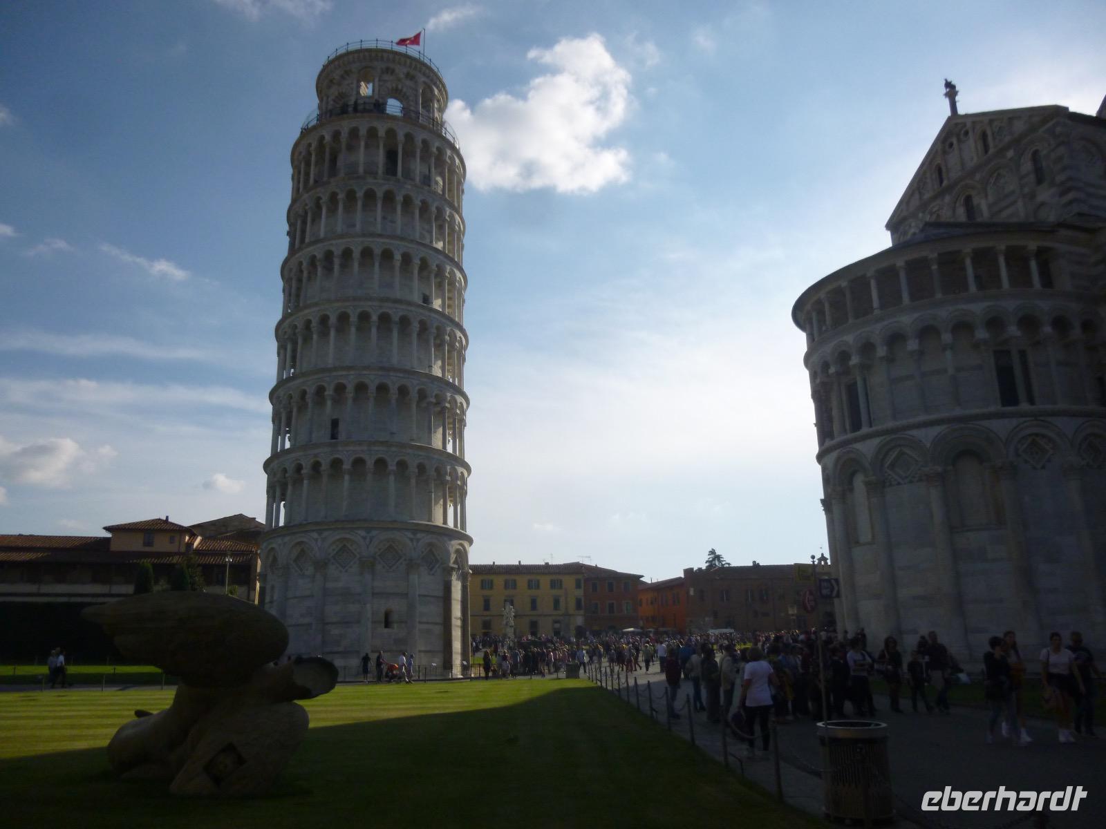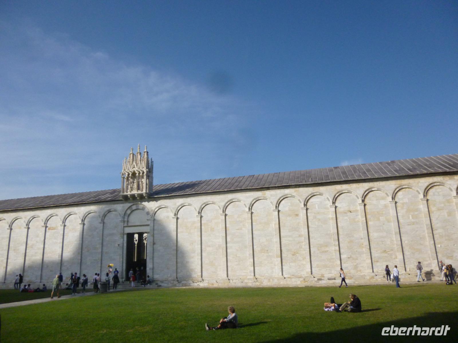 Im Mittelalter gehörte Pisa neben Genua, Amalfi und Venedig zu den vier Seerepubliken Italiens. Von den Reichtum kündet heute noch der Platz der Wunder mit seinem Dom, Baptisterium, dem Friedhof und natürlich dem berühmten schiefen Turm - alles aus teurem Carraramarmor. Pisa konnte es sich leisten, durch Kreuzzüge und Orienthandel reich geworden.