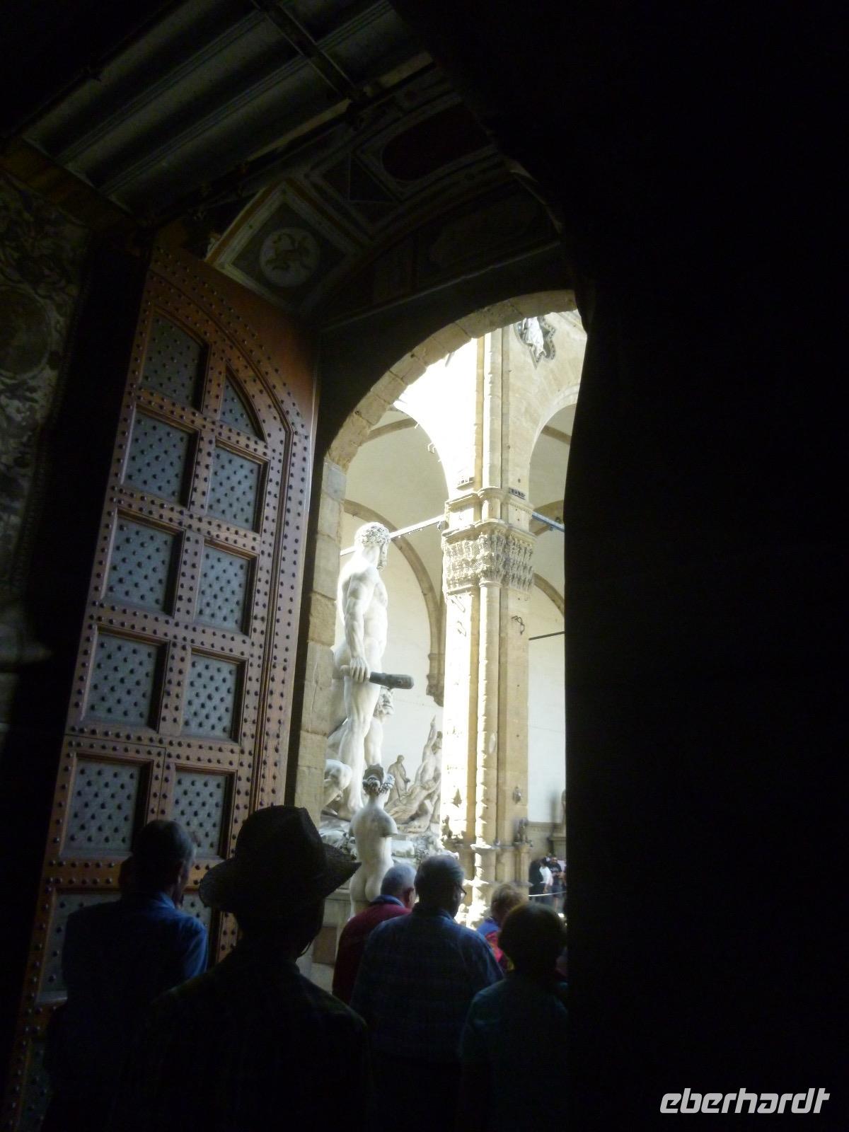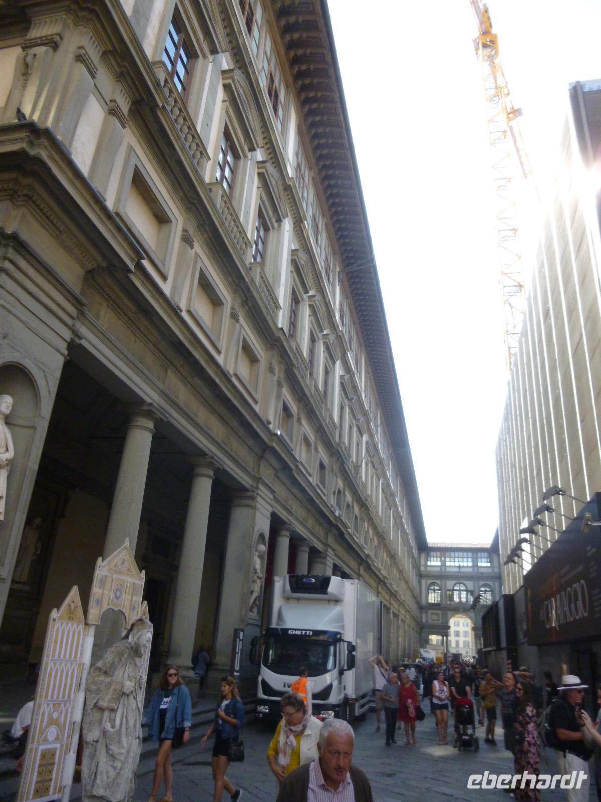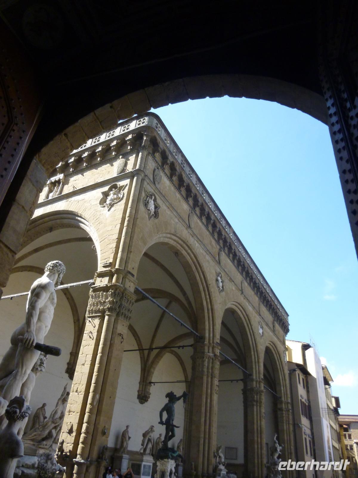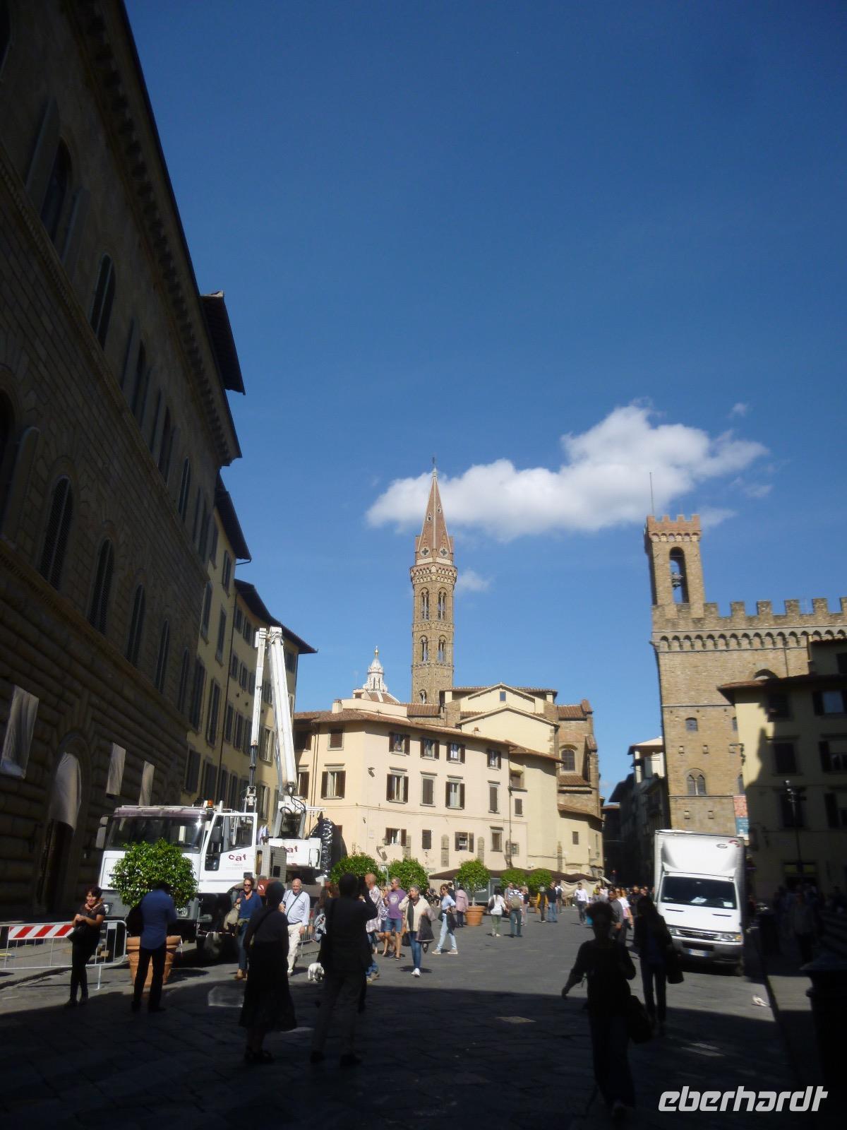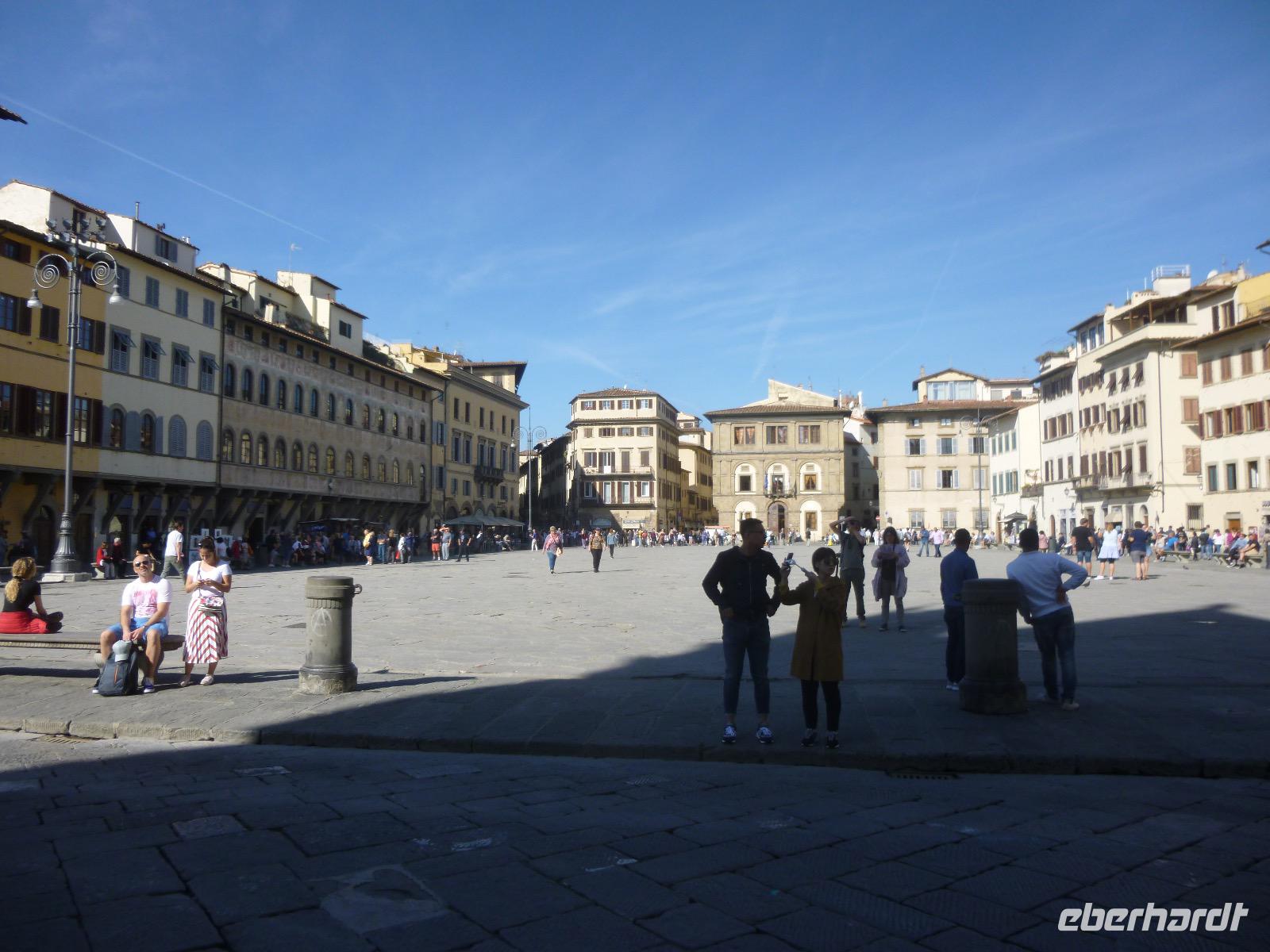 Die autofreie Piazza delle Signoria mit dem Palazzo Vecchio und die Loggia dei Lanzi ist einer der berühmtesten Plätze Italiens mit viel Ausstrahlung trotz der Menschenfülle. Hier nahmen wir unsere Mittagspause und probierten auch das (teure) Eis.