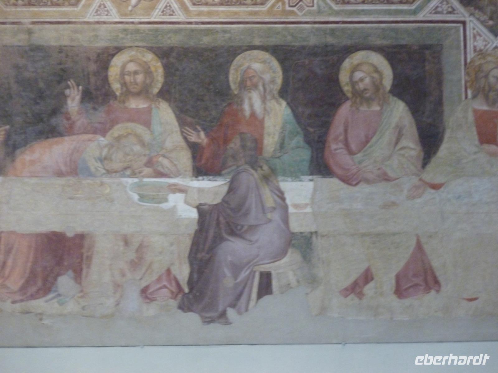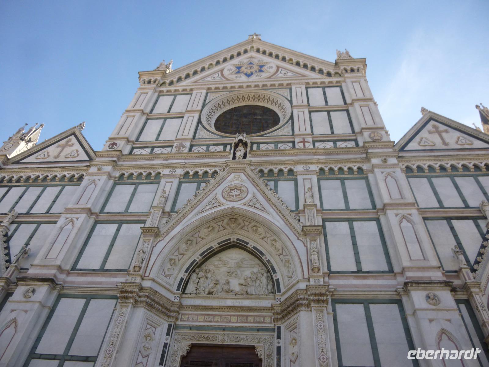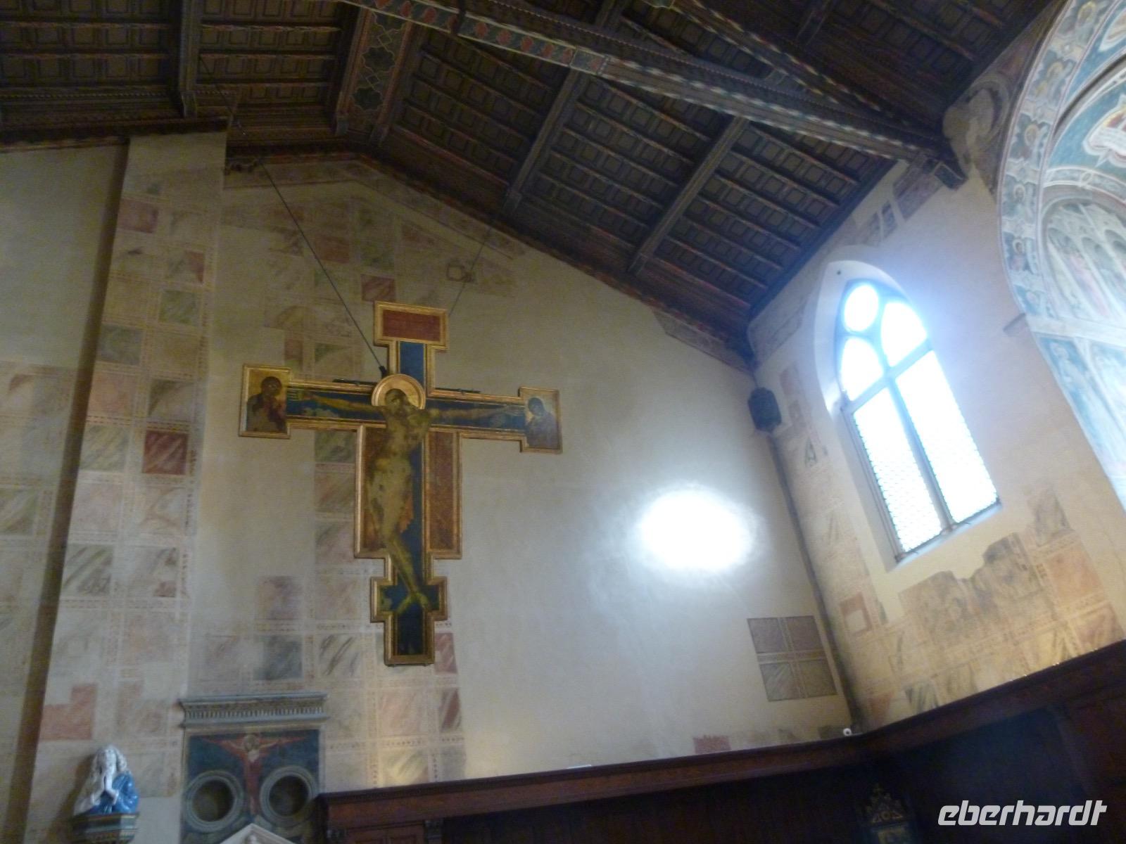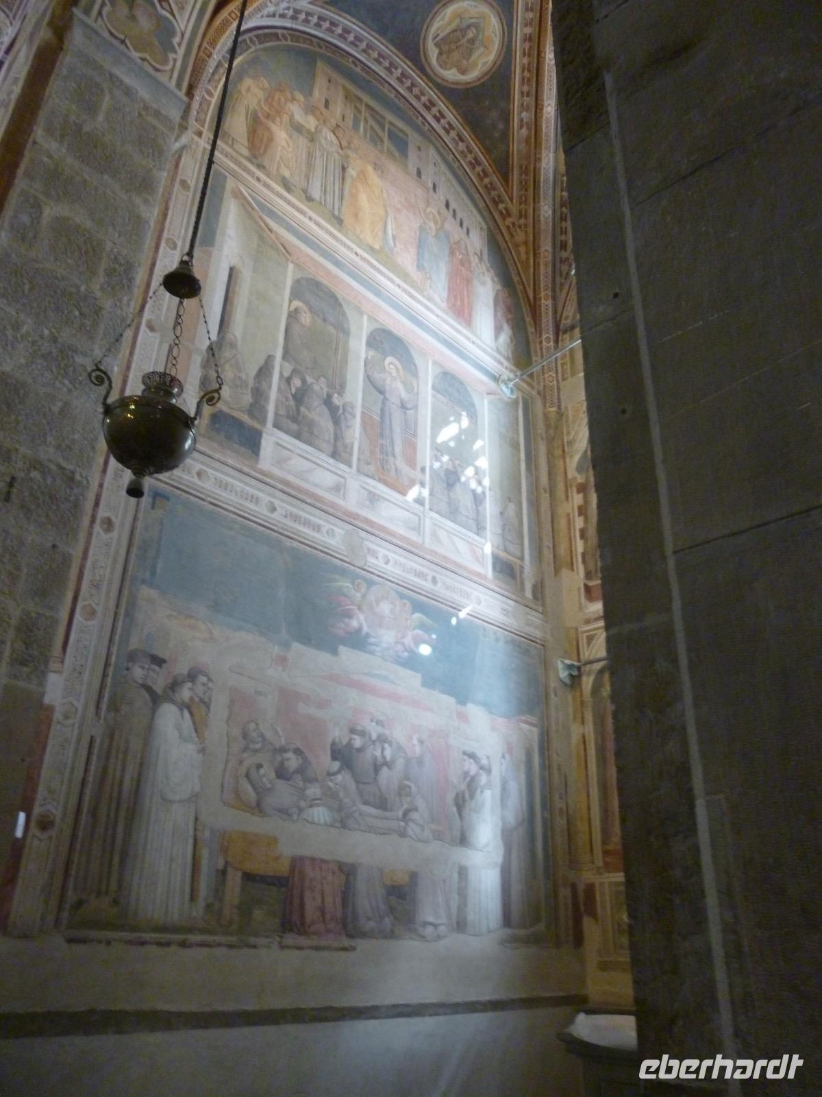 Neben der Stadt, die den Dombau finanzierte, waren Ordensgemeinschaften die fleißigen Kirchenbauer. Dazu gehört die von den Franziskanern erbaute Santa Croce mit Grabmälern der berühmtesten Bürger der Stadt. Zu den schönsten Kapellen gehört die von Giotto ausgemalte Peruzzikapelle (deren Birnenwappen entdeckten wir auf dem Boden).