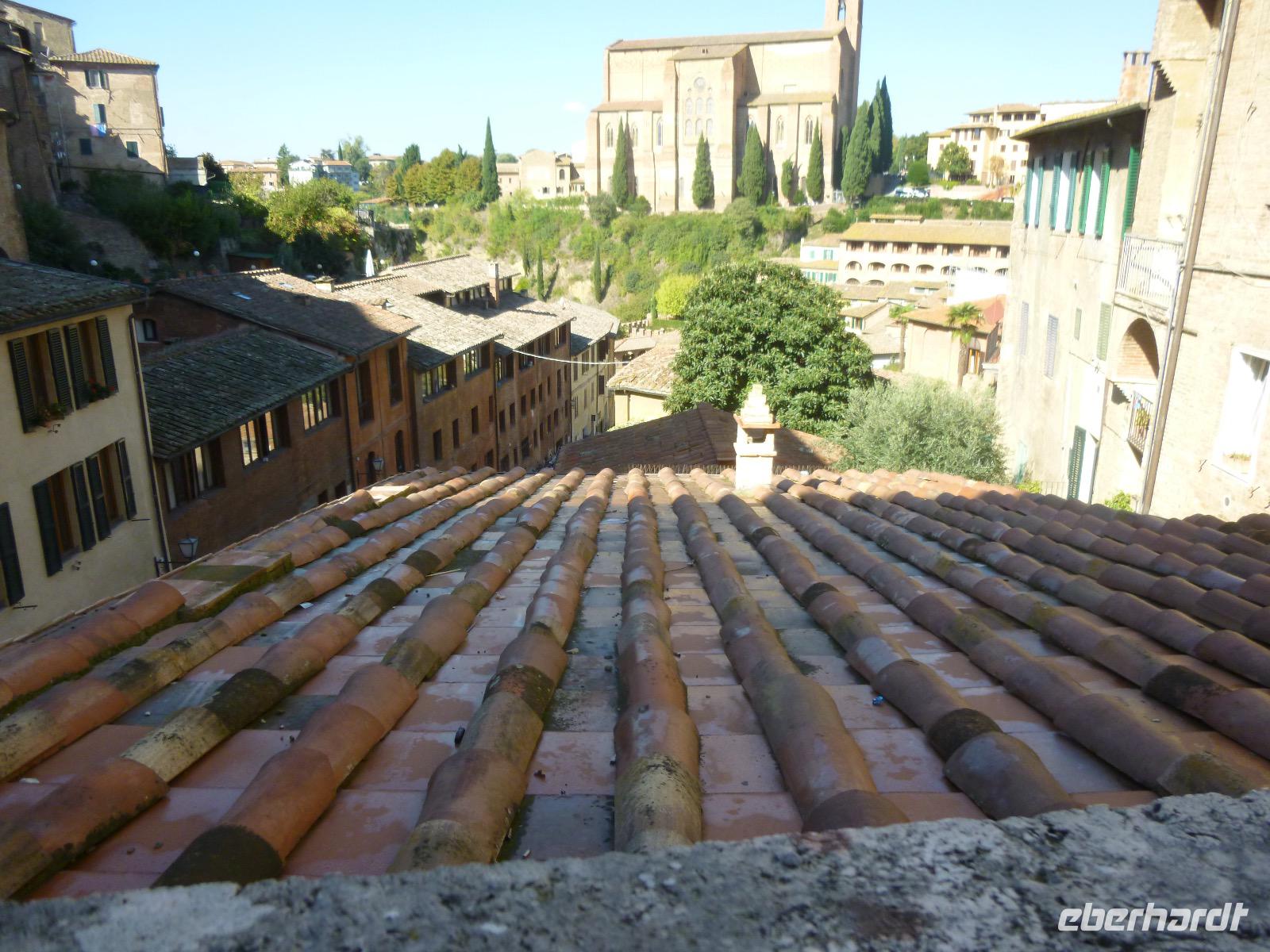 Heute lebt Siena vom Bankwesen und Tourismus, es ist autofrei und entfaltet sein mittelalterliches Flair. Von der Medici-Festung spazierten wir zur Domenicokirche mit der Kopfreliquie der heiligen Katharina von Siena, deren Geburtshaus in Siena auch zu besichtigen ist. Dann liefen wir weiter durch die hügelige Altstadt zum Domplatz, dem höchsten Punkt der Stadt.