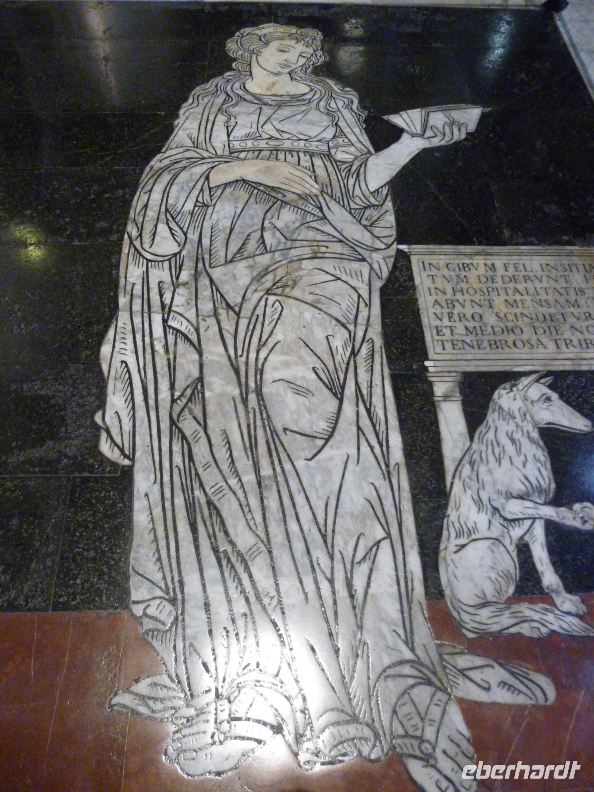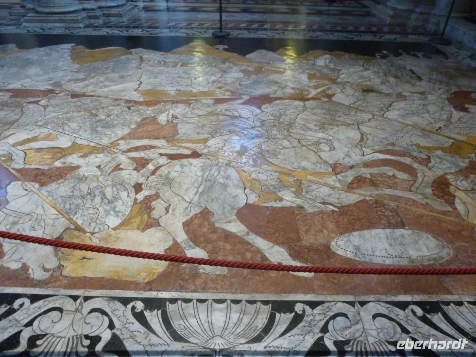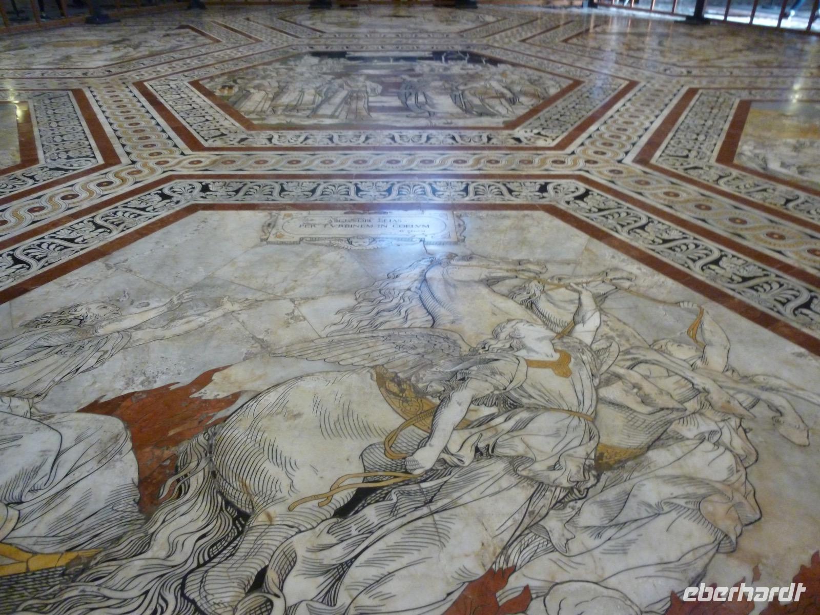 Der Dom verschlug uns zunächst den Atem in seiner gestreiften Marmorpracht und er birgt innen neben kostbaren Fußbodenmosaiken bedeutende Kunstwerke Michelangelos, Donatellos und Berninis. Wir nahmen uns ausführlich Zeit mit Luise, alles zu betrachten und dann traten wir wieder in das uns blendende helle Sonnenlicht.