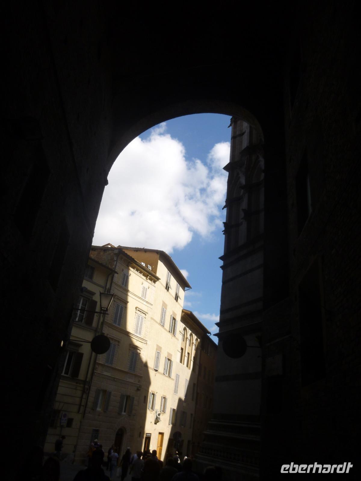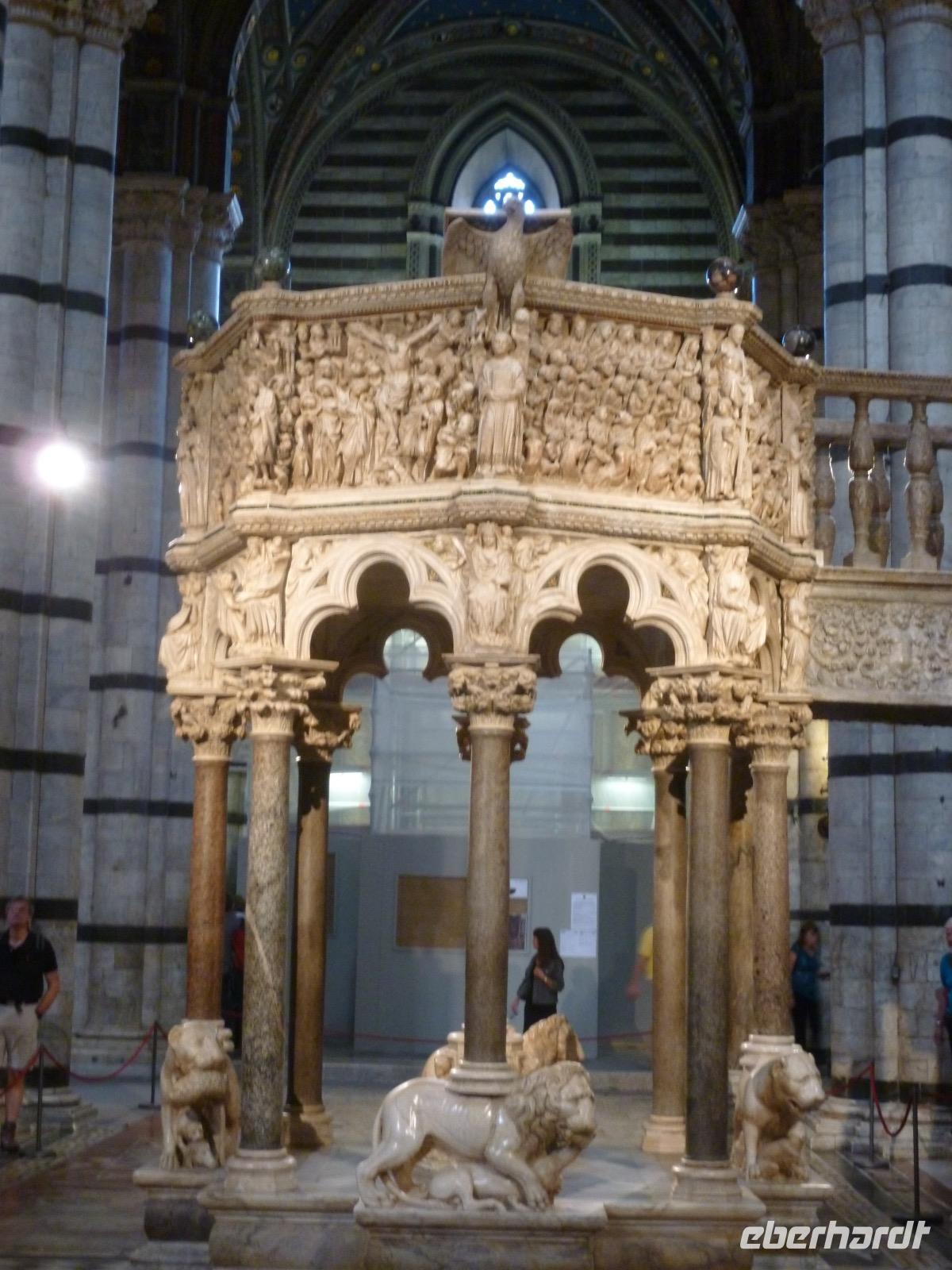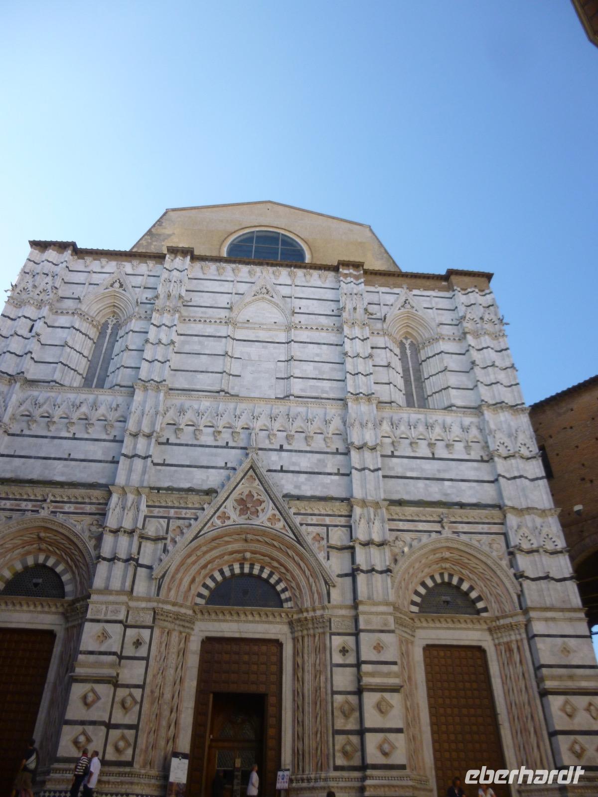 Der Dom verschlug uns zunächst den Atem in seiner gestreiften Marmorpracht und er birgt innen neben kostbaren Fußbodenmosaiken bedeutende Kunstwerke Michelangelos, Donatellos und Berninis. Wir nahmen uns ausführlich Zeit mit Luise, alles zu betrachten und dann traten wir wieder in das uns blendende helle Sonnenlicht.