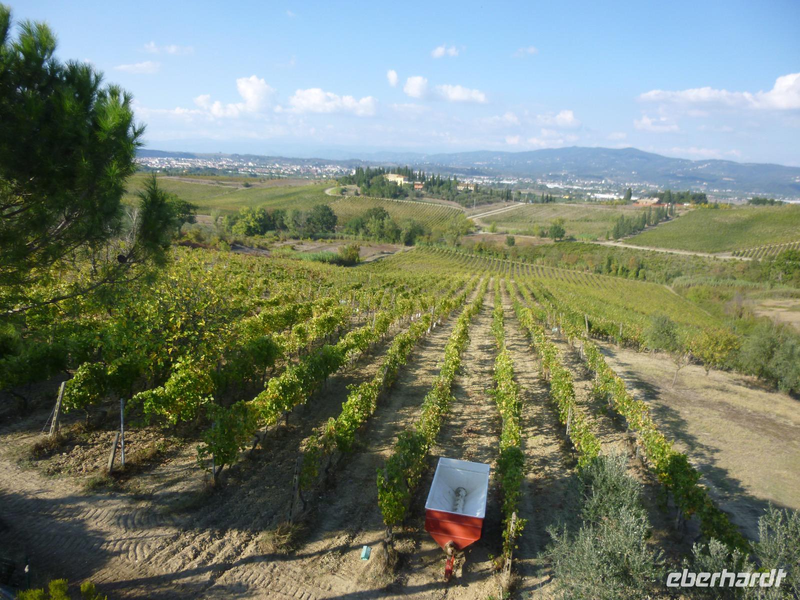 Darauf hatten wir uns besonders gefreut: nun schauten wir von der Terrasse in das hügelige Wein- und Olivenland der Carteghinis und ließen und die Weine, die Wurst und den Käse mit dem salzlosen toskanischen Brot und Olivenöl gut schmecken. Ein wunderbarer Moment, bevor wir wieder zum Hotel aufbrachen.