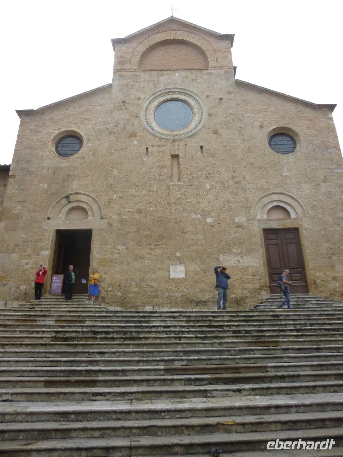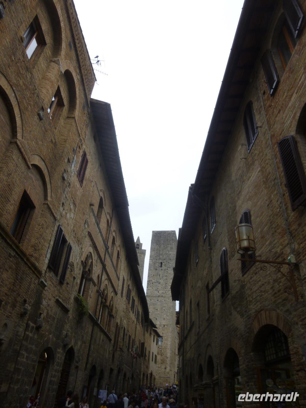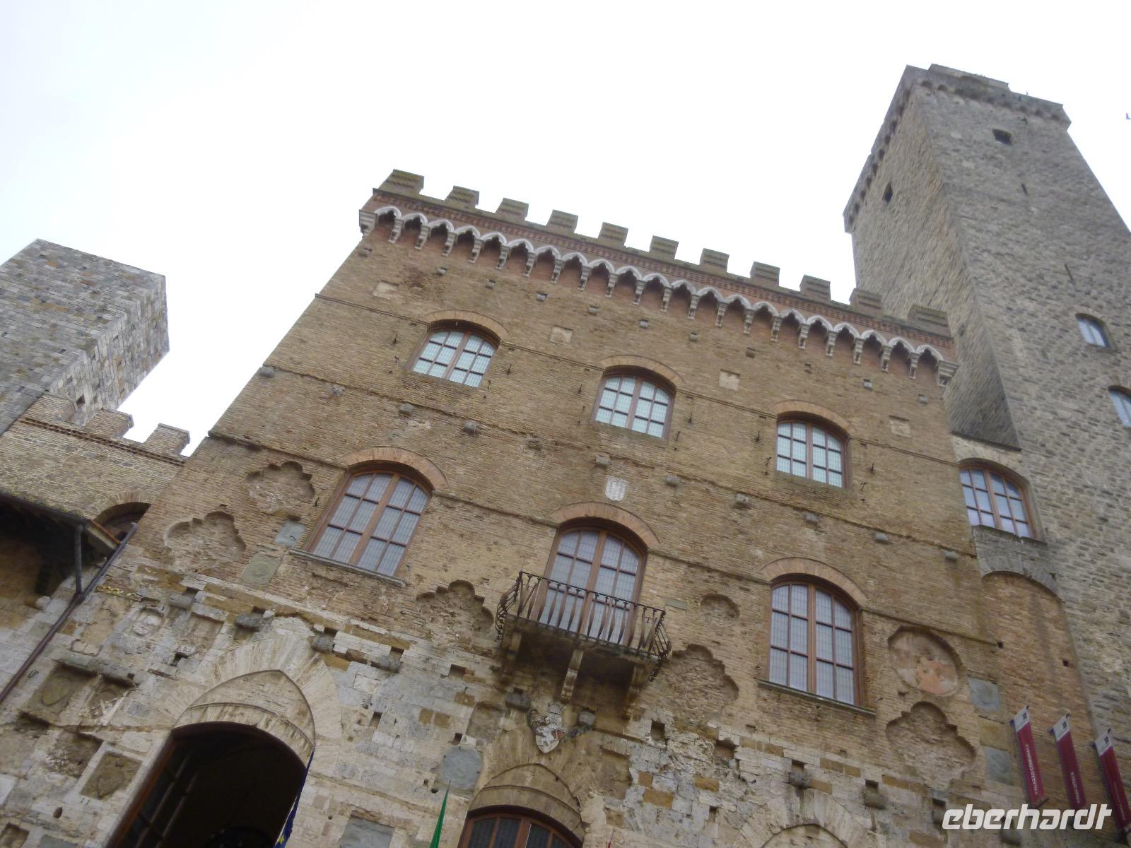 San Gimignano liegt zwischen Siena und Florenz und wurde in der Blütezeit von 72 Türmen überragt: ein Wettkampf um Macht und Geld. Heute stehen noch 14 Türme, von der UNESCO zum Weltkulturerbe erklärt. Den örtlichen Dom unterhalb der florentinischen Montespertoli-Festung erbaute man ab dem 11. Jahrhundert. Er birgt einen Fresken-Bilderbogen u.a. mit Szenen aus dem Leben der heiligen Fina. Auch die Fresken am Rathaus (Stadtmuseum) sind interessant, der 54m-Turm lässt sich besteigen.