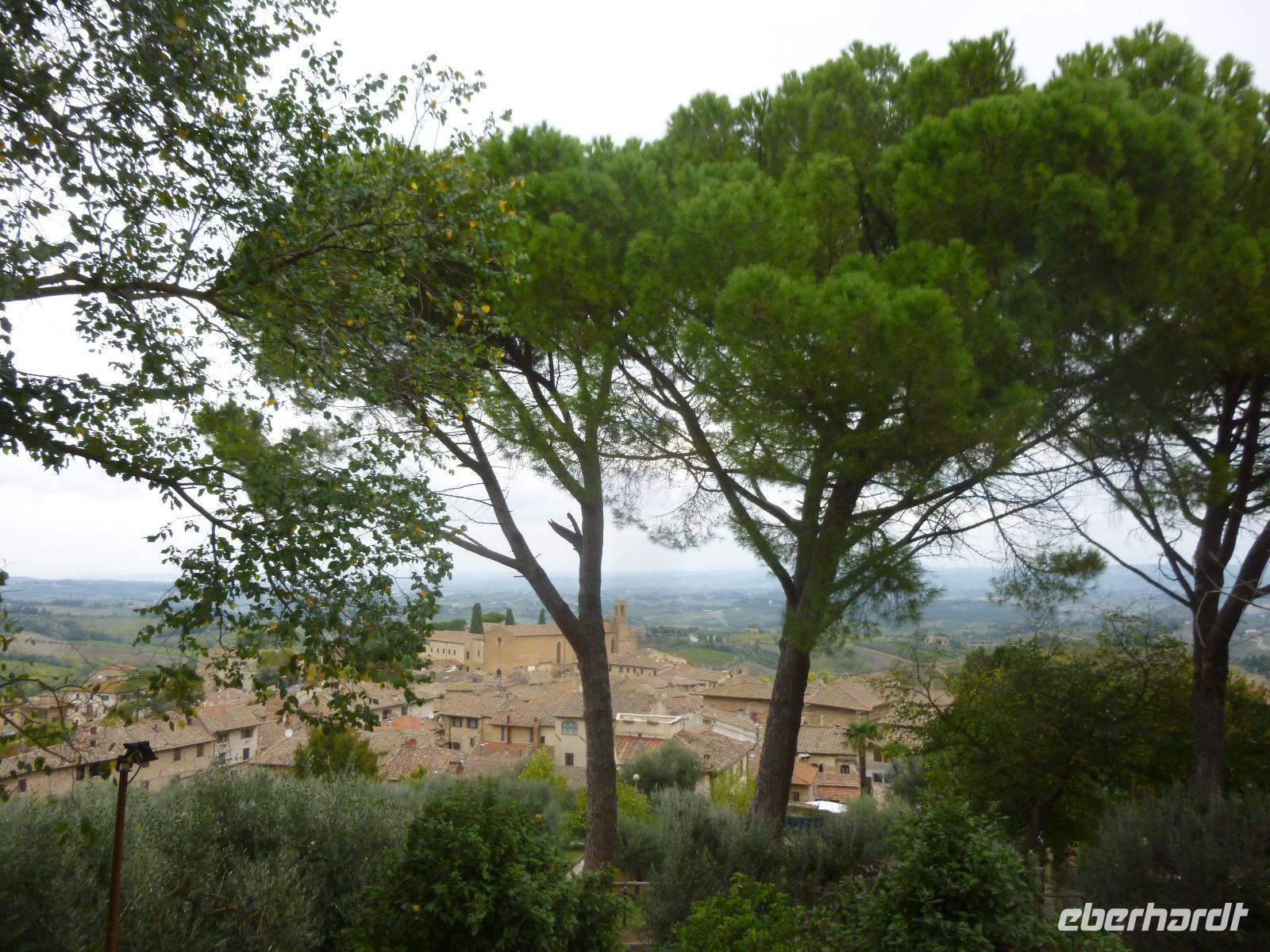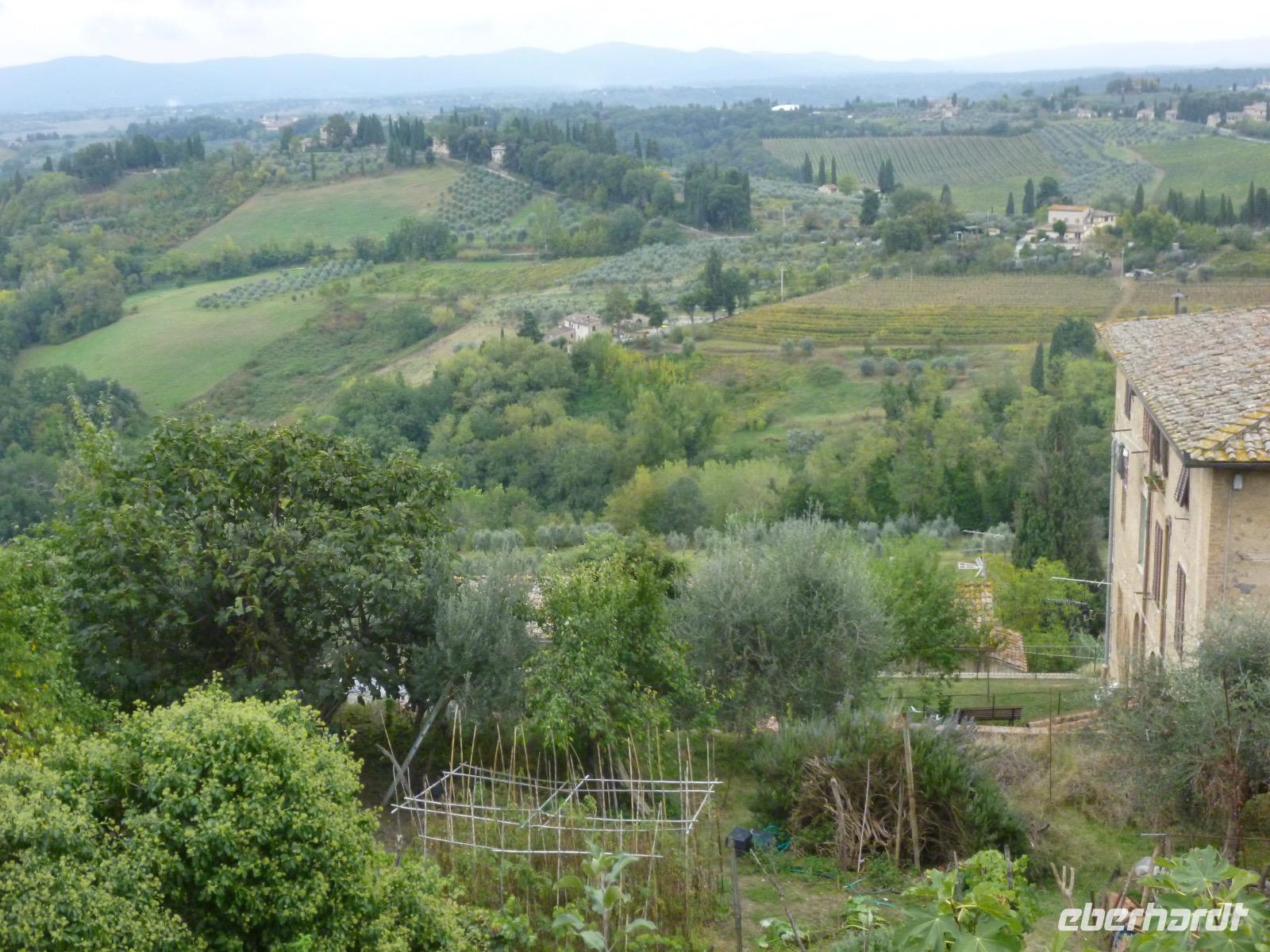 Auch für seinen Safran und Vernacciawein ist die Gegend um San Gimignano bekannt: im Agriturismo „Alter Stall" („Vecchio Maneggio") ließ es sich vortrefflich speisen. Von den Hügeln um Ulignano hatten wir bereits einen schönen Blick auf das "Manhattan des Mittelalters".
