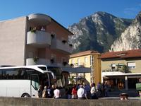 Unsere Fahrt begann am Flughafen in Dresden. Nach dem pünktlichen Start und dem Zustieg weiterer Gäste bis Münchberg war unsere Reisegruppe komplett. Die Fahrt führte uns an Nürnberg, München und Kufstein vorbei zu unserem Halt an der Europabrücke hinter Innsbruck. Über den Brennerpass und das Eisack- und Etschtal kamen wir schließlich an unserem Hotel in Riva del Garda an.