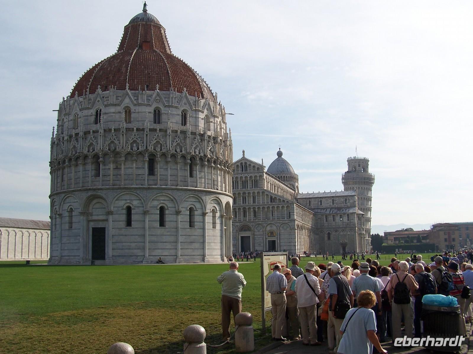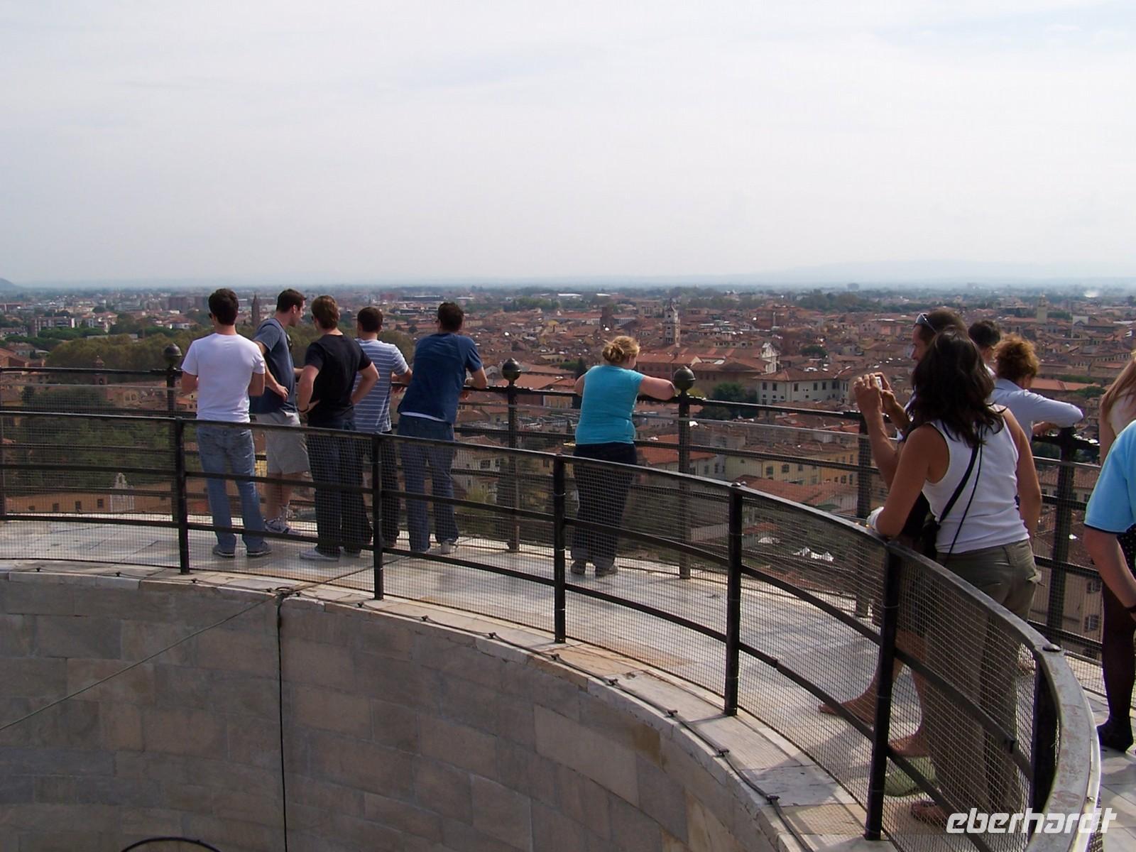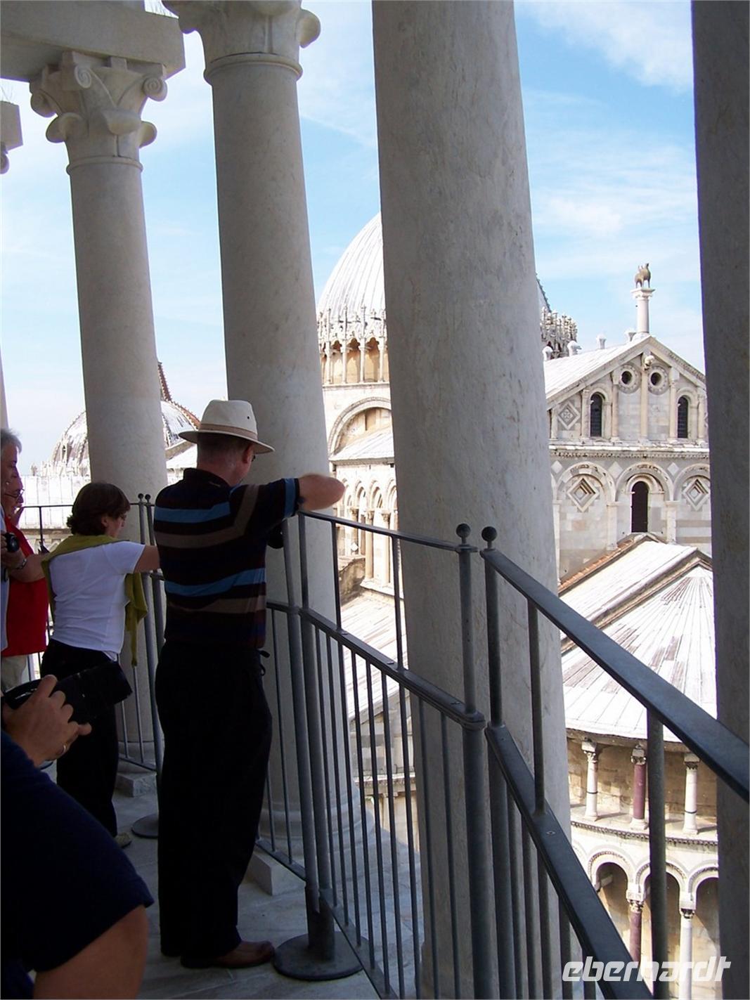 Am Morgen fuhren wir in Richtung Thyrennisches Meer, in die ehemalige Seerepublik Pisa. Der Piazza dei Miracoli mit dem Dom und dem Schiefen Turm ist einer der schönsten Plätze der Welt. Unsere Reiseleiterin Anna erklärte uns auf homorvolle und lehrreiche Weise von der Geschichte der einzelnen Gebäude und von der einstigen Bedeutung Pisas im westlichen Mittelmeerraum. Nach der gemeinsamen Besichtigung des Domes konnten alle Wagemutigen den Schiefen Turm besteigen. Den Turm nutzte schon Galileo Galilei für seine Versuche des freien Falls. Wieder auf sicherem Boden hatten wir bis zu unserer Abreise am Nachmittag Zeit zur freien Verfügung.