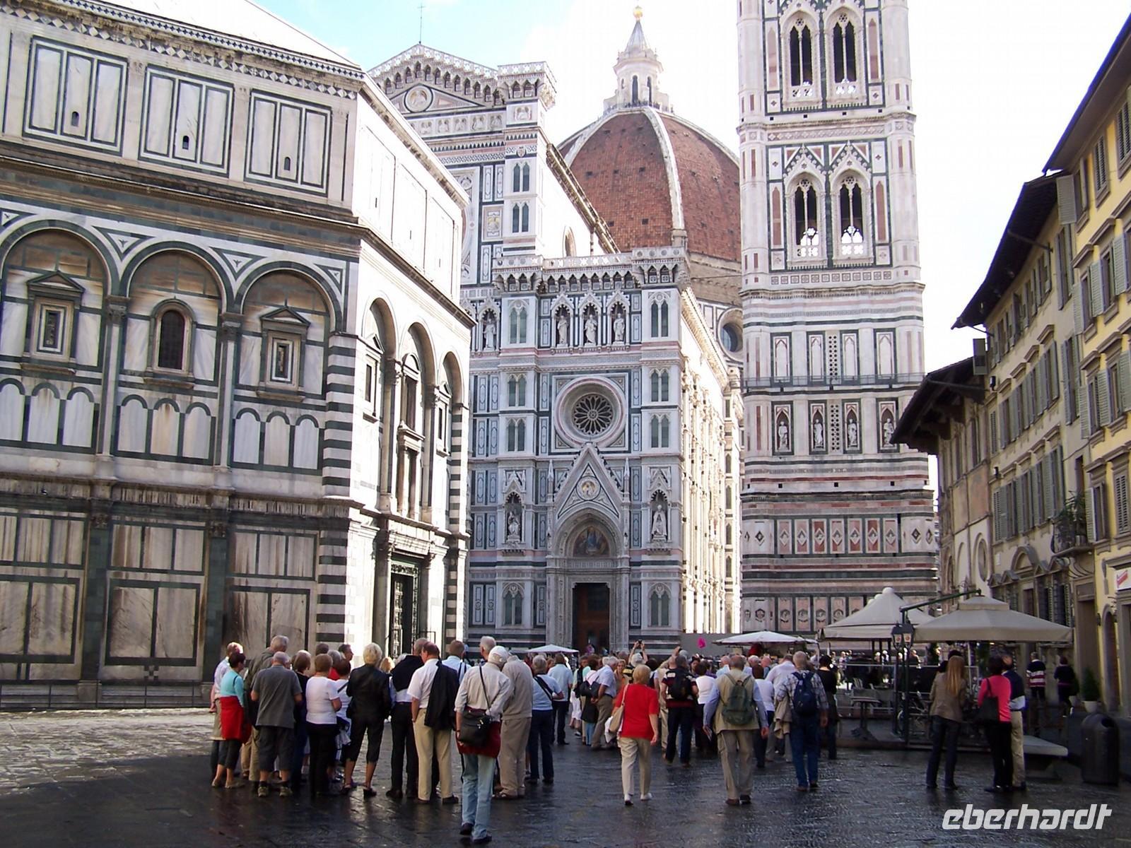 Der Tag begann mit einem Spaziergang zum Bahnhof in Montecatini Terme und der darauf folgenden Zugfahrt nach Florenz. In Florenz wurden wir von Angela am Bahnhof abgeholt und begrüßt. Die Anzahl der Besucher in der toskanischen Hauptstadt ist unvorstellbar! Unsere Führung begann mit dem Besuch des Domes und einem Bummel zum Piazza della Repubblica. Hier hatten wir uns eine Kaffeepause verdient! Der zweite Teil des Stadtrundganges führte uns auf die Ponte Vecchio und den Piazza della Signoria. Die Ponte Vecchio war vollgestopft mit Touristen. Es war ein Wunder, dass keiner unserer Gäste den Anschluss an die Gruppe verlor. Auf dem Piazza della Signoria waren alle von der Schönheit der Gebäude und Skulpturen beeindruckt. Nach all den neuen Erlebnissen war es an der Zeit die Mittagspause einzulegen.