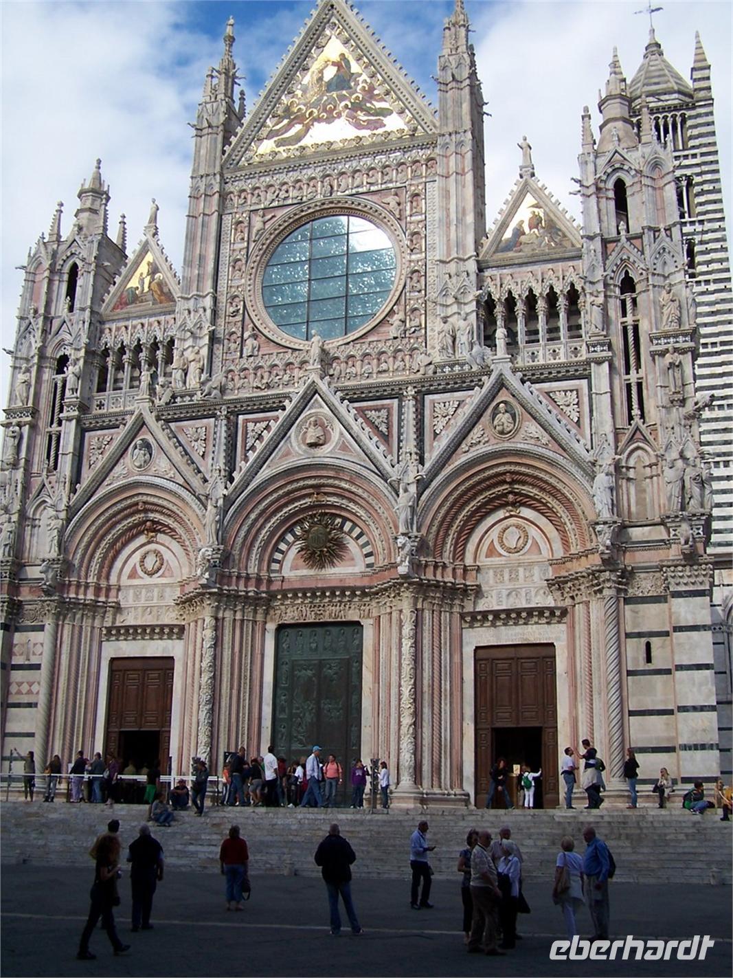 Die Hauptattraktion an diesem Tag war jedoch Siena. An der Stadtmauer wurden wir von unserer Stadtführerin Frederika erwartet und begrüßt. In Siena finden zwei Mal im Jahr die berühmten Palio-Pferderennen auf dem Piazza del Campo statt. Während der Stadtführung sahen wir die stattlichen Bankgebäude am Piazza Salimbeni, den fächerförmigen Piazza del Campo und den Dom. Im Anschluss hatten wir Freizeit für individuelle Besichtigungen. Nach der späten Ankunft in unserem Hotel in Montecatini Terme klang der Tag beim Abendessen mit Musik und toskanischen Gerichten aus.