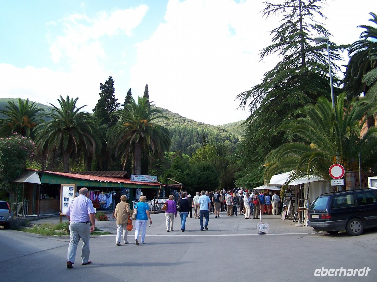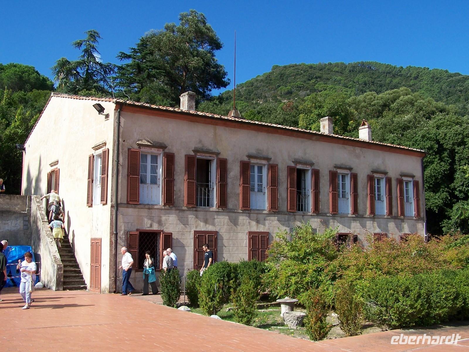 Nach einem zeitigen Frühstück fuhren wir in den Hafen von Pombino, von wo aus unser Schiff zur Insel Elba ablegen sollte. Es war eine sehr sonnige und ruhige Schifffahrt und wir wurden mit dem tollen Panorama von Portoferraio begrüßt. Am Hafen erwartete und begrüßte uns unsere örtliche Reiseleiterin Heide. Unser erstes Ziel war das Haus Napoleons, die Villa San Martino. Es war beeindruckend, sich vorzustellen, wie Napoleon hier ein und aus ging. Die Weiterfahrt verlief an der nördlichen Küste entlang. Nach einem Fotostopp am Paulinenfelsen, mussten wir mit unserem Bus stark bremsen, so dass wir das Klirren unserer Weinflaschen im Kofferraum hören konnten. Glücklicherweise sind unsere am Vortag gekauften Weinflaschen alle heil geblieben. Der nächste Halt war in Marciana Marina, einem kleinen Hafenstädtchen, wo Gelegenheit zum Kauf von Gewürzen und Honig bestand. Danach fuhren wir auf die Südseite der Insel und legten im Restaurant Gianni unsere Mittagspause ein. Den Abschluss unseres Elba-Ausfluges bildete die Ostküste der Insel und vom Hafen aus unsere Rückreise mit dem Schiff zum italienischen Festland.