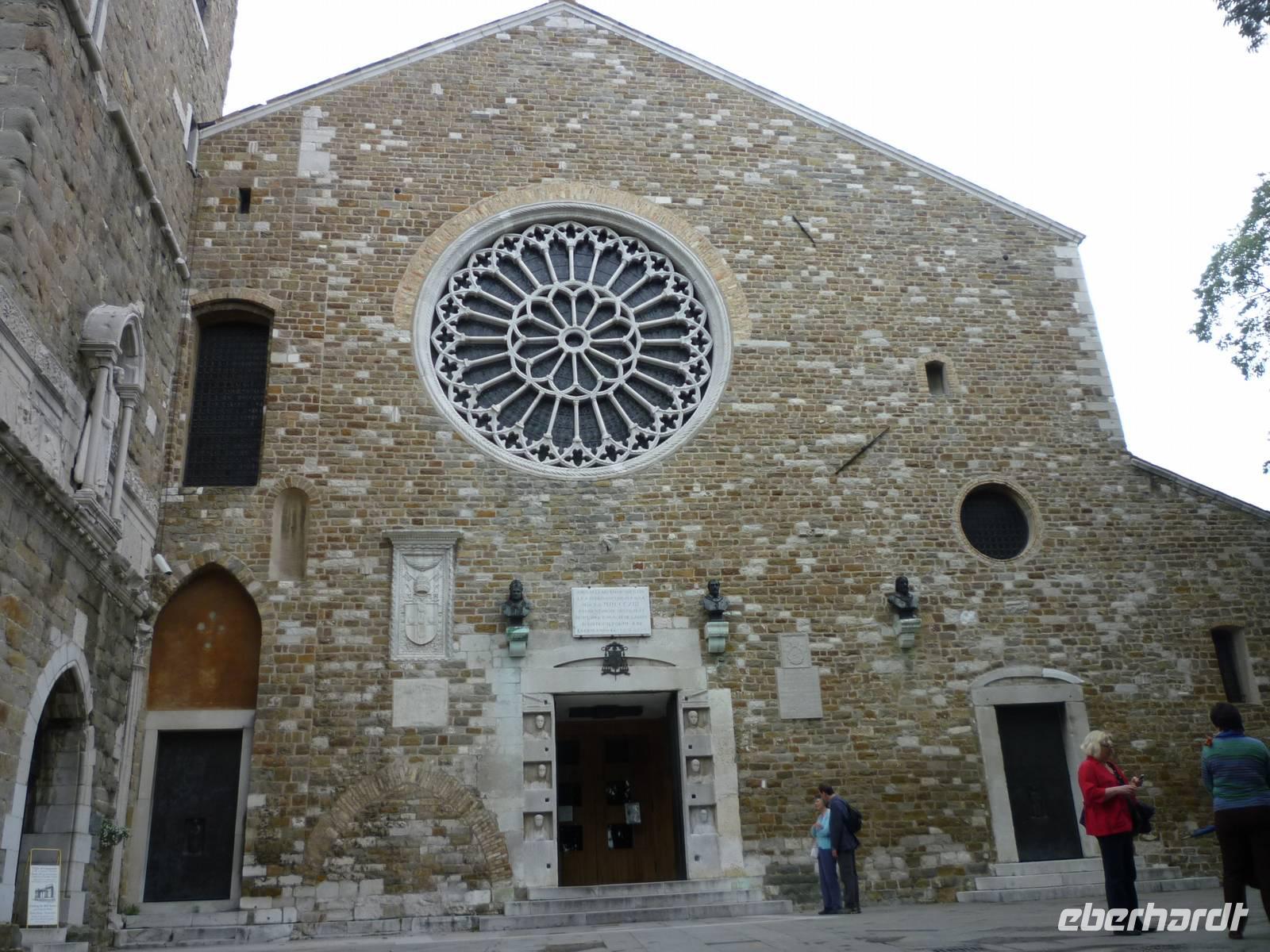 Nach zwei Stunden Fahrt um die nördliche Adria gelangten wir in Triest an und wurden von Pietro auf einer Stadtrundfahrt begleitet. Triest lag uns zu Füßen, vom Aussichtspunkt am Dom di San Giusto aus kann man die gesamte Bucht gut überschauen. Die Innenstadt Triests ist österreichisch-habsburgisch geprägt, durch Architektur des Klassizismus und Jugendstils und vielleicht auch ein wenig in der Lebensweise. Ganz nahe ist die Grenze zu Slowenien.