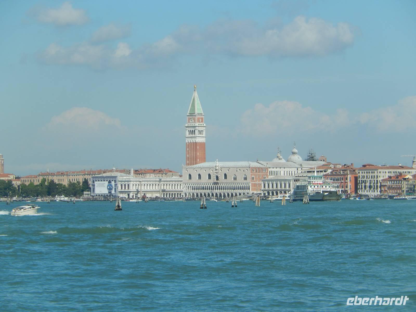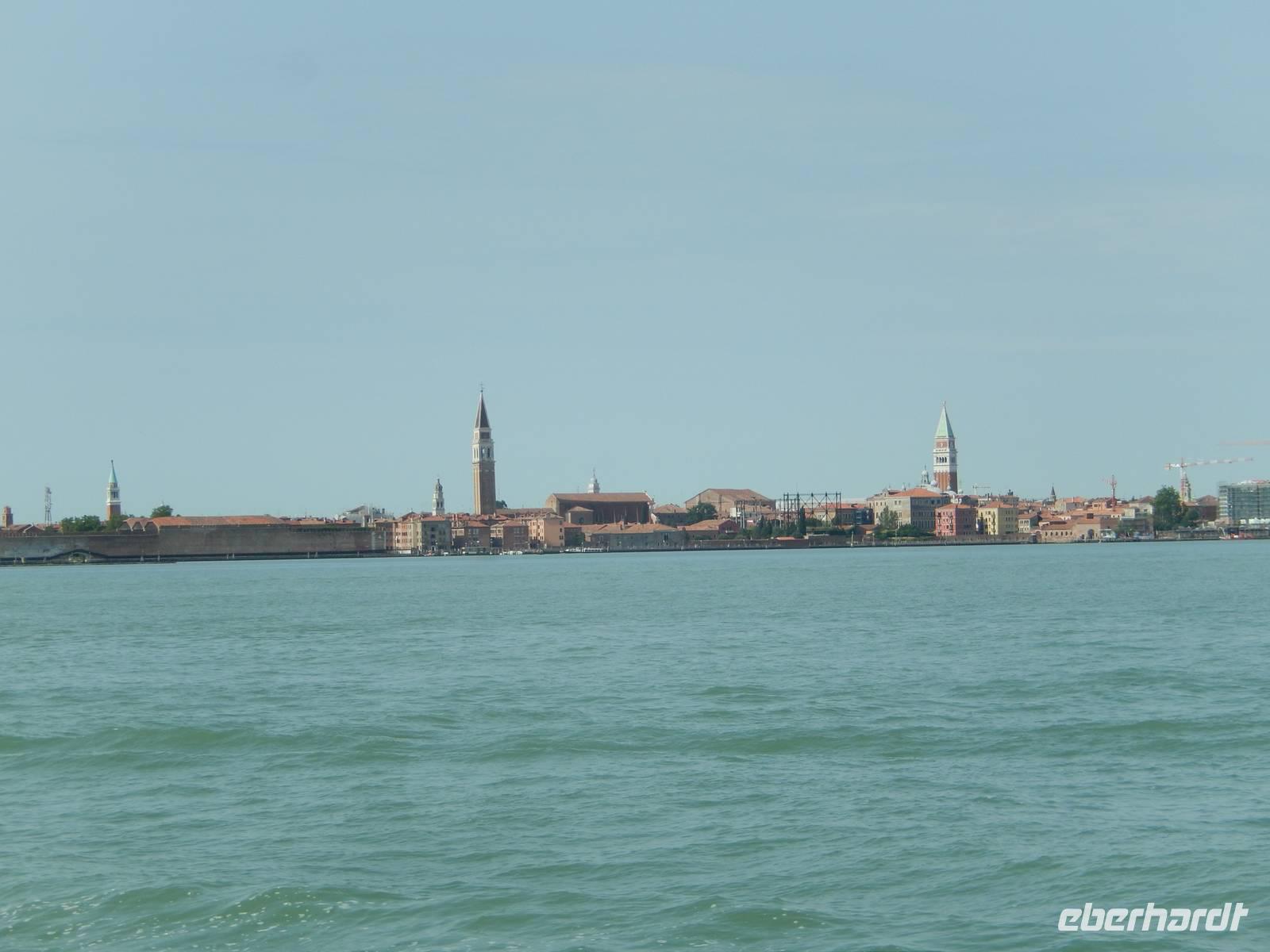 Es dauerte nicht lange, da kamen die Türme und Bauten der Stadt auf dem Wasser in Sicht. Den Marcusplatz machten wir bald aus und fuhren an Jachten, alten Häusern, ersten Kanalmündungen und vielen Piers vorbei, bis das Boot schließlich festmachte und wir den Fuß an Land setzen konnten.