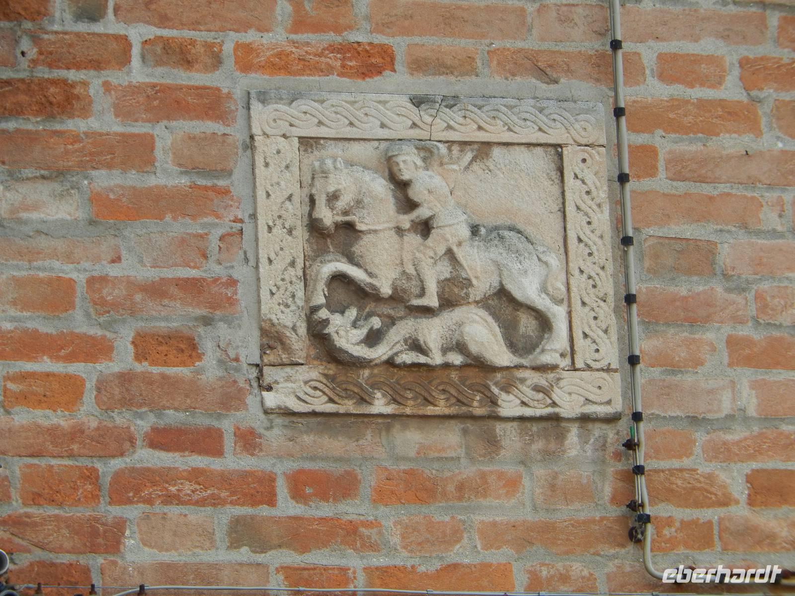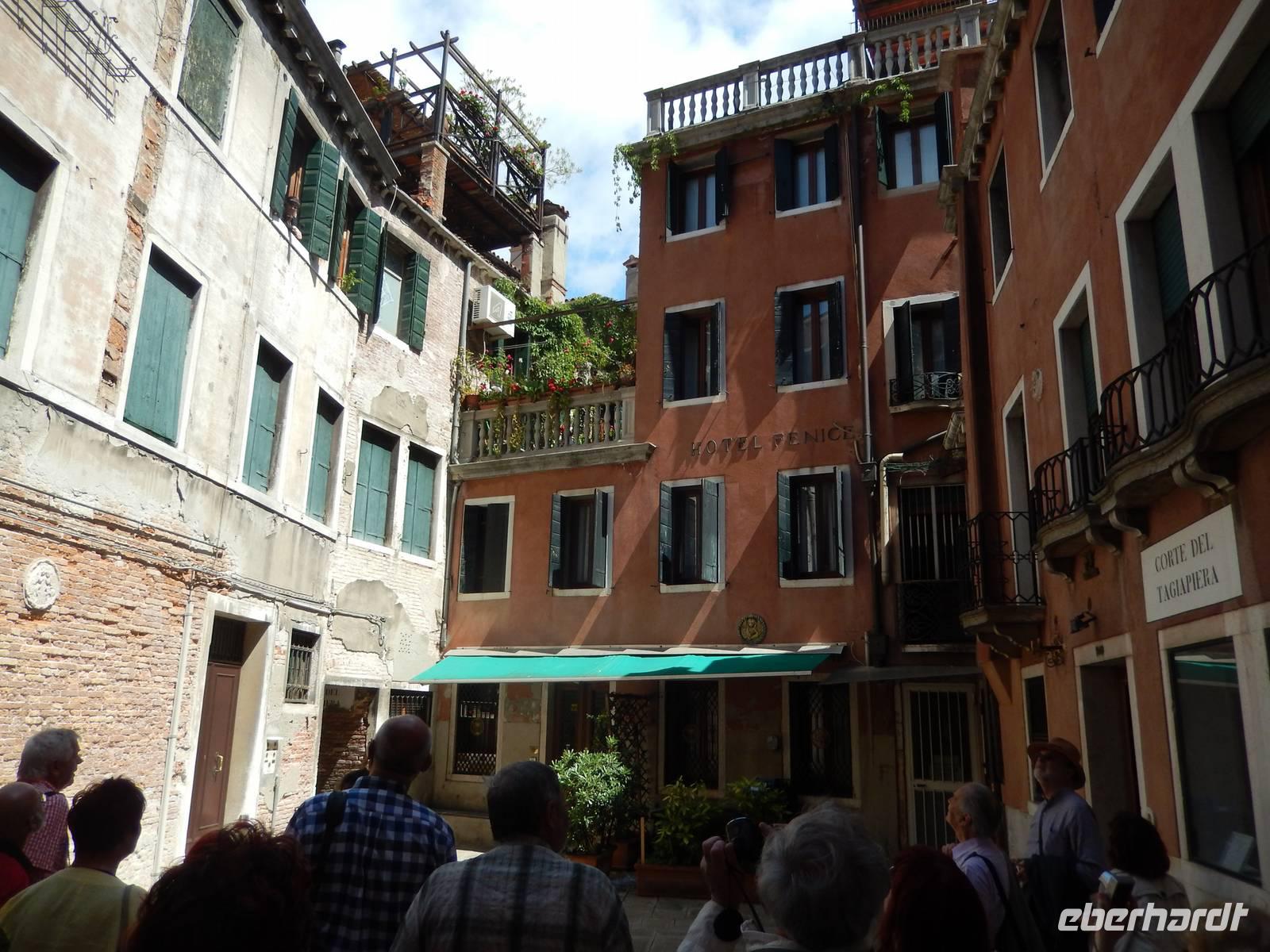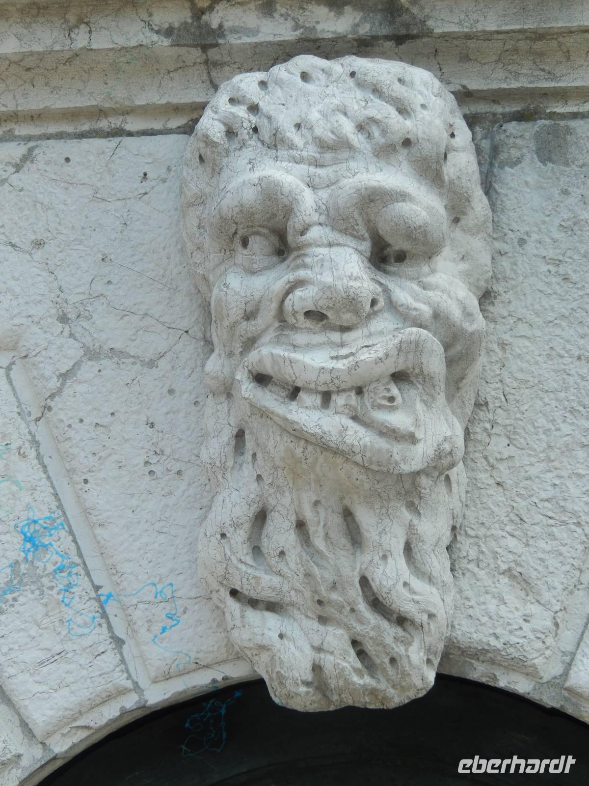 Nach einem weiten Bogen, vorbei an Santa Maria Formosa und der Abbildung des Quasimodo als Abschreckung für böse Gedanken und Blitze am zugehörigen Turm und Massimo Bericht, wie dieser doch aus Notre Dame bekannte verwachsene Herr Aufnahme in die Schar der zum venezianischen Karneval gehörenden Maskenschar fand, landeten wir wieder am Ausgangspunkt unserer heutigen Tour und stellten uns noch einmal zum Gruppenfoto auf.