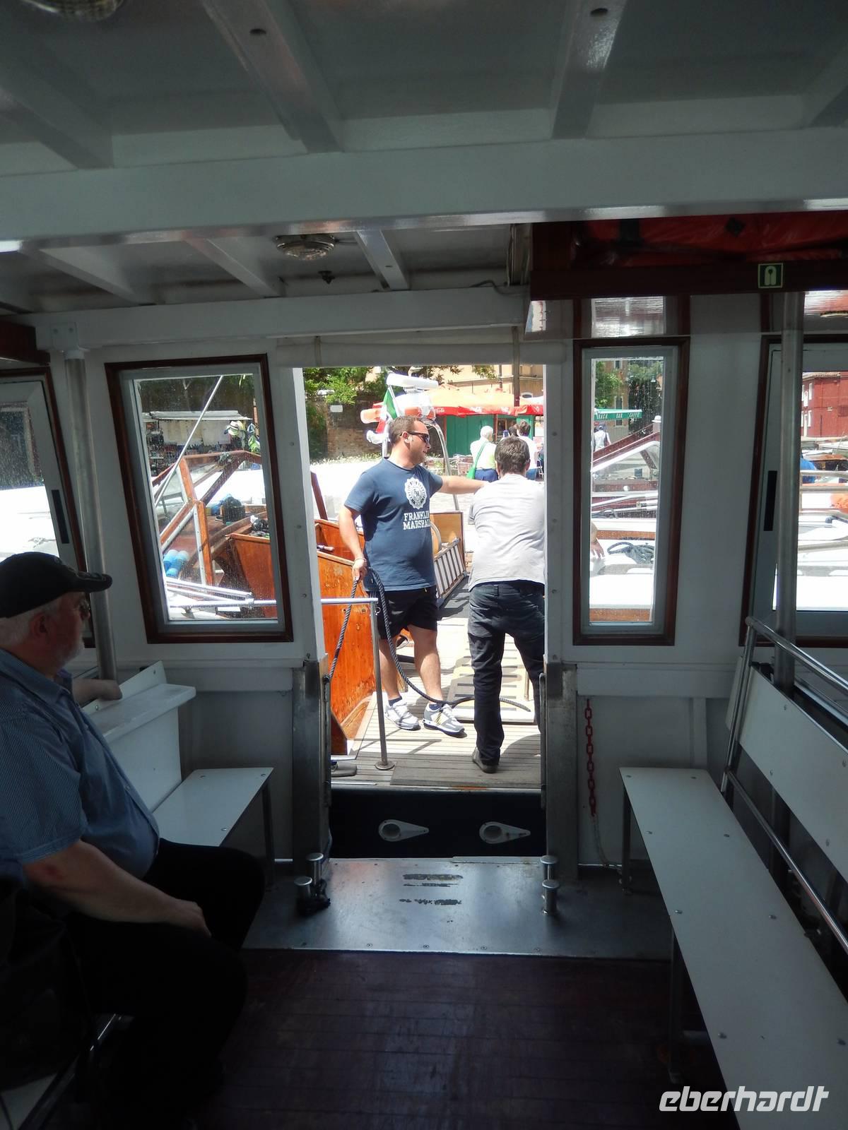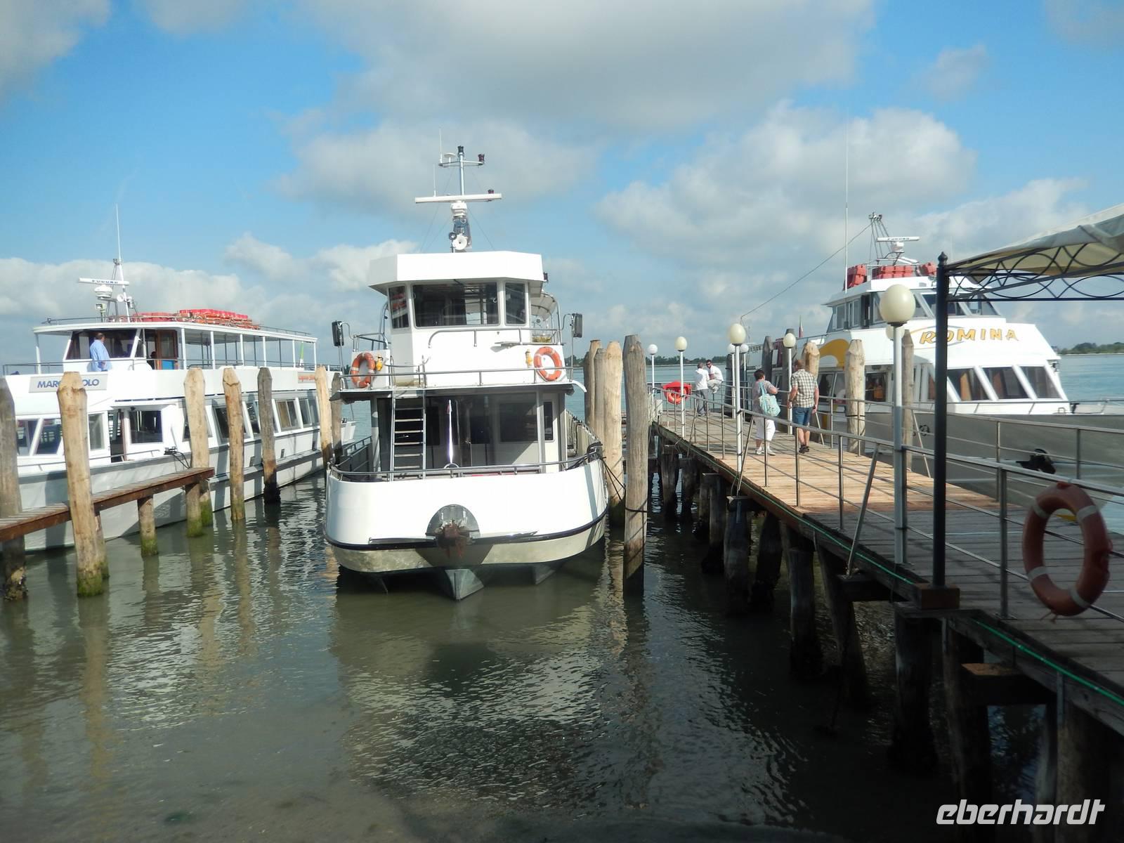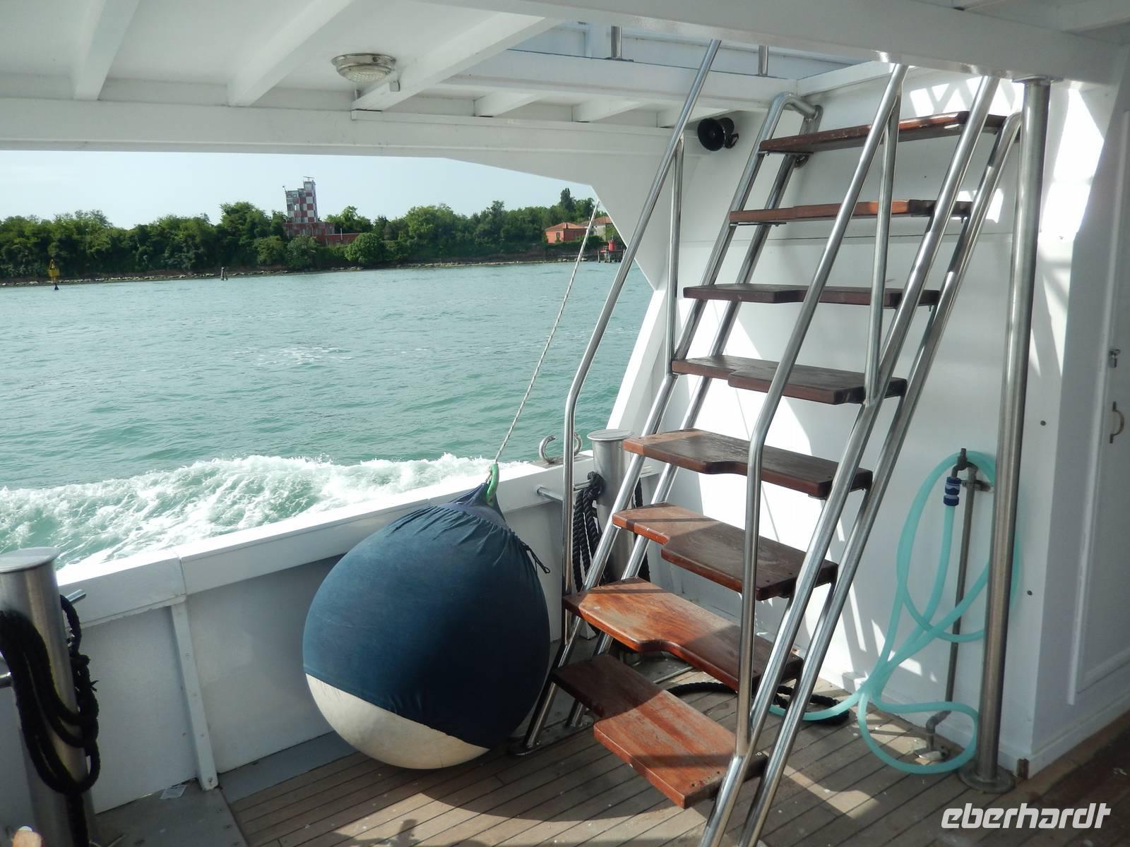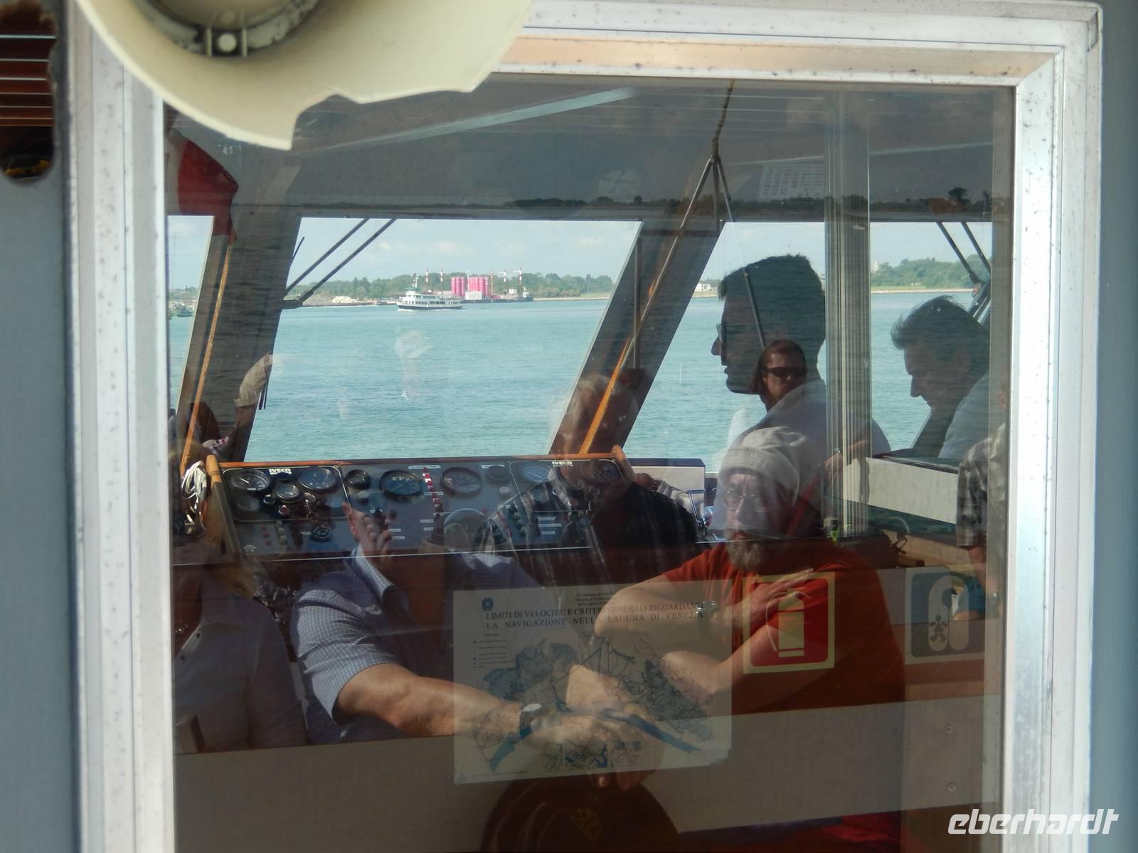 Etwas zu zeitig trafen wir am Pier von Punta Sabbioni ein, doch der Bootsführer holte gleich Gabriella herzu, die uns heute begleiten wollte. Schon saßen wir auf dem ablegenden Schiff.