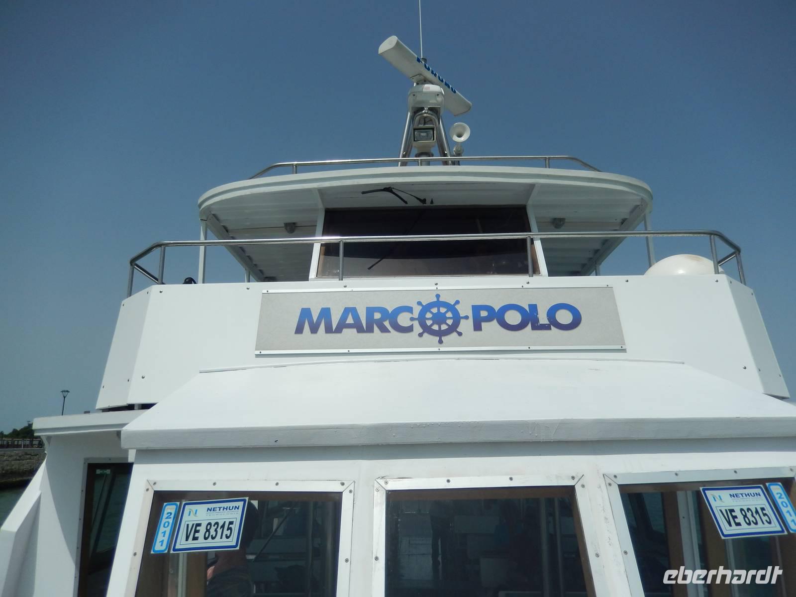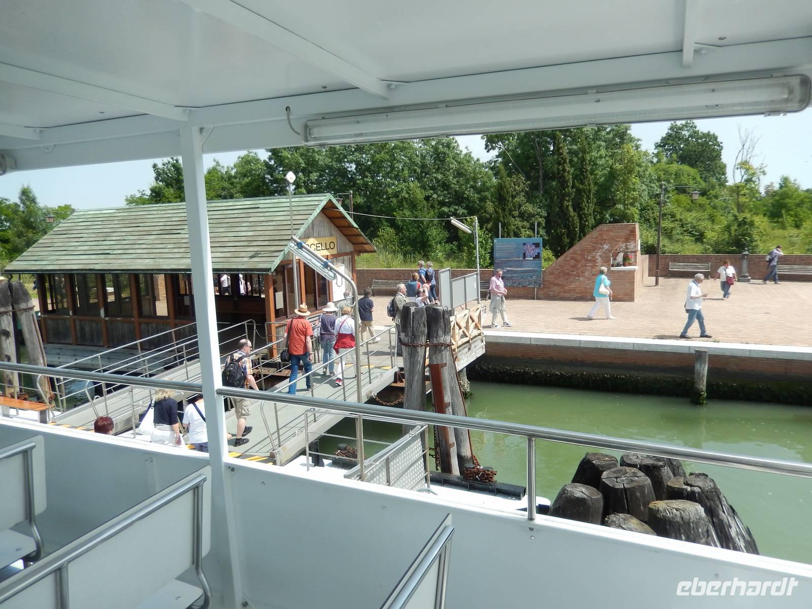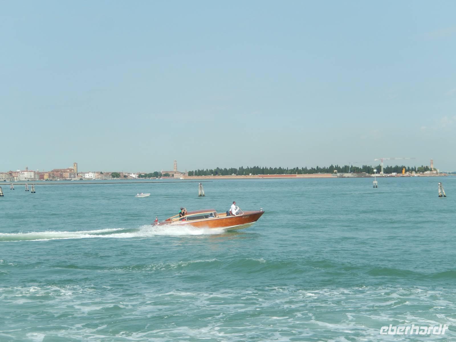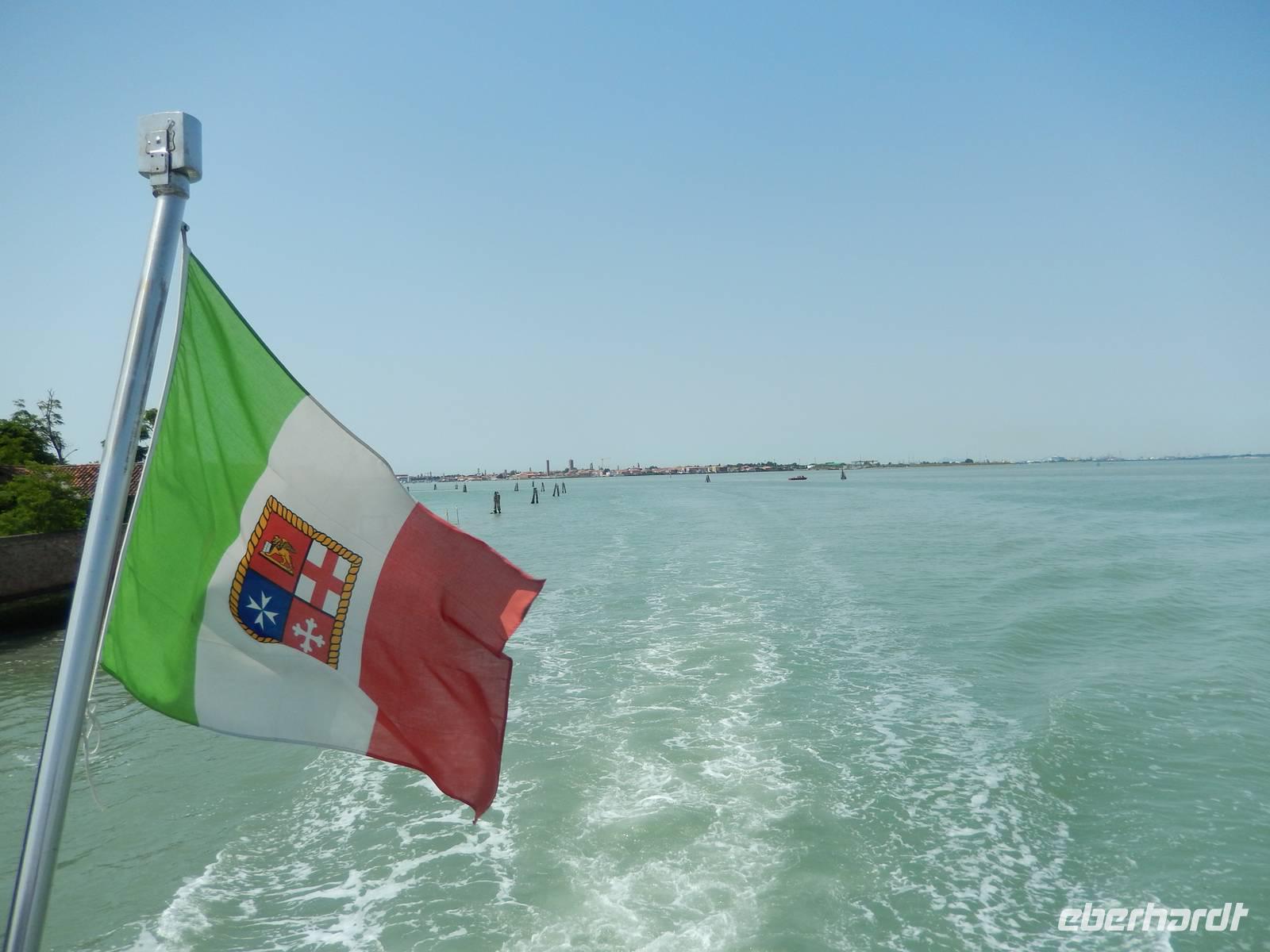 Etwas zu zeitig trafen wir am Pier von Punta Sabbioni ein, doch der Bootsführer holte gleich Gabriella herzu, die uns heute begleiten wollte. Schon saßen wir auf dem ablegenden Schiff.