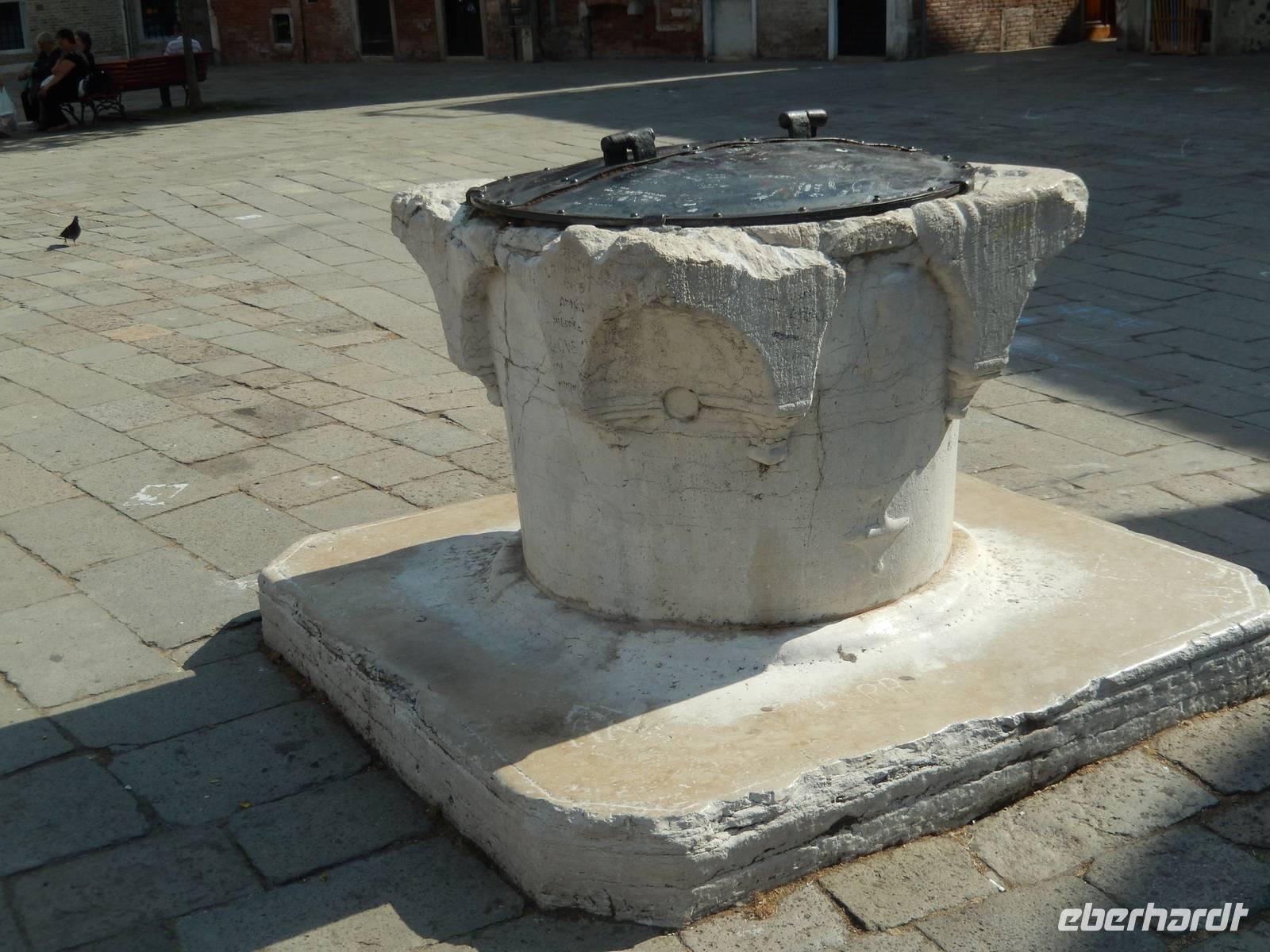 Endlich erfuhren wir so auch, warum alle an den rund gebauten Brunnensteinen erkennbaren Brunnen der Stadt mit einem Eisendeckel fest verschlossen waren. Nein, heute sind sie nicht mehr in Betrieb und früher sammelte sich über verschiedene Einflüsse im Viereck um den Brunnenstein herum das Regen- und Tauwasser in den kleinen mit Kies und Sand ausgelegten Zisternen. Doch die Angst der Venezianer vor Anschlägen war bereits zu Zeiten der Republik San Marco groß. Wie konnte man eine Stadt besonders hart treffen? Wenn man ihr das Trinkwasser nahm, es vergiftete, also unbrauchbar machte. Darum verschloss man die Brunnen und hatte damit Erfolg.