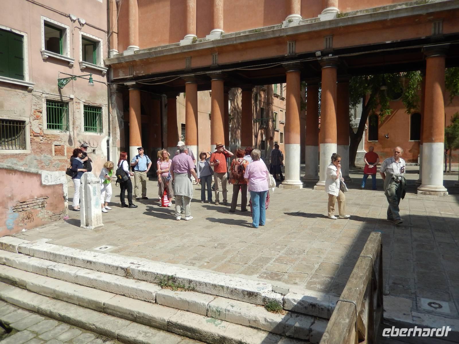Massimo stand am Pier von San Marco und empfing uns herzlich. Ohne zu lange Vorrede in der schon so früh von Touristen überrannten Umgebung schwenkten wir gleich in eine der ersten Gassen ein, um nun einen halben Tag lang versteckte Plätze, Kirchen, Palazzi, Kanäle, Brücken, Cafés und andere Orte zu entdecken und von Massimo erläutert zu bekommen.