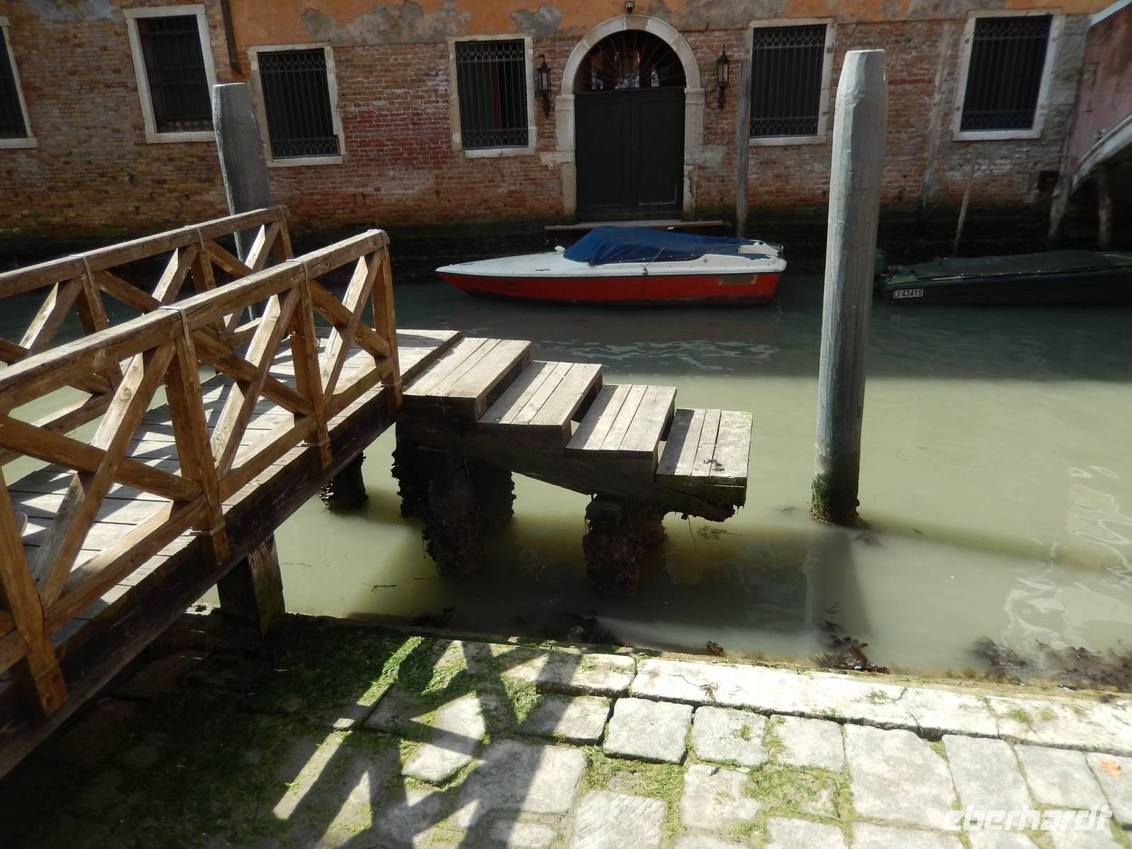 Alessia, waschechte Venezianerin, von denen es nicht mehr viele geben soll und mit der wir heute in die Stadt eindringen wollten, die uns dafür bereits am Pier erwartete, meinte: ja! Denn Venedig steht, wie sie uns später zeigte, nicht nur auf Holzstämmen, sondern auch auf den eingangs erwähnten über 100 Inseln.