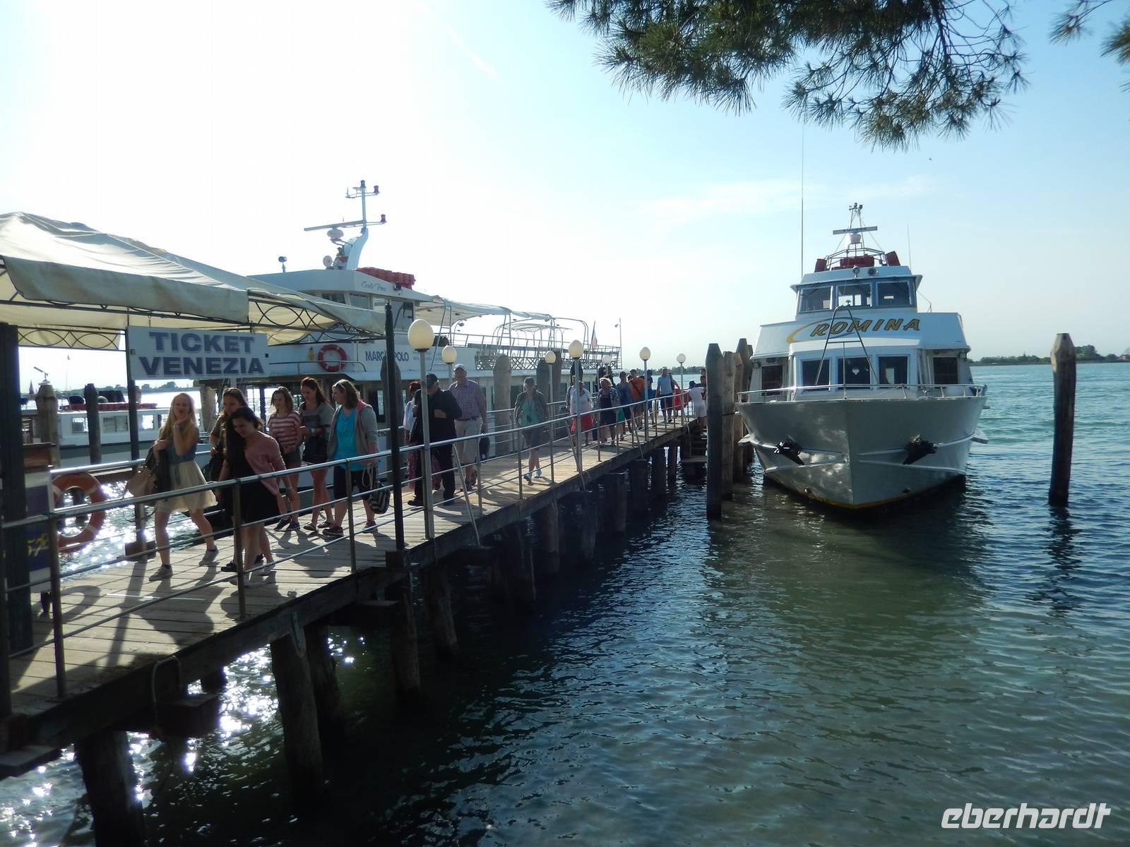 Das italienische Frühstück sättigte, der Kaffee machte uns wieder munter. Schon gegen acht Uhr standen wir alle vor dem Hotel, gingen dann dem Bus ein Stück entgegen und fuhren erst zur Mautstation für das Hafengebiet und dann weiter nach Punta Sabbioni, um dort unser Boot zu besteigen, das uns nach San Marco bringen würde.