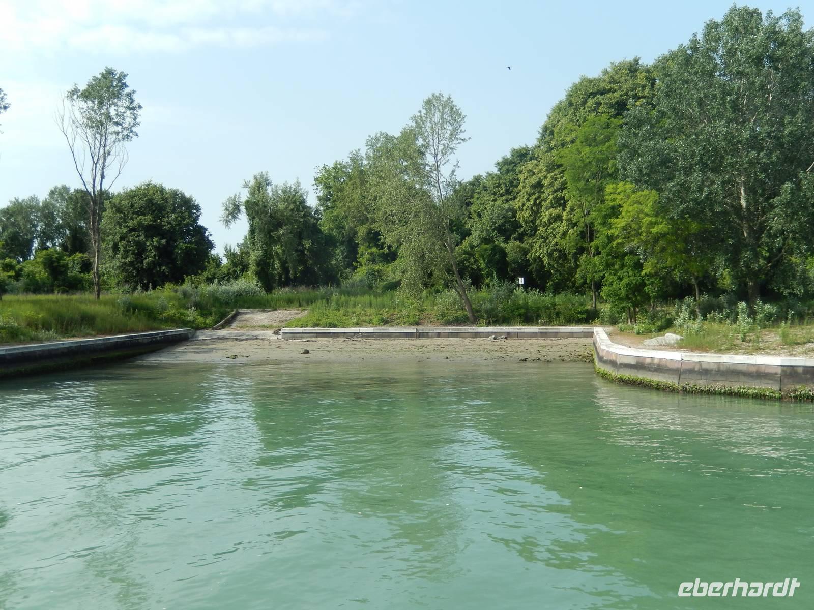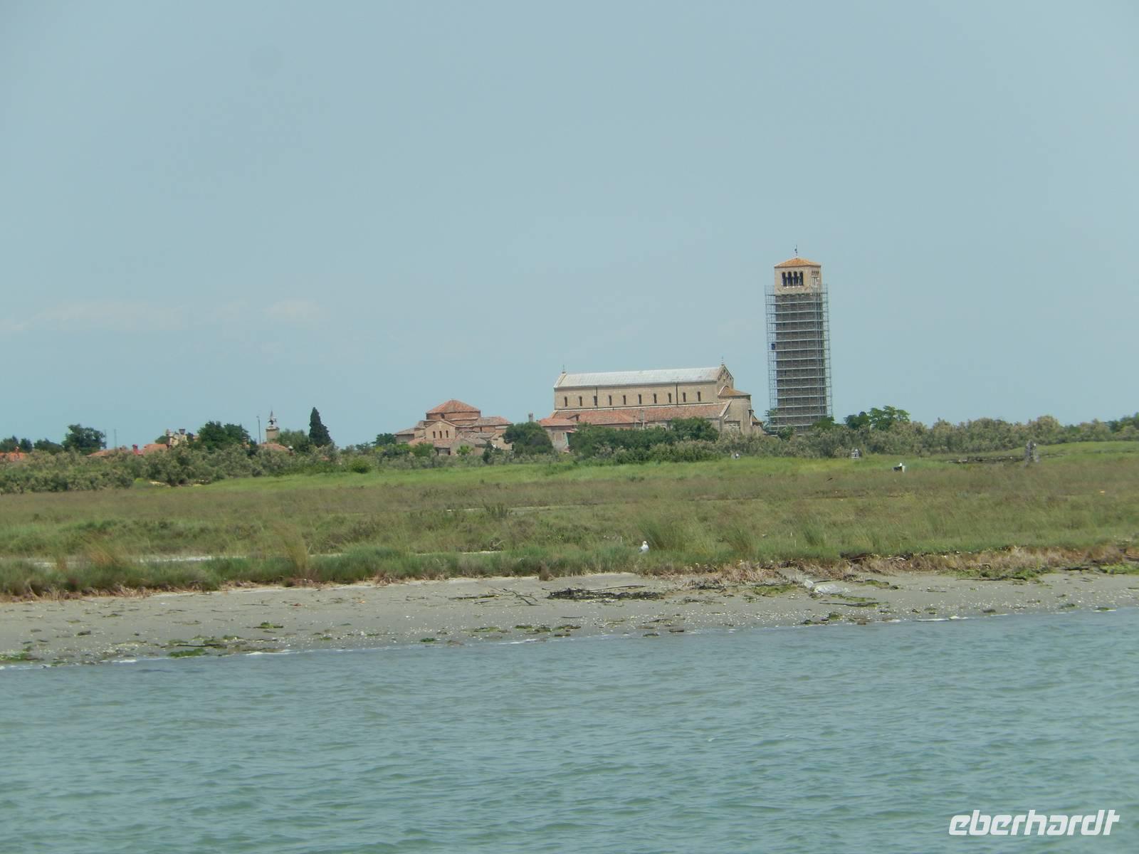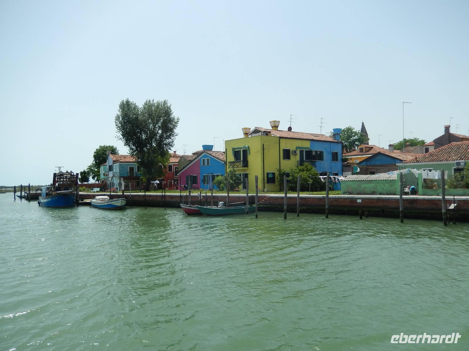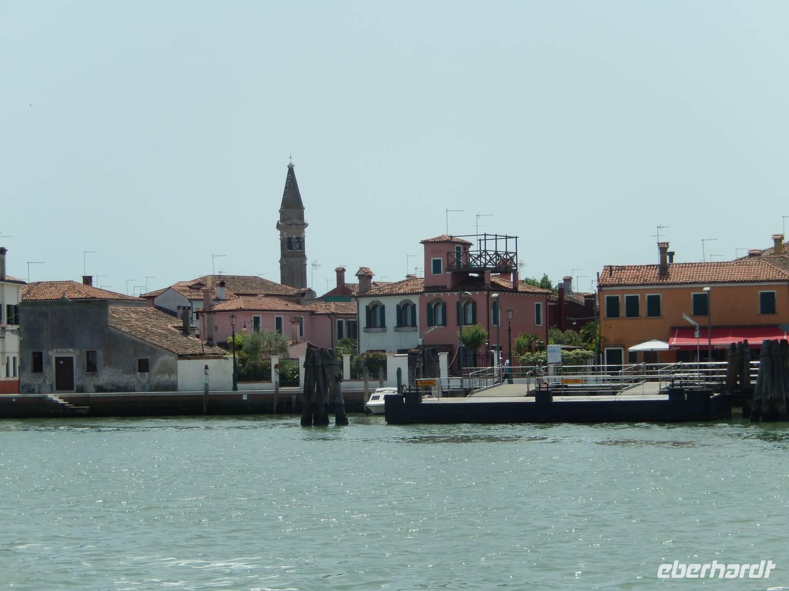 Unsere drei Zielinseln liegen nicht weit auseinander und werden durch tief ausgebaggerte und stets kontrollierte Fahrtrinnen zwischen Schlick, Gras und Land inmitten der Lagune angefahren. Schon weithin erkennt man die Inseln und deren Bauten. So bekamen wir jetzt auf der Fahrt nach Torcello bereits einen Eindruck von den bunten Häusern Buranos, welches wir später noch genauer sehen sollten. Doch erst einmal ging es nach Torcello.